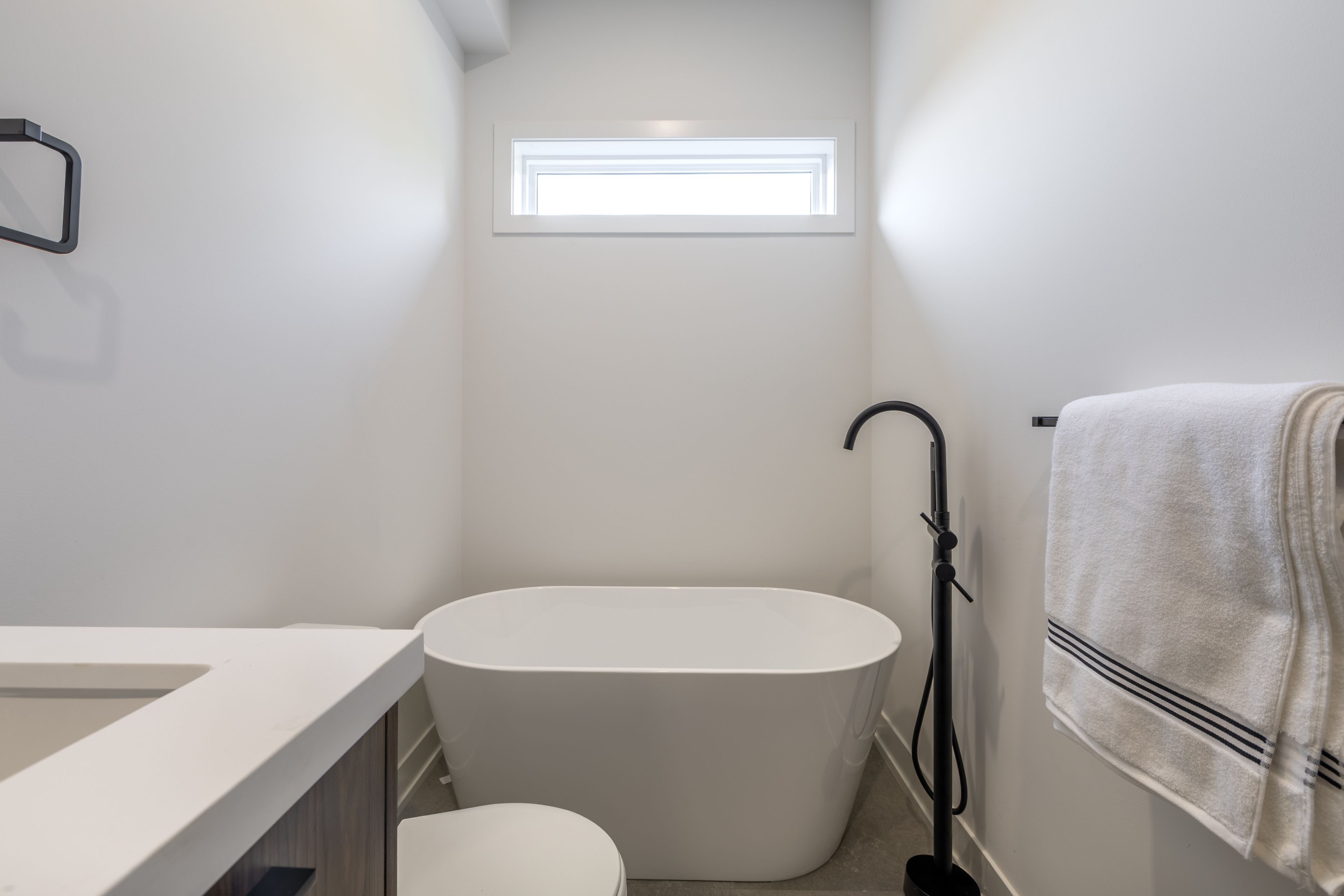 • Luxurious primary ensuite featuring double sinks and a free-standing tub.