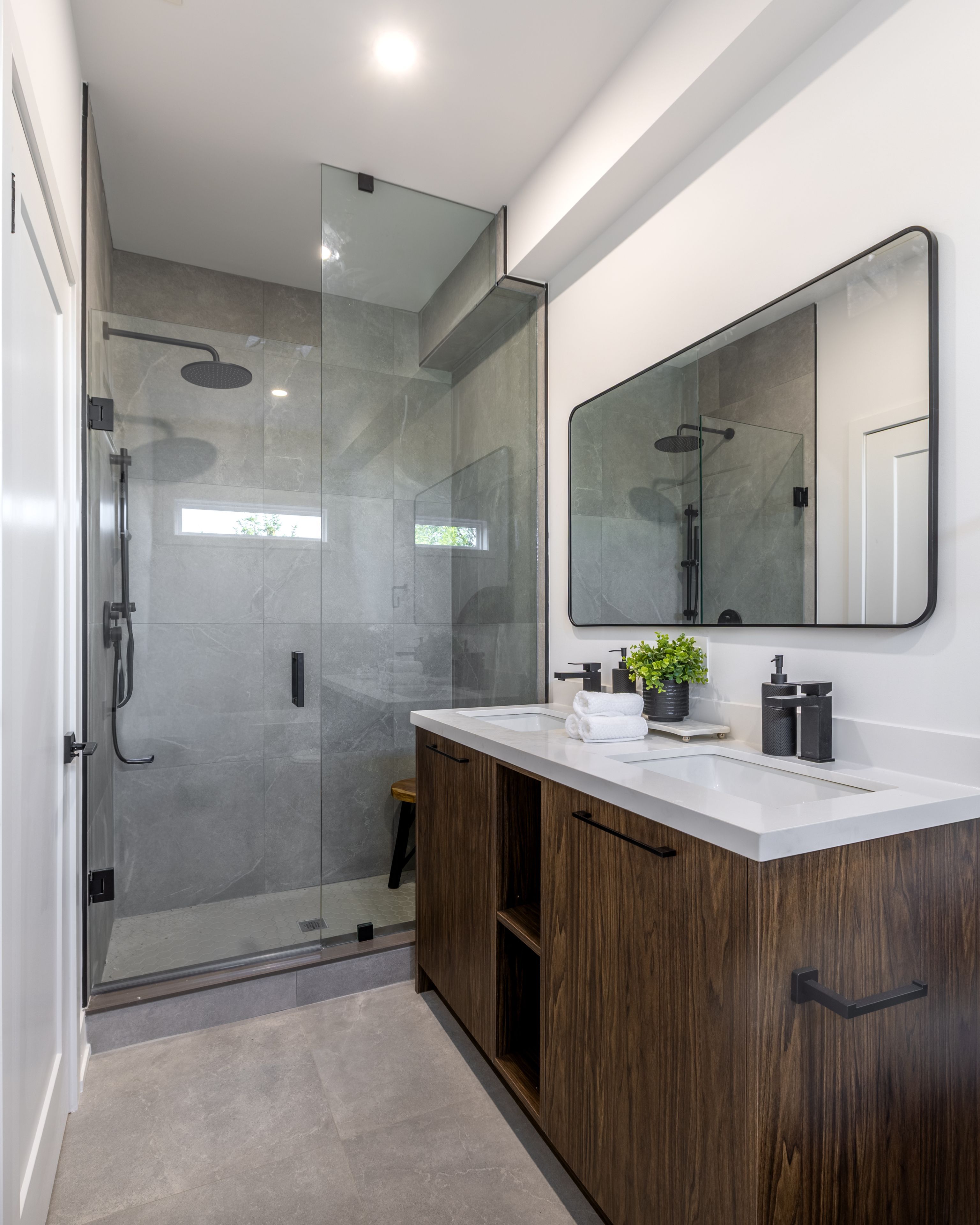 • Luxurious primary ensuite with double sinks and free-standing tub.