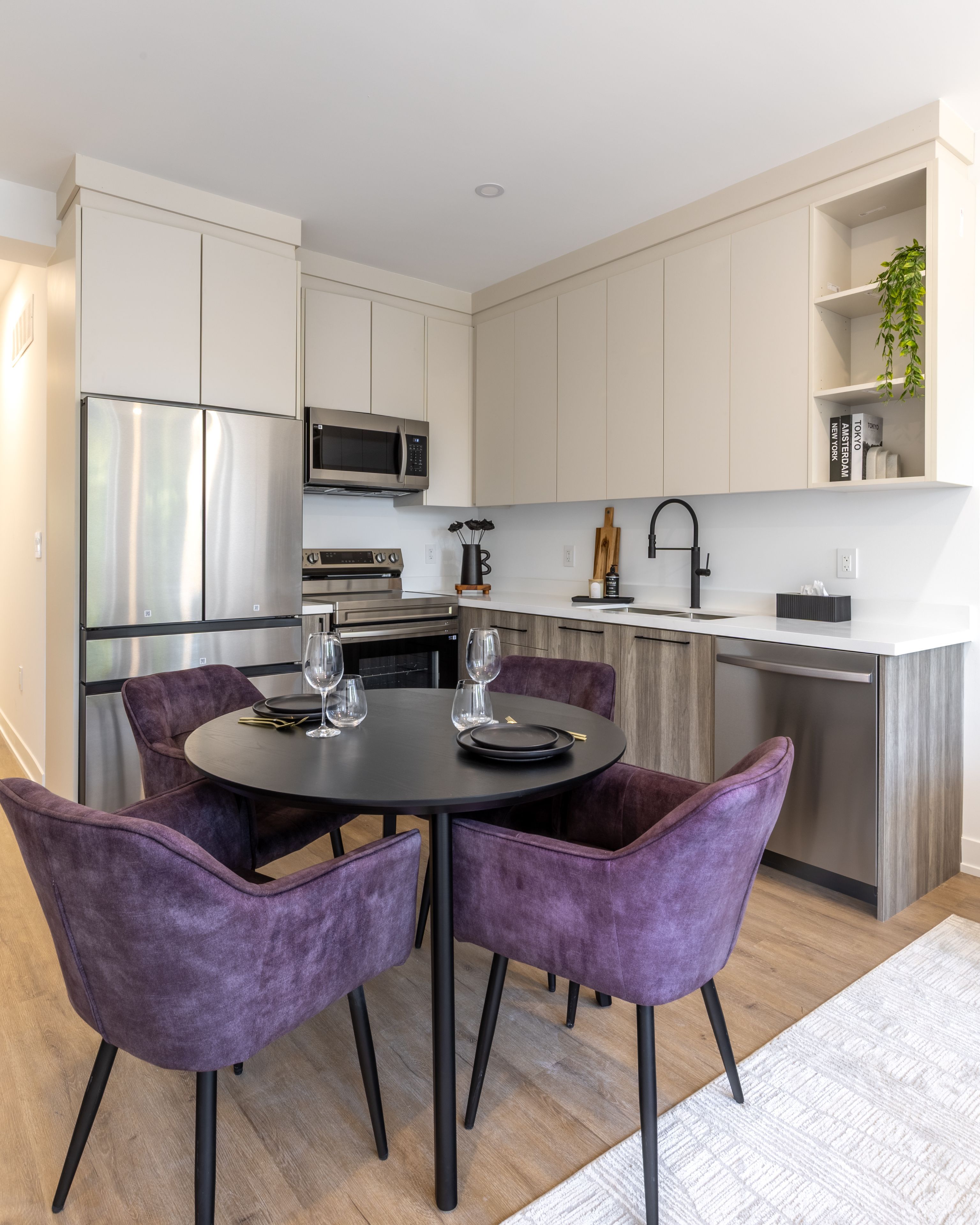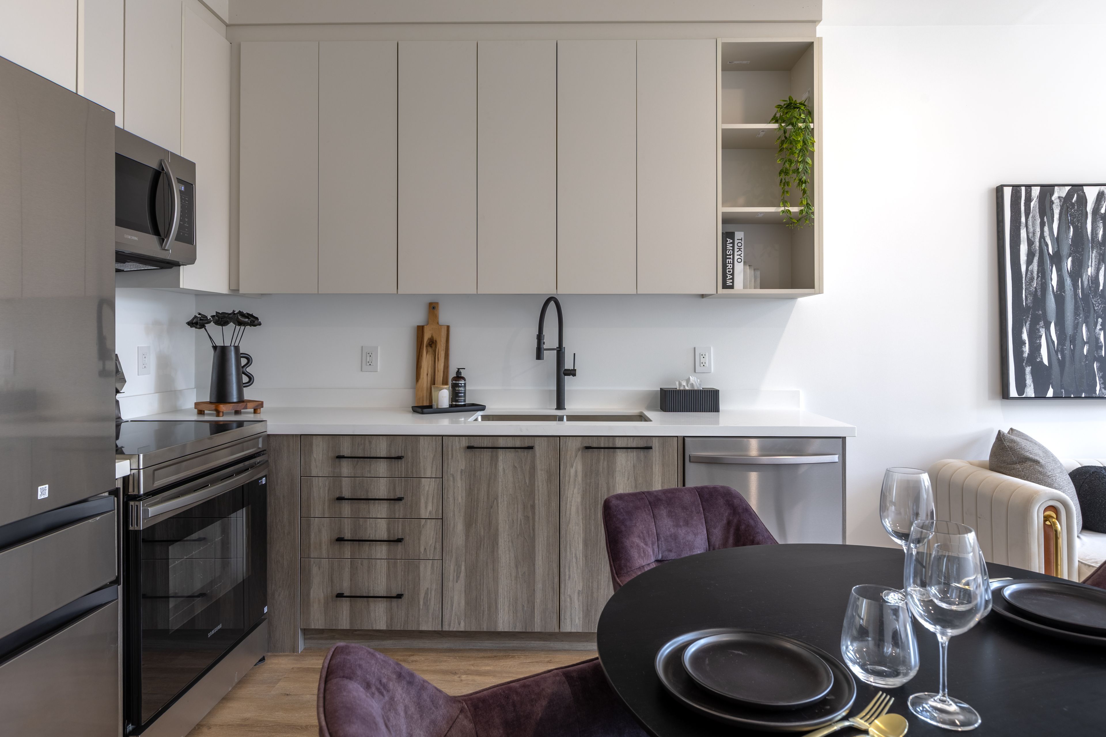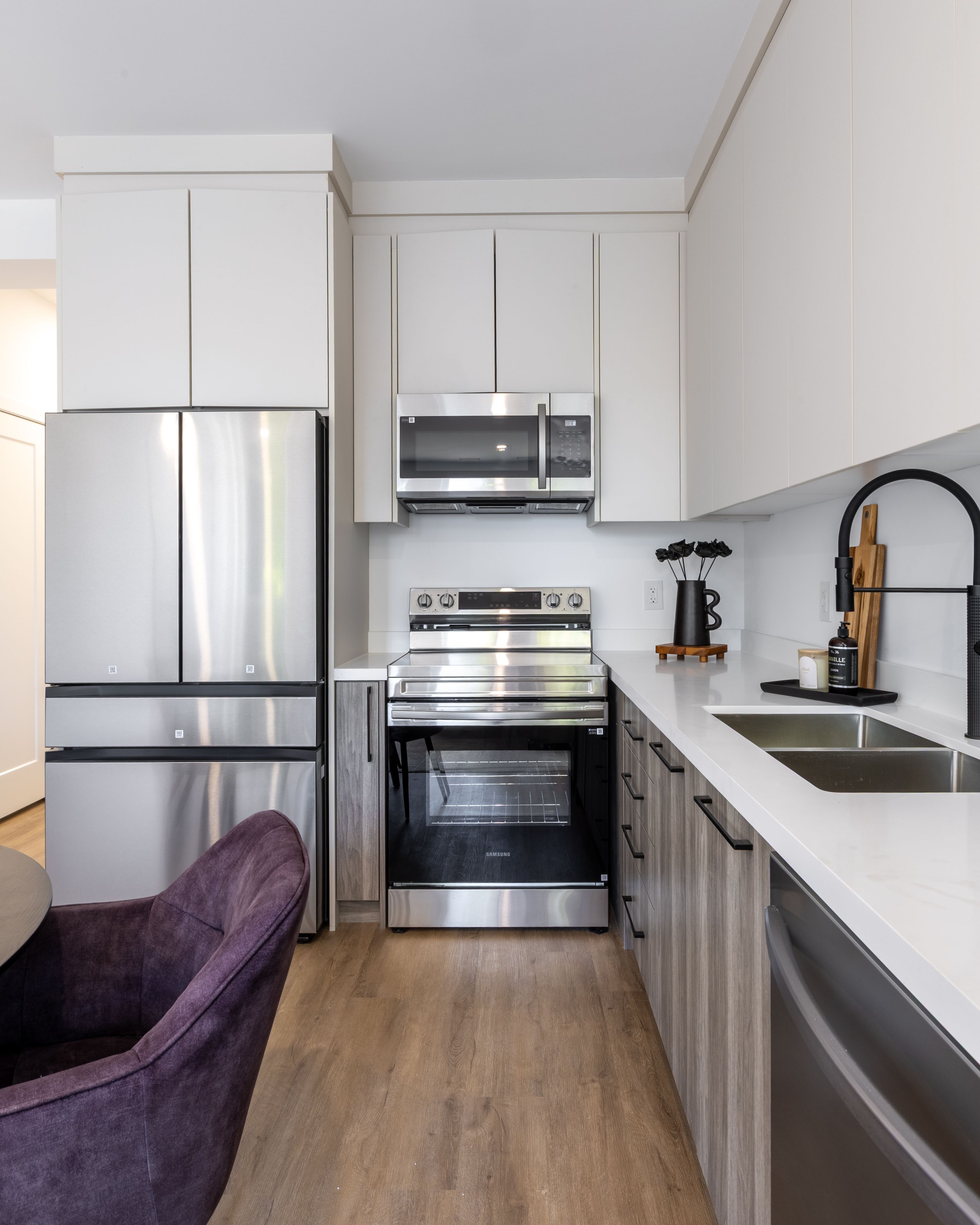 • Stylish kitchen featuring quartz countertops and stainless steel appliances.