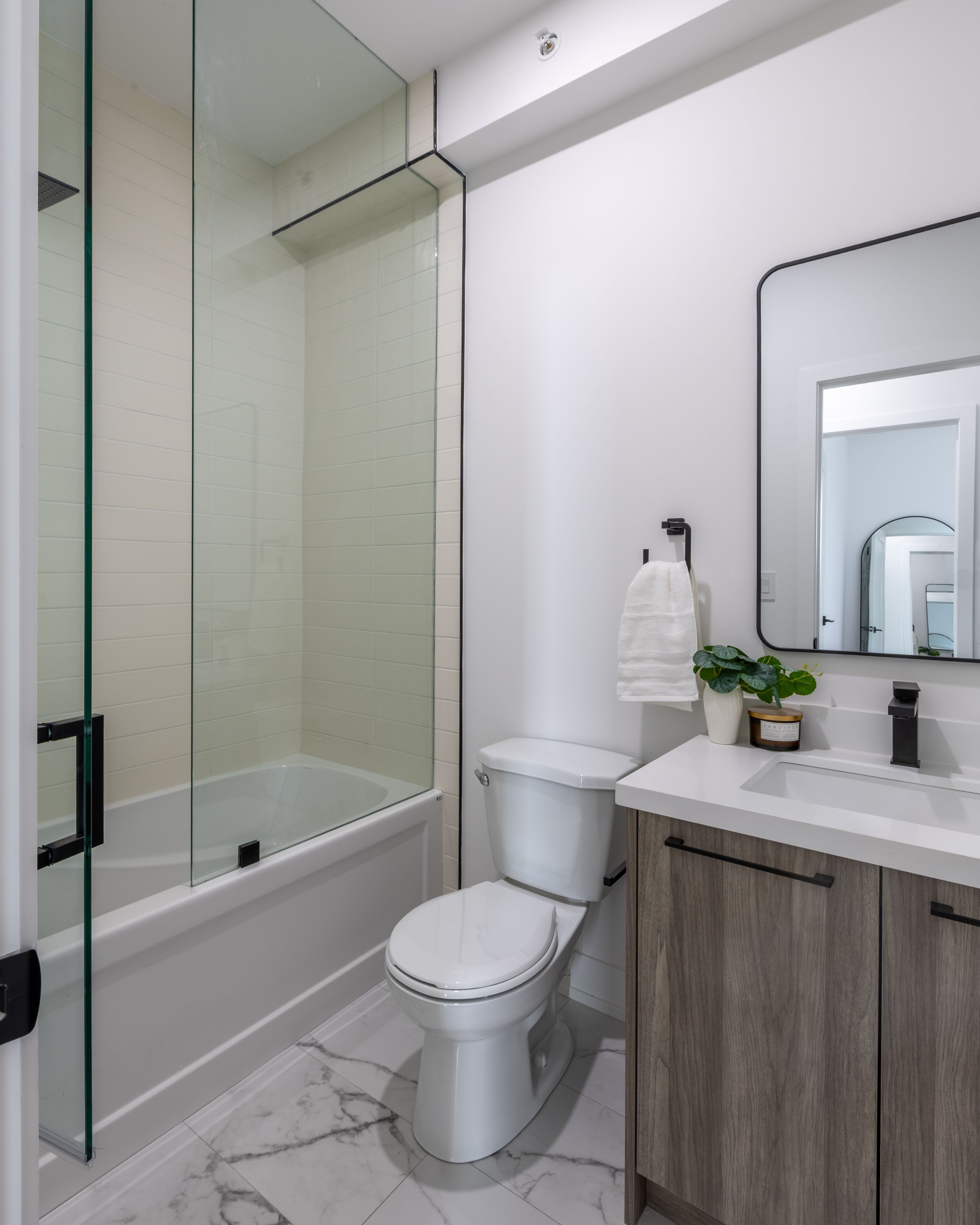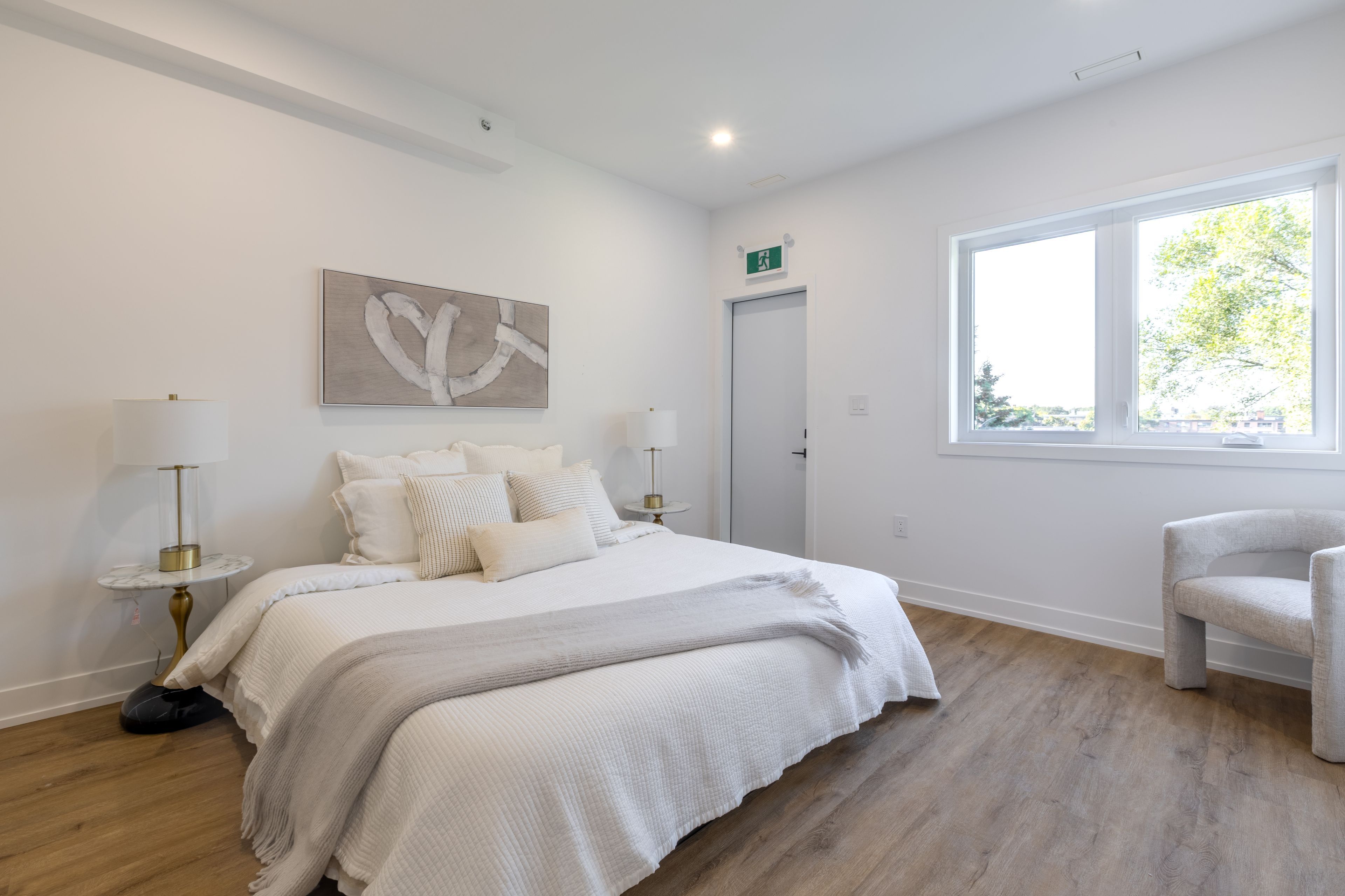 Be the first to live in this brand-new, never-occupied suite, available now! Each suite showcases a modern kitchen with cream wood-finished cabinetry, quartz countertops, and full-sized stainless steel appliances. The primary ensuite offers double sinks and a free-standing tub for a touch of luxury. Highlights include durable vinyl flooring, a spacious walk-in closet, individual hydro and water meters, and access to a shared outdoor common area. With top-rated schools, humber bay park, lake ontario, the mimico go station, and major highways just minutes away, this suite delivers both lifestyle and convenience.