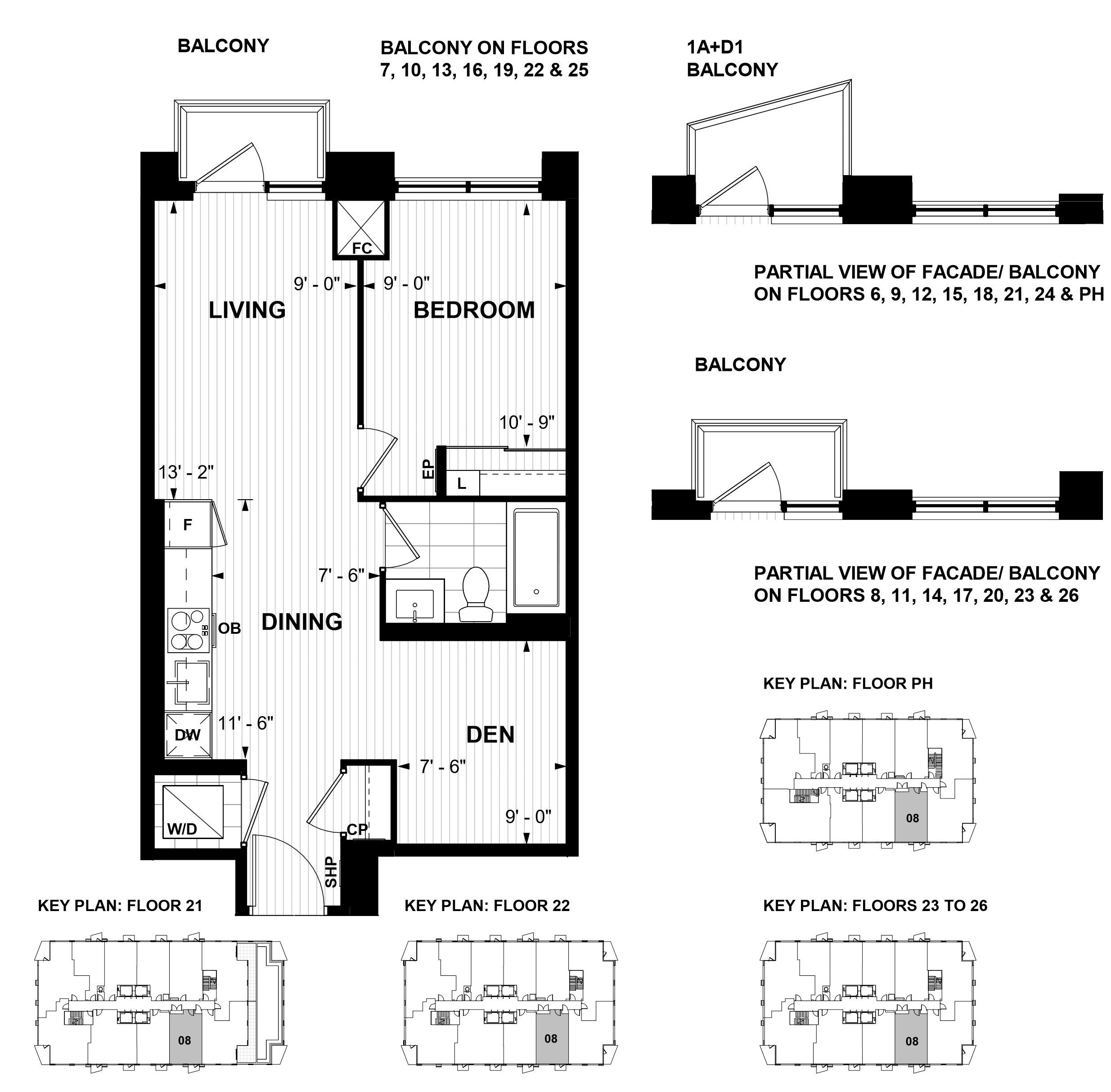 • Bright and spacious corner suite with 1 bedroom and a den.