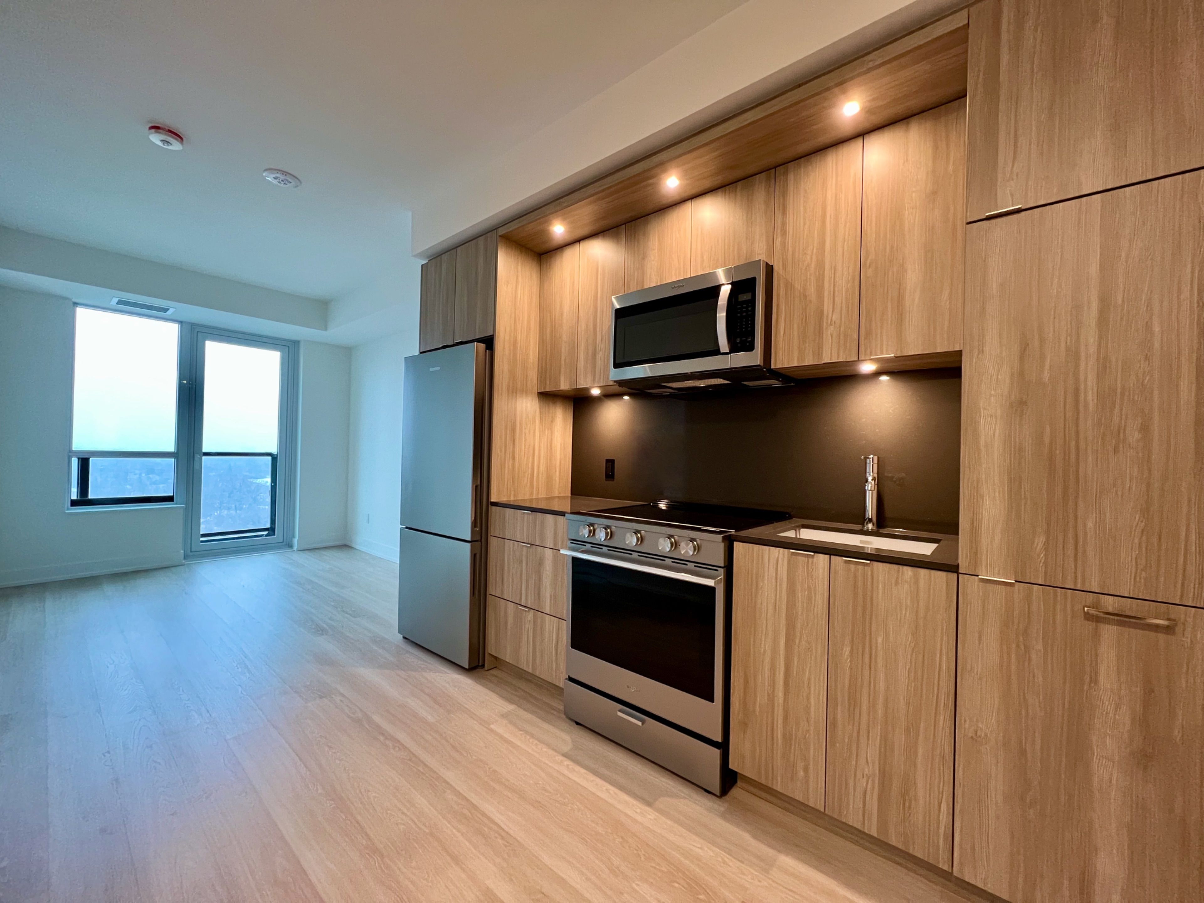 Brand new never lived in 2 bedroom 2 bathroom suite in etobicoke. Open concept with upgraded finishes in the kitchen and bathroom, as well as custom built-in curtains for an east facing unit that is filled with natural light. Walking distance to islington subway station. Tenant to pay all utilities.
