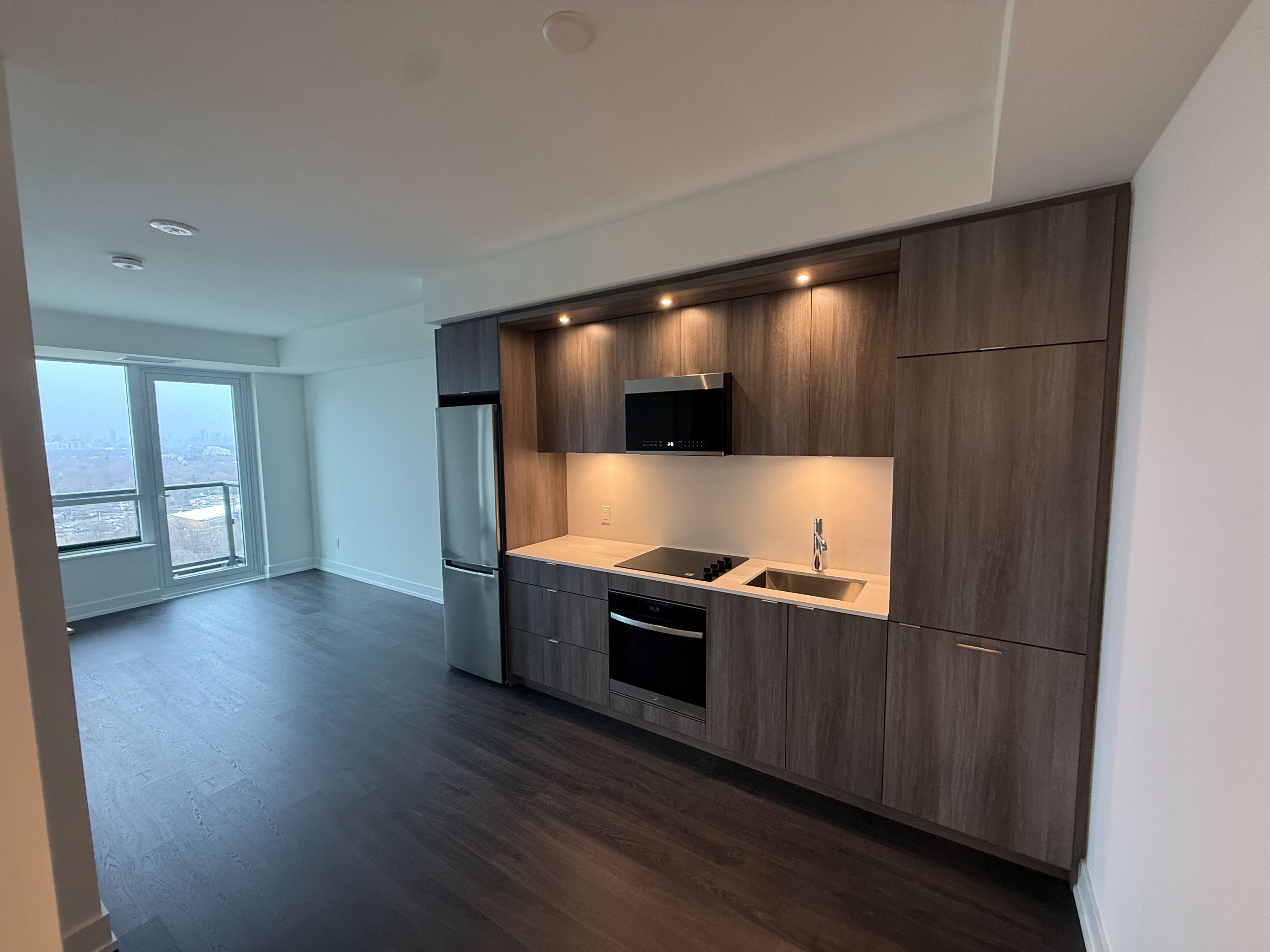 This stylish 1-bedroom suite at westerly 2 offers approximately 572 sq ft of functional living space with upgraded appliances and laminate flooring throughout. The open-concept kitchen, living, and dining area extends onto an east-facing balcony with a beautiful view of the toronto skyline from the 22nd floor, filling the suite with abundant natural light. Residents enjoy access to a great selection of building amenities, including a fitness centre, party and lounge spaces, and thoughtfully designed common areas that complement an urban, transit-friendly lifestyle, just steps from the islington subway.