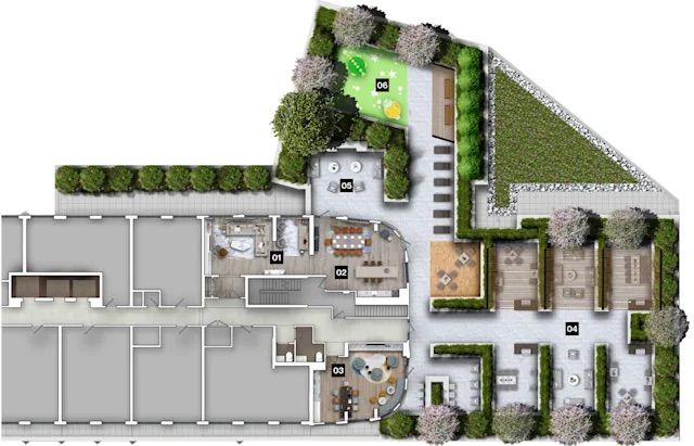 • Building features a gym, party room, and business lounge for residents.