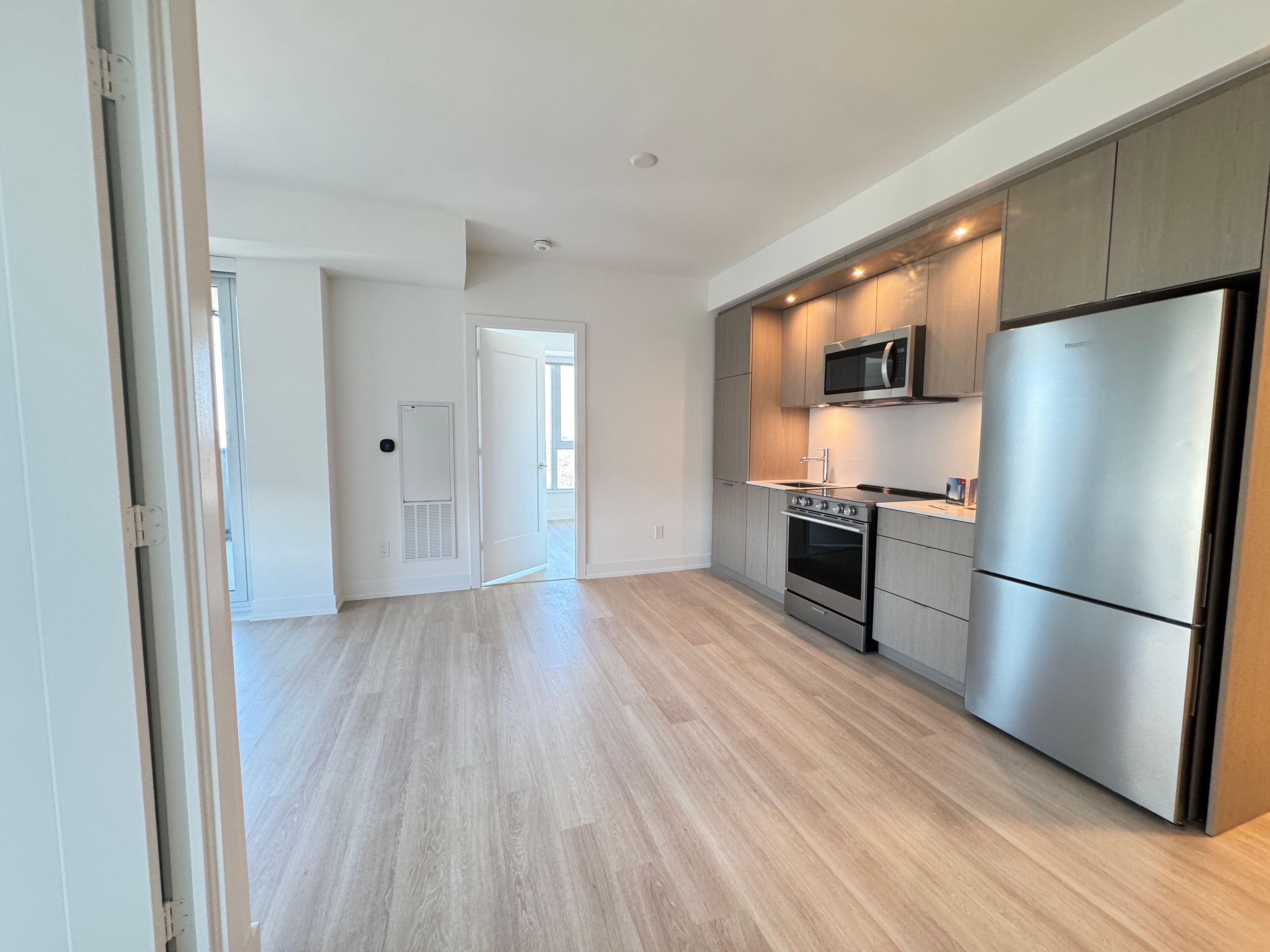 • Open concept living space with large windows and a walk-out balcony.