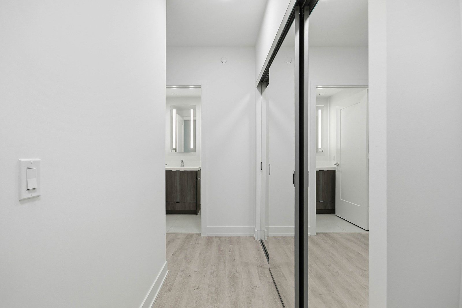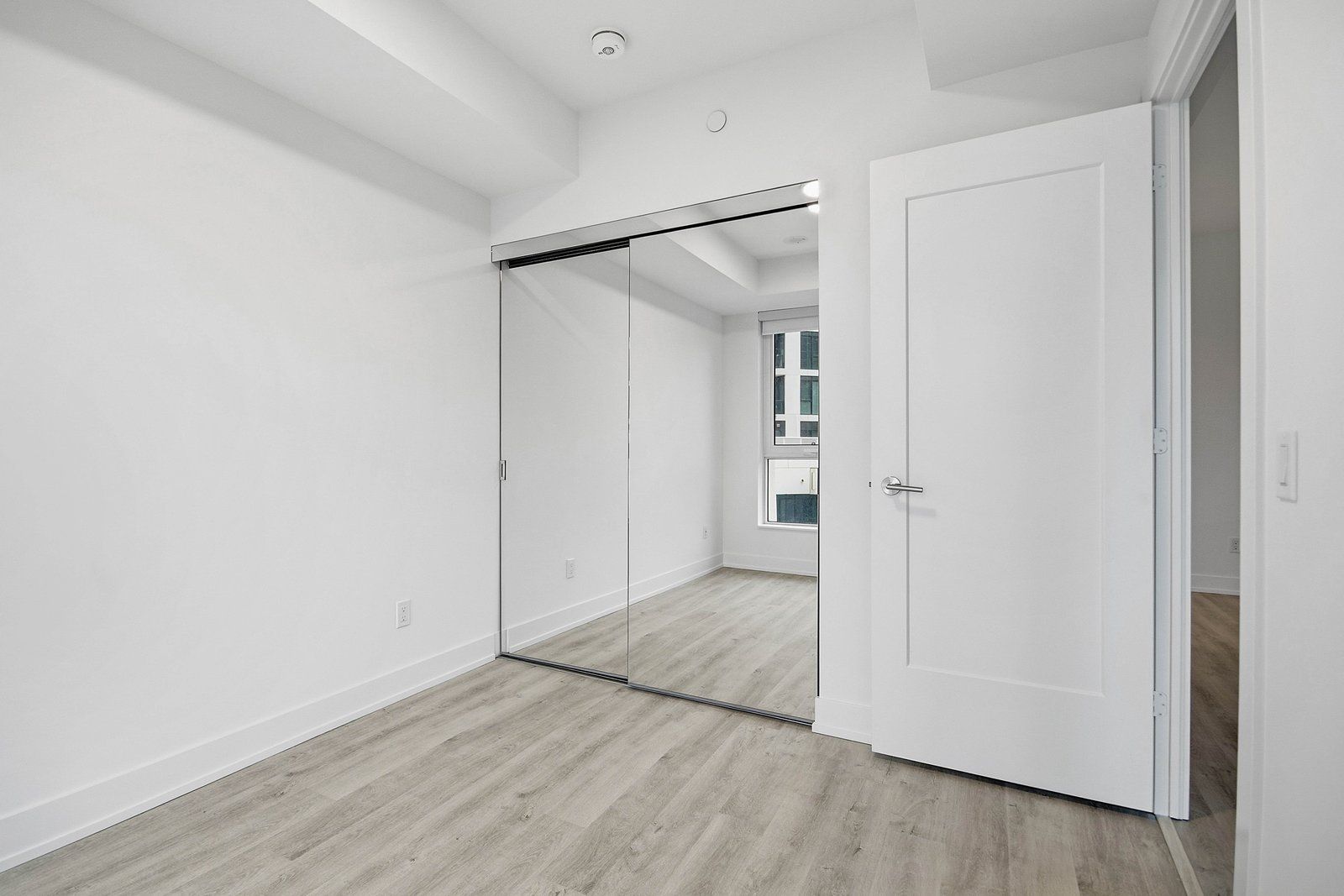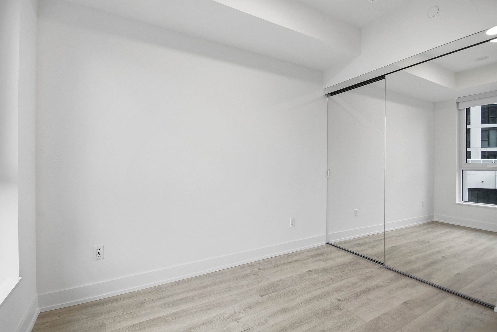 • Primary bedroom includes a large closet and floor-to-ceiling windows.