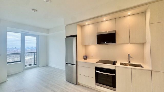Welcome to westerly 2 at 60 central park roadway in the heart of islington-city centre west. This brand-new 1-bedroom suite offers around 500 sq. Ft. Of beautifully designed interior space, featuring a bright, spacious carpet-free layout and modern finishes throughout. The modern open concept kitchen is equipped with built-in stainless steel appliances and sleek cabinetry. The combined living and dining area has floor-to-ceiling windows enhance natural light, while a walk-out from the living space leads to an open balcony with a breathtaking and unobstructive east exposure of our beautiful downtown toronto. The bedroom features a large closet and floor-to-ceiling window, complemented by a modern 4-piece bathroom finished with clean tilework and contemporary fixtures. In-suite laundry adds an added comfort and convenience. Residents enjoy access to building amenities including a fitness center, guest suites, party and meeting rooms, and 24 hr concierge service. Ideally situated steps from islington station, parks etc. This suite offers comfortable, well-connected urban living in a most sought-after etobicoke community.