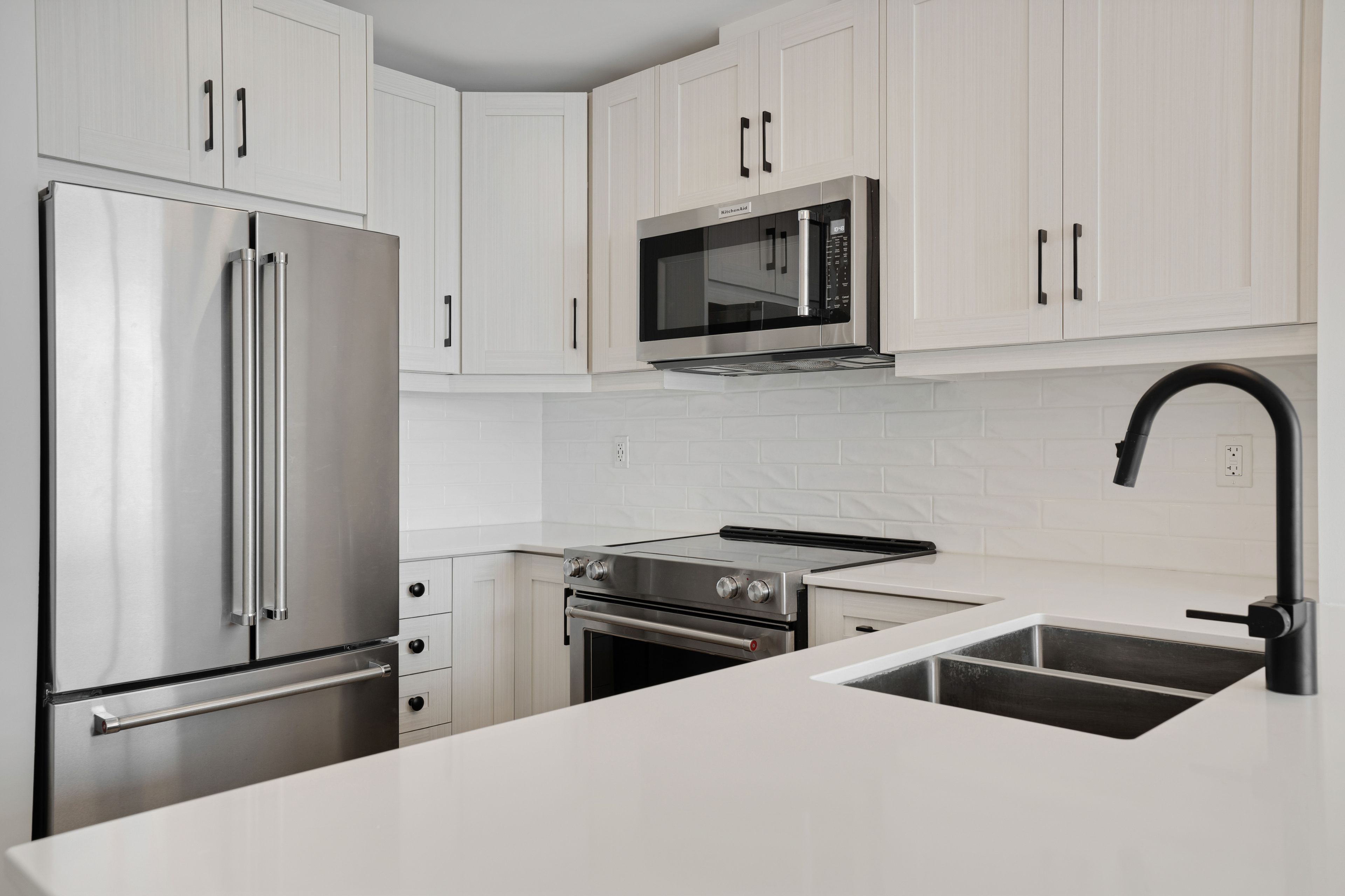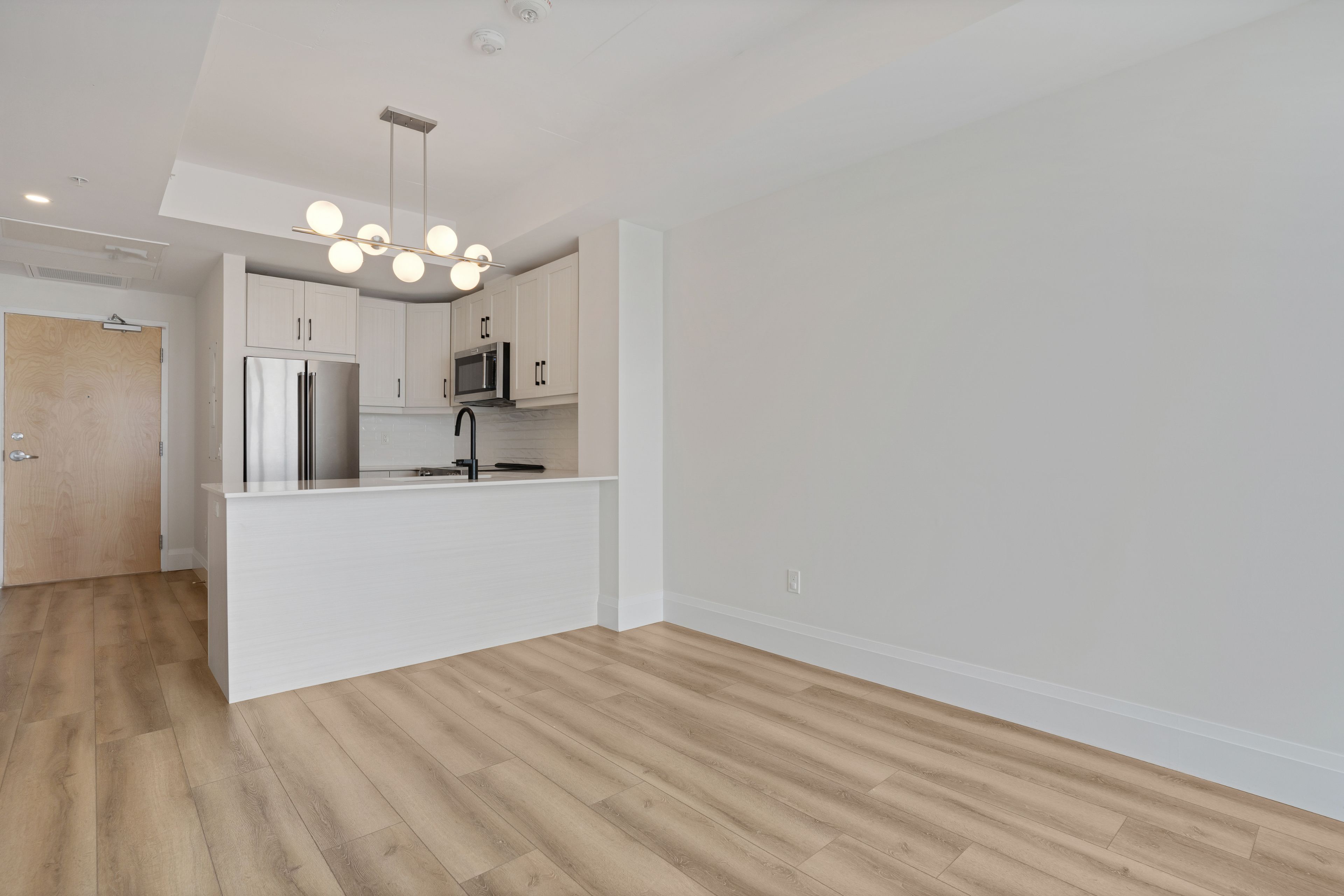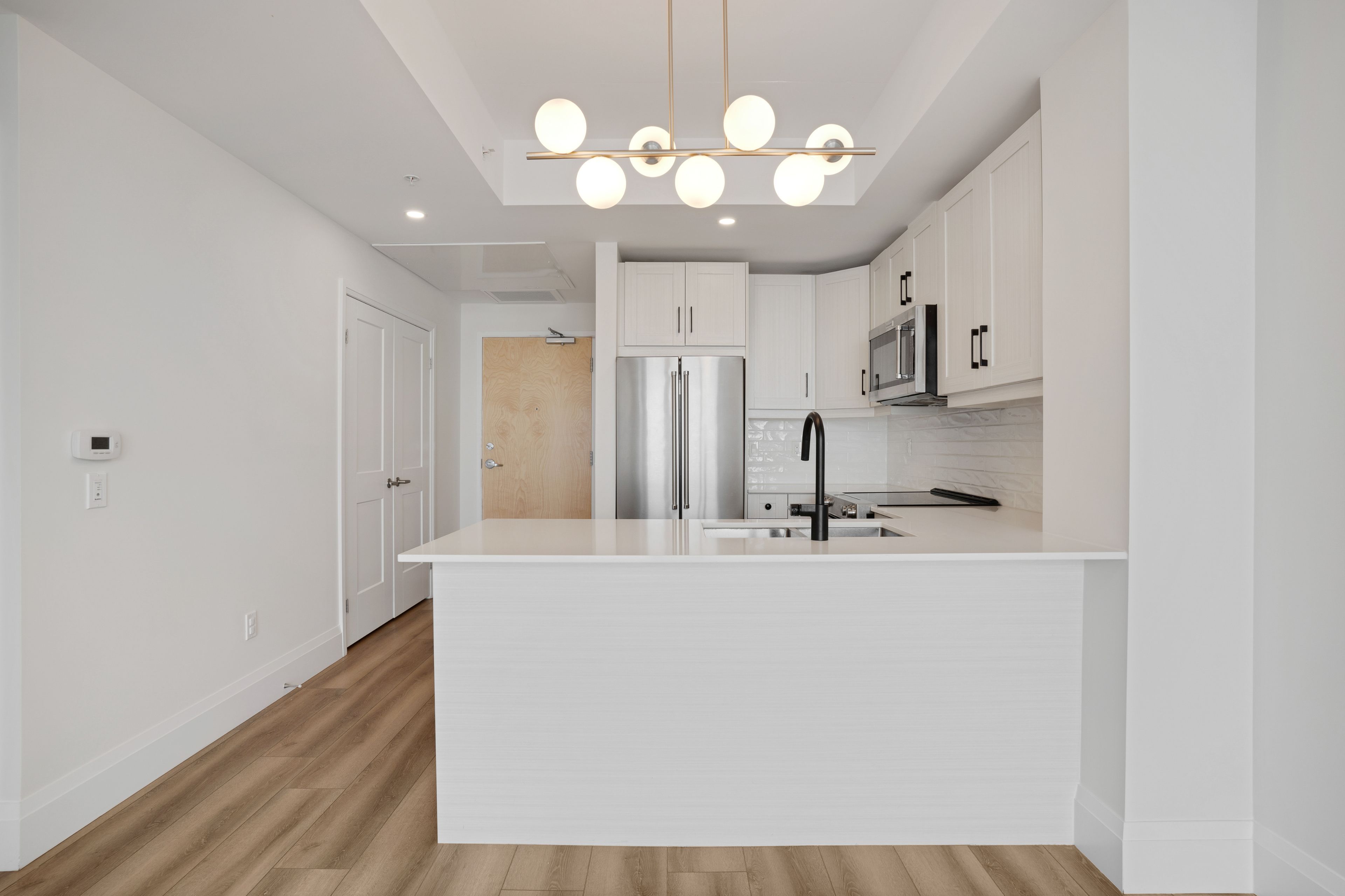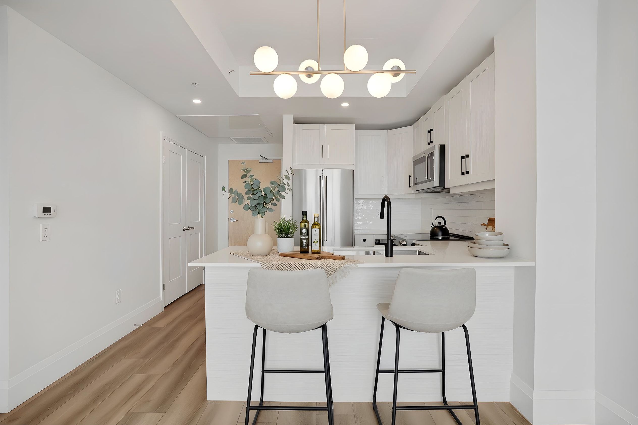 • Modern kitchen with custom cabinetry and flowing design.