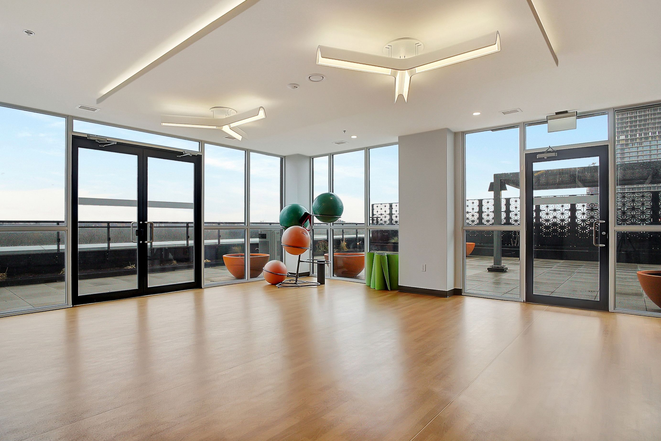 • Pet-friendly building with amenities like a fitness center and outdoor terrace.