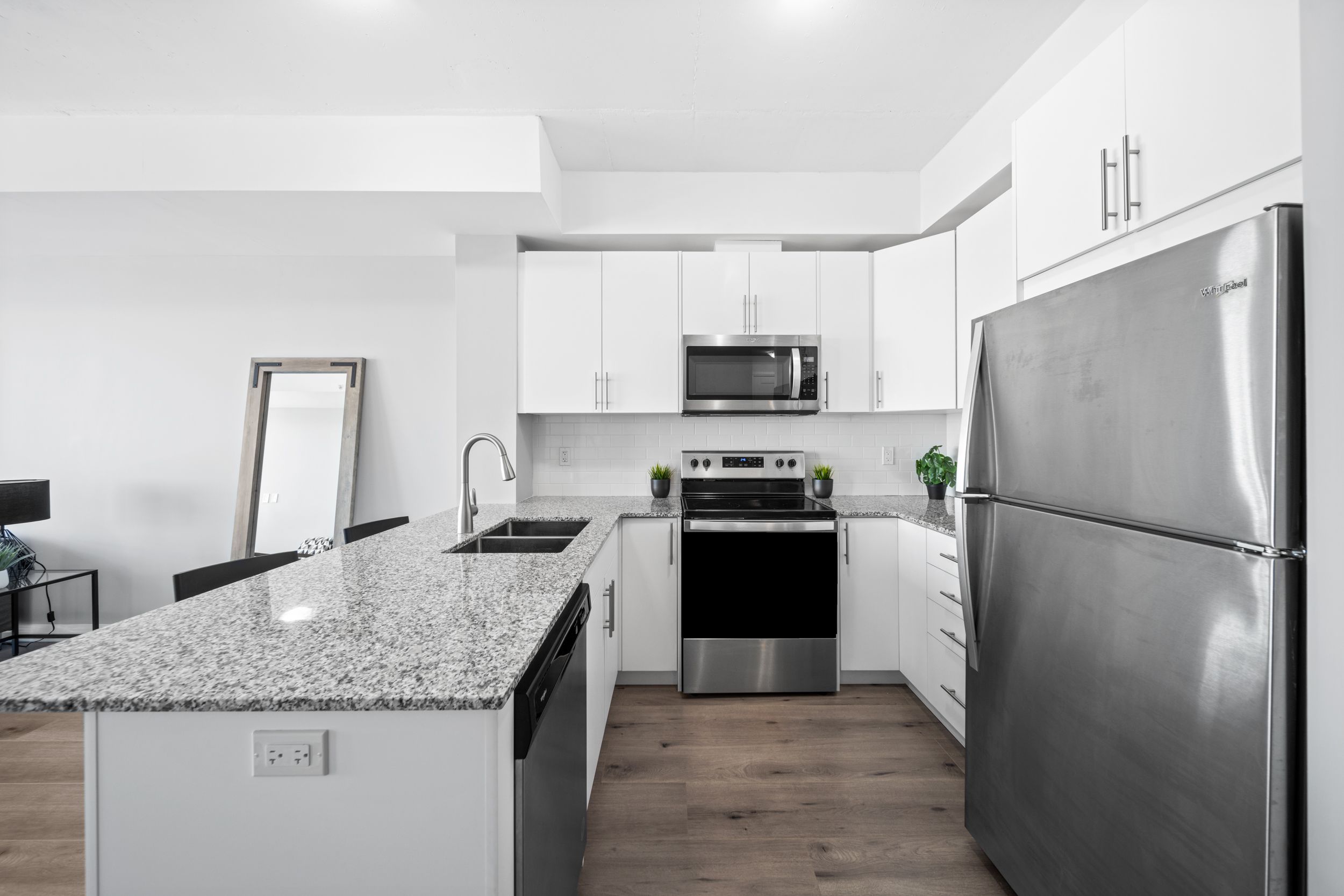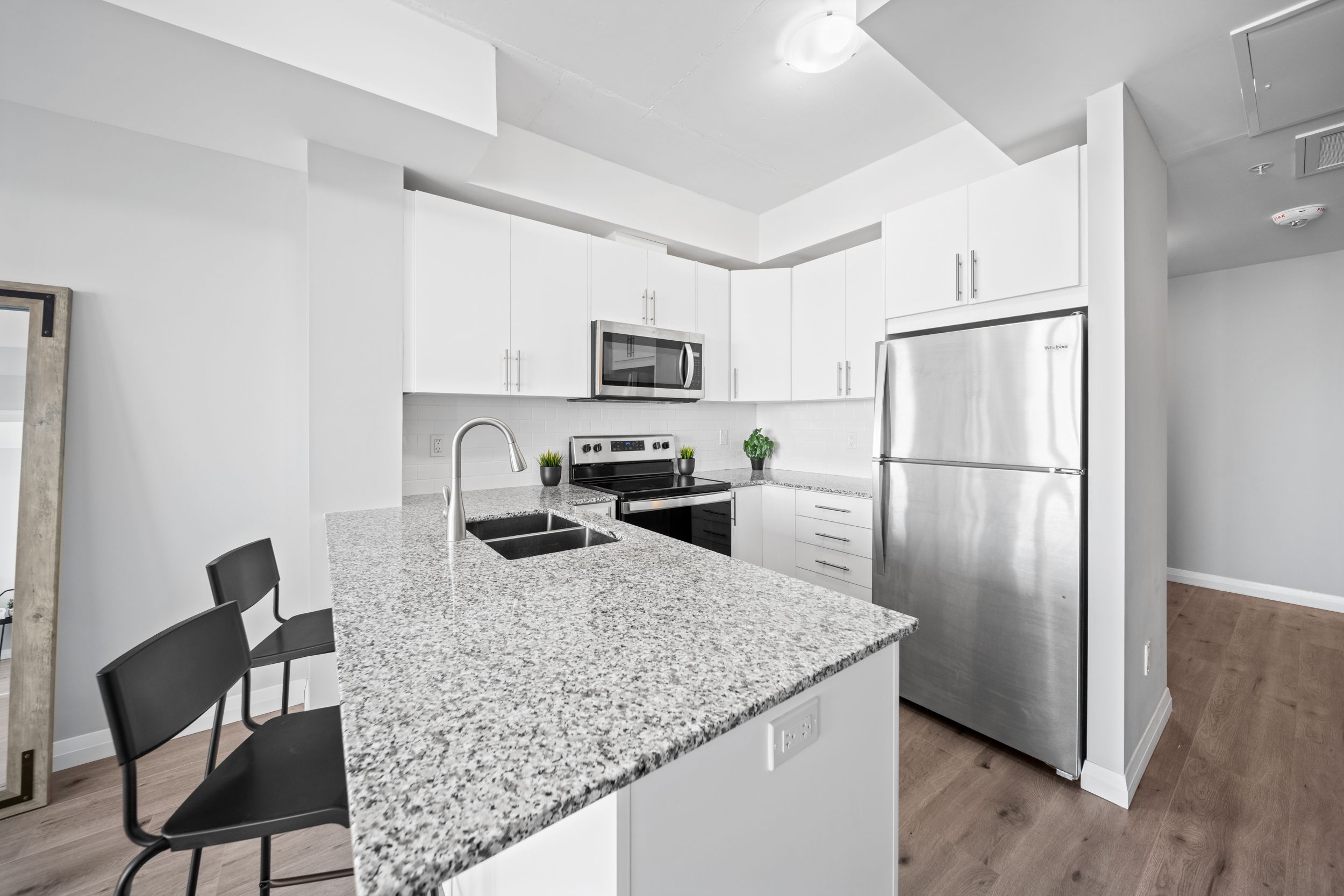 Experience urban living at its finest in this stylish one-bedroom plus den condo, perfectly situated just a two minute walk to the lrt station. Nestled within a modern and secure building, this condo offers a blend of contemporary design and convenience. Step into an open-conceptliving space that's thoughtfully designed to maximize both style and functionality. The living room boasts a walk-out to the balcony and largewindows, filling the space with natural light that complements the modern finishes. The upgraded and sleek kitchen is equipped with stainlesssteel appliances, and granite countertops, making it a culinary enthusiast's dream. The spacious bedroom features a double closet. The versatileden can serve as a home office, guest room, or cozy reading nook, catering to your lifestyle needs. Enjoy your morning coffee or unwind after along day on your private balcony, offering a lovely view of the cityscape. Additional amenities include in-suite laundry, secure undergroundparking, and a fitness center, rooftop terrace, and resident lounge. With victoria park, public transit, shops, and dining options just a short walkaway, this condo delivers the perfect combination of luxury and urban convenience.