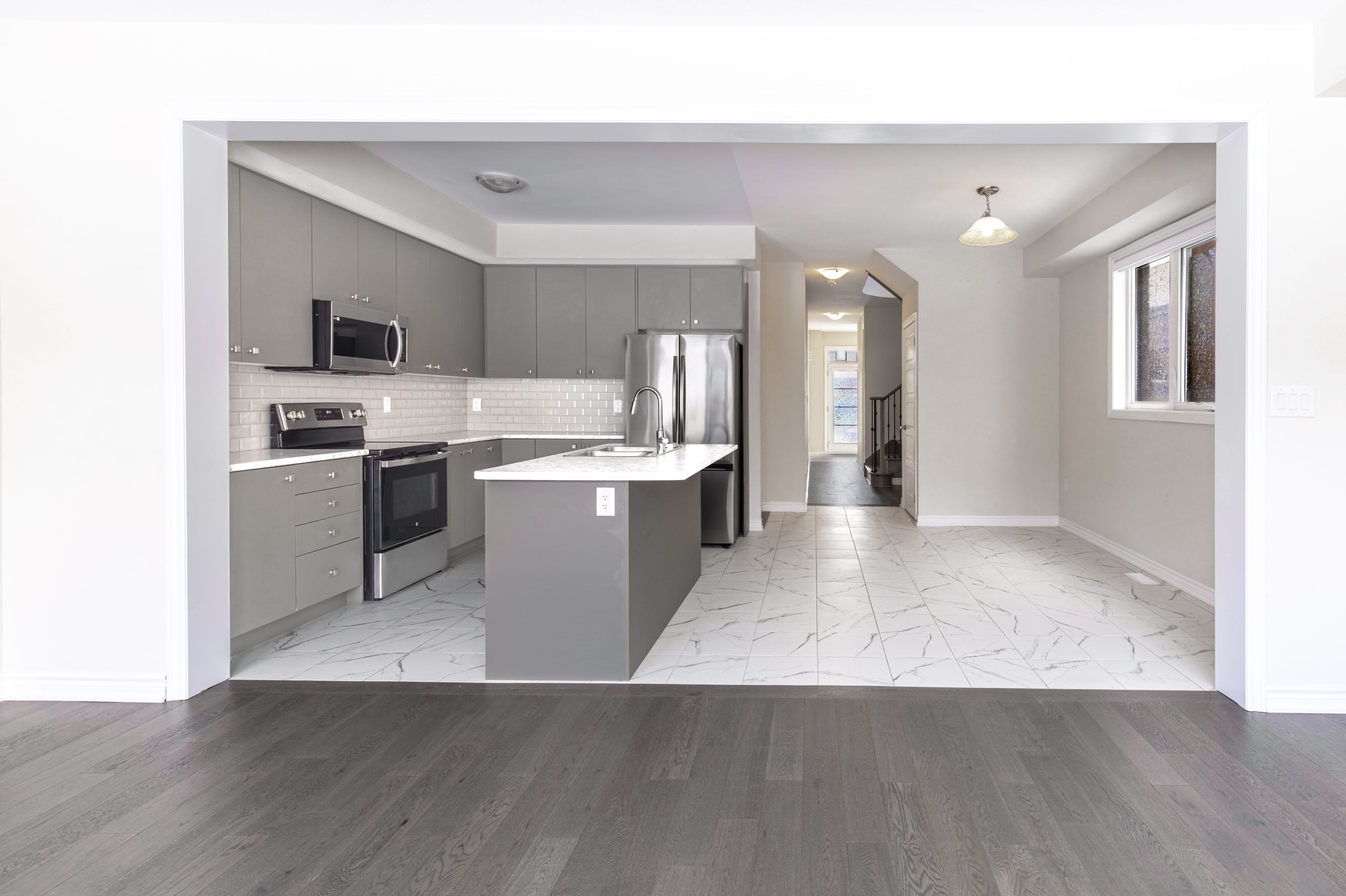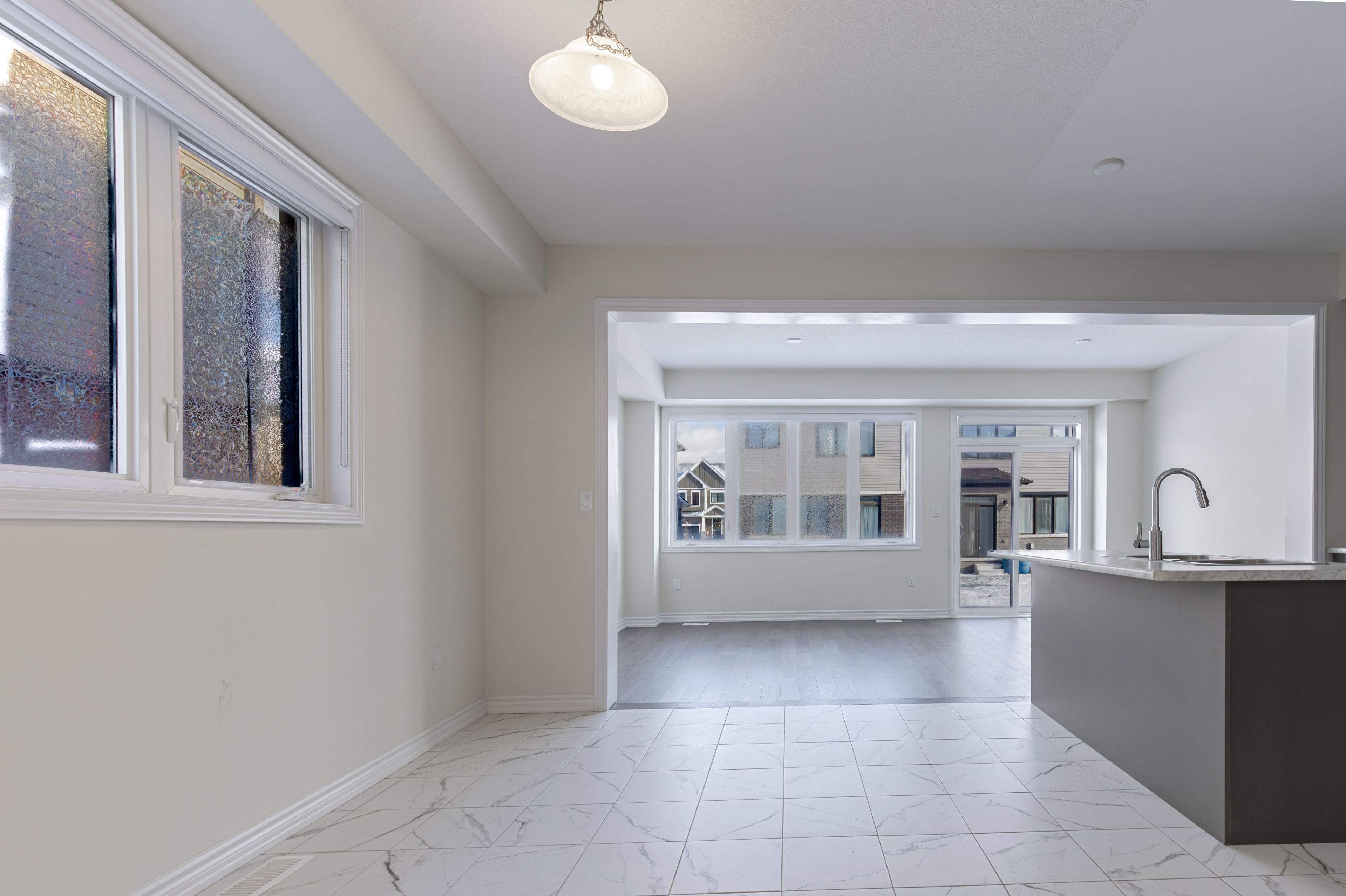 Beautiful detached home in empire calderwood featuring spacious, bright and functional living space. This 4-bedroom, 2. 5-bath property offers a park-facing view, no sidewalk, and a single-wide driveway with garage. Step inside through the double-door entry to a spacious foyer with mirrored closet, leading to a stunning open-concept kitchen, living, and dining area. The main level boasts 9 ft ceilings, hardwood floors, and a huge great room with walk-out to the backyard. The kitchen features a breakfast area, brand new stainless steel appliances, and solid oak stairs leading to the second floor. Upstairs youll find bedroom-level laundry, a large primary suite with a 5-piece ensuite and walk-in closet, plus three more generously sized bedrooms and an additional full bathroom. Located close to schools, grocery stores, transit, and hwy 406, this home is ideal for first-time buyers, families, or investors. Built by empire communities with a durable brick and stone exterior. Older pictures (recent upgrades include a finished driveway, all new stainless steel appliances, and a second-floor washer and dryer. Vacant