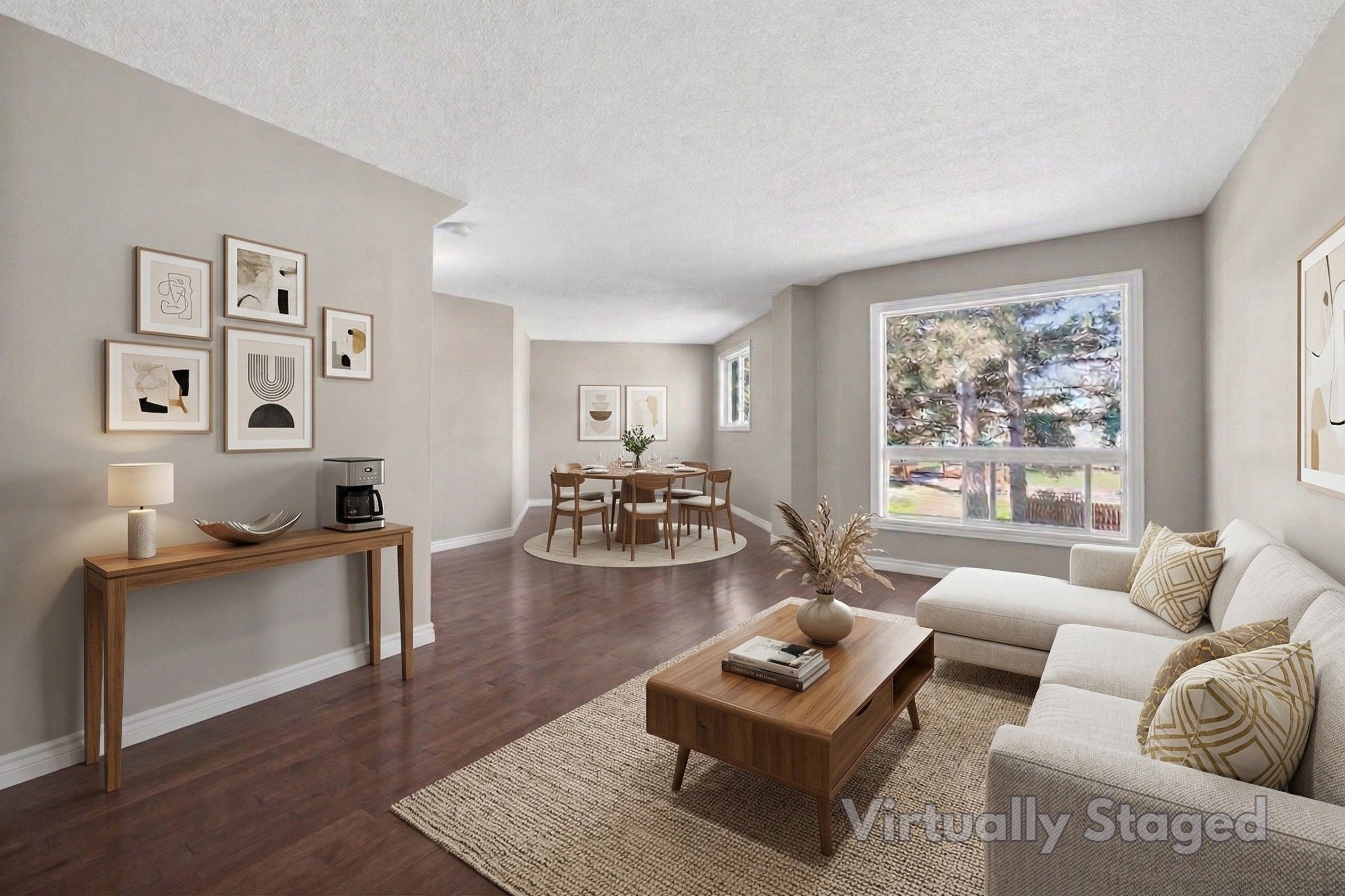 • Bright living room and open kitchen, great for family gatherings.