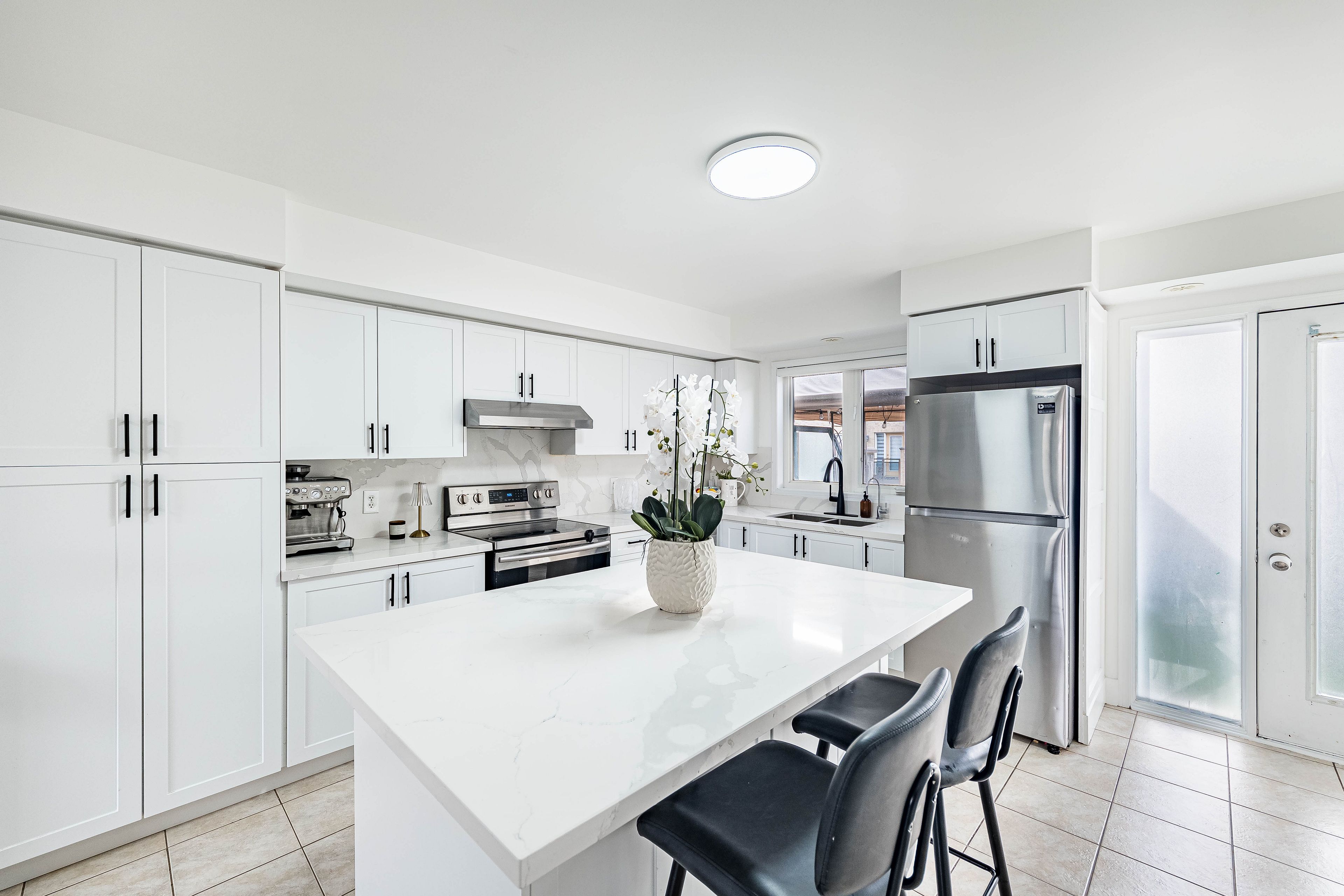 • Stylish kitchen with quartz countertops, large island, and ample storage.