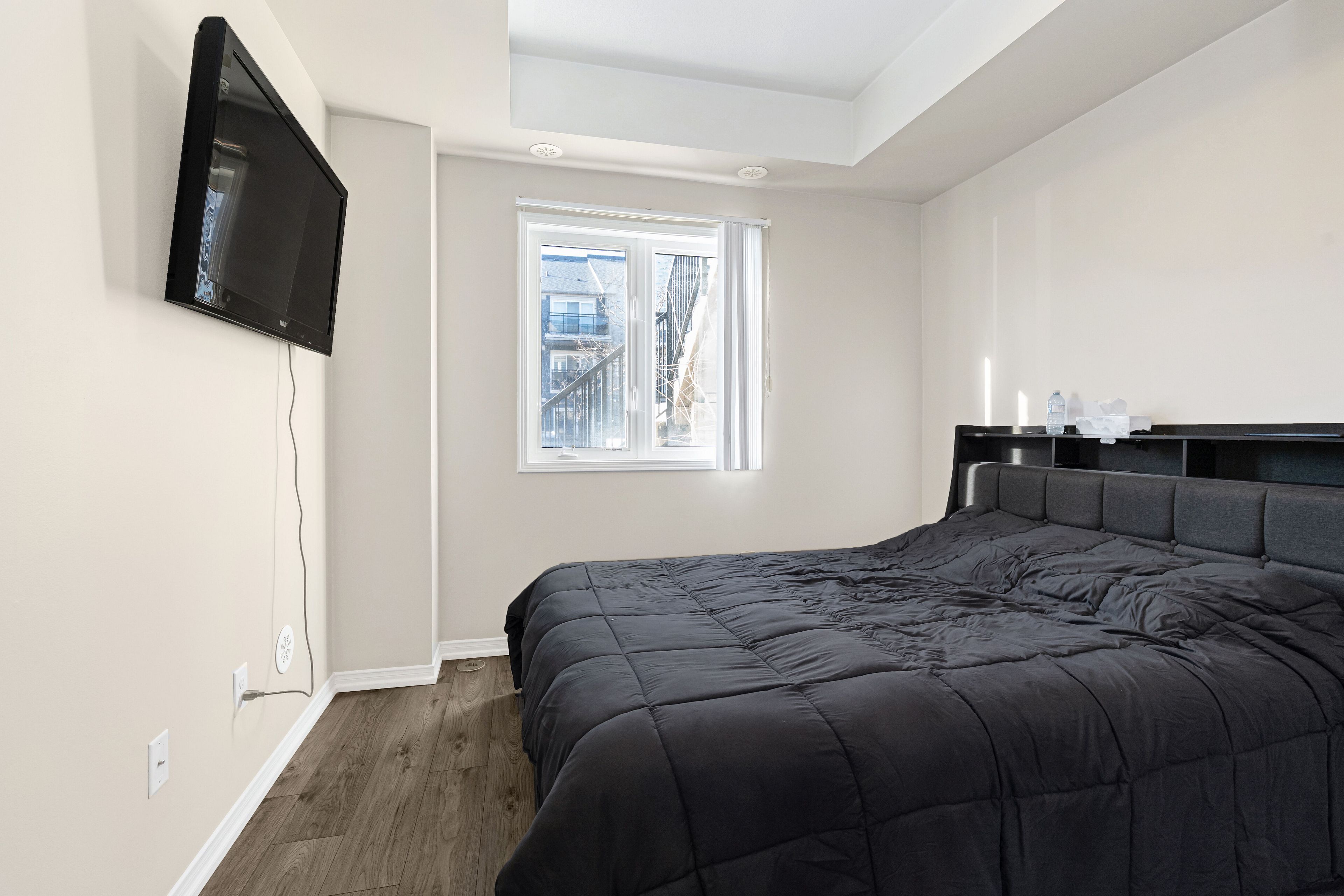 • Bright primary bedroom with large window and ensuite laundry.