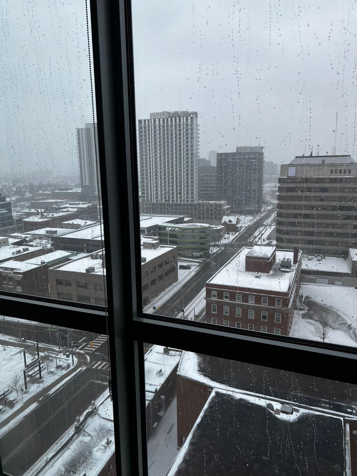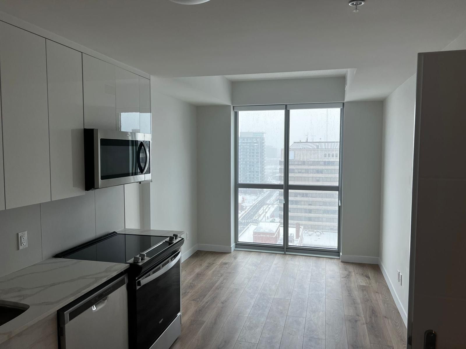 Welcome to the dtk condo. This is the tallest tower in the city, at 12 stories with amazing views. Ion lrt stops at the front. Exciting opportunity to live in a brand new building. This 1bedroom suite features a high ceiling. Oversized windows, fridge, stove, microwave,dish washer and washer dryer. And many more.
