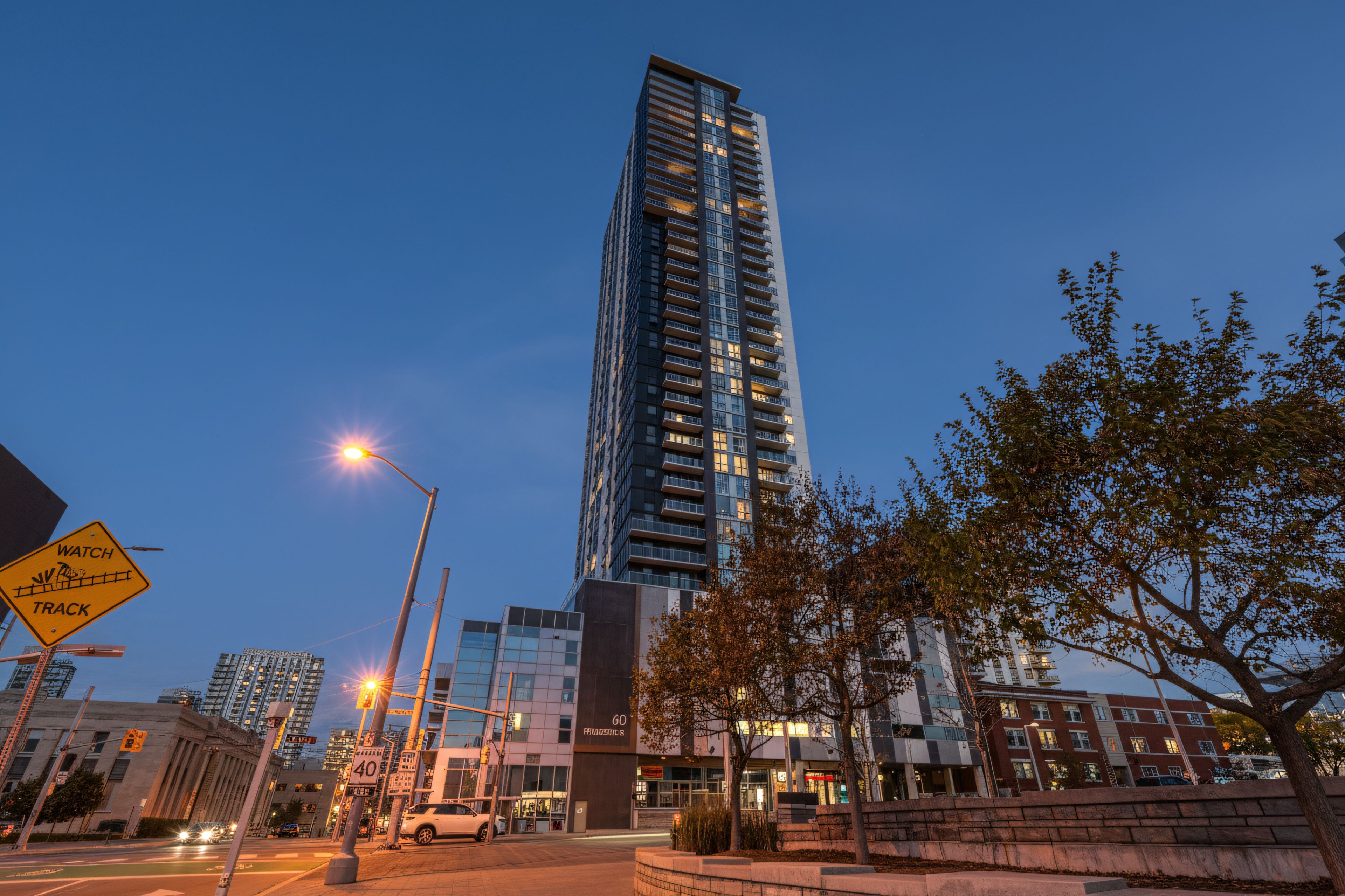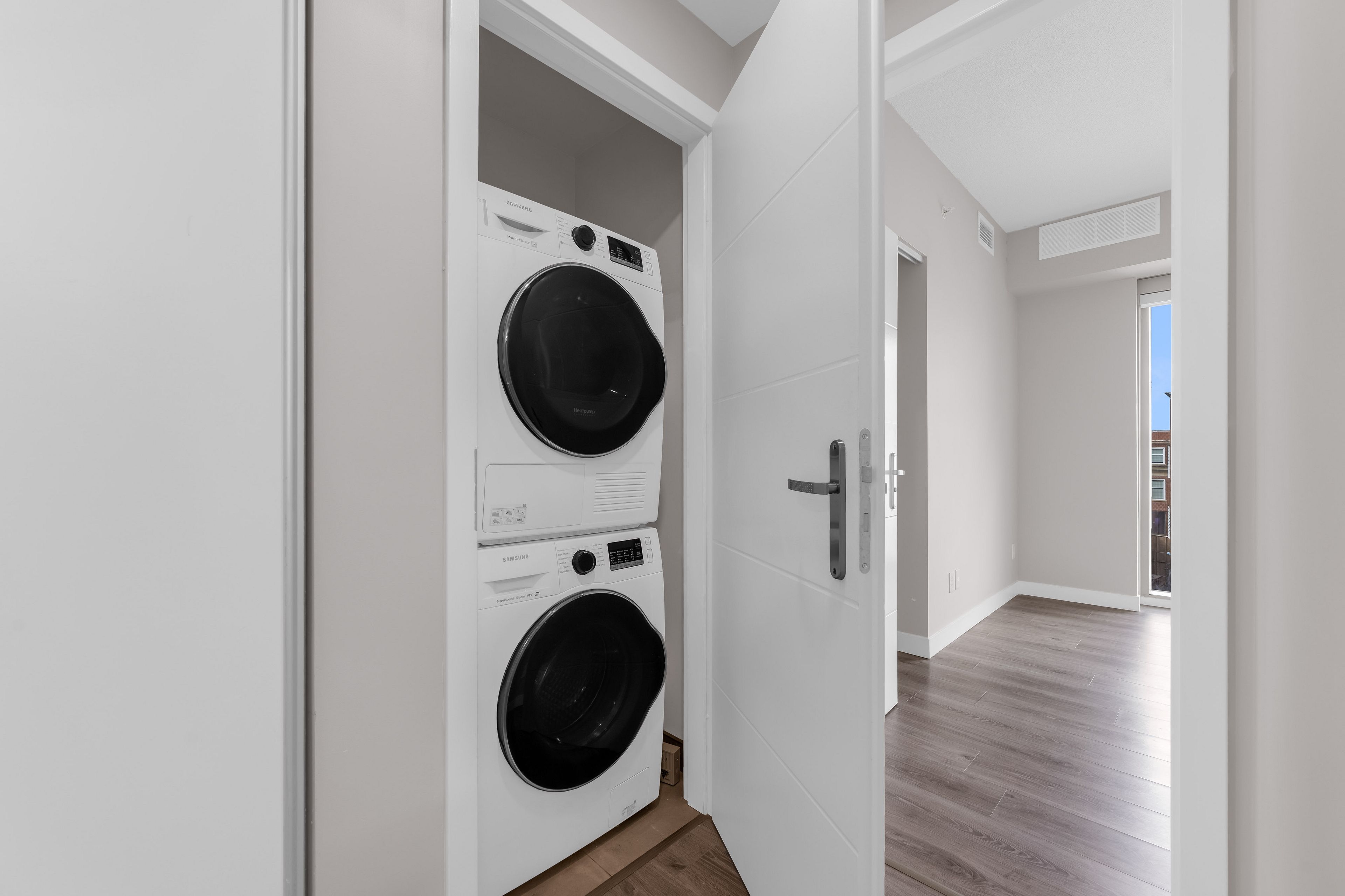 Welcome to unit 307. This rare 2-bedroom, 2-bath condo located in the heart of kitchener. The unit is 823 sq. Ft and the largest 2-bedroom unit in the building. Located on the podium level, you can skip the elevator and access your unit directly from your owned parking spot on the 3rd floor. The layout boasts a spacious primary bedroom with a walk-in closet, while the second bedroom features double closets, all fitted with upgraded organizers. Additional highlights include automated powered roller shades, private balcony and in-suite laundry. The condo is close to it all- lrt access, conestoga college, government buildings and great restaurants. Don't miss out on this rare opportunity to rent a spacious unit in one of kitchener's premier buildings!