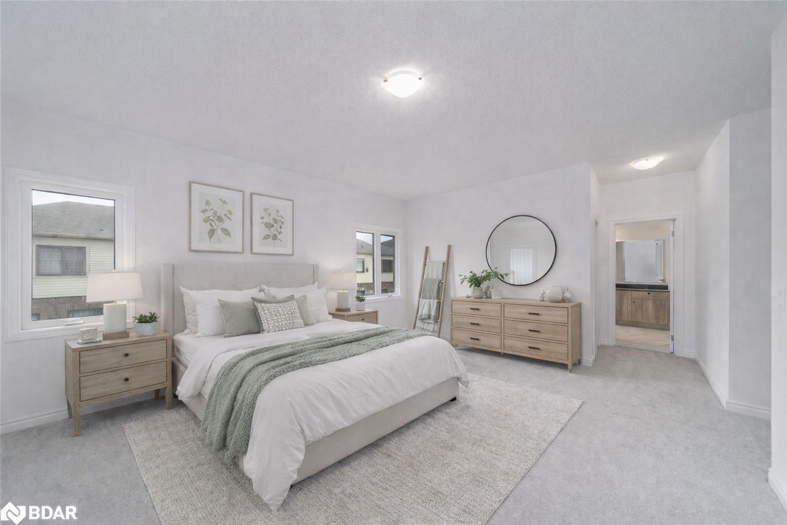 • Stylish features like quartz countertops, hardwood flooring, and French doors.