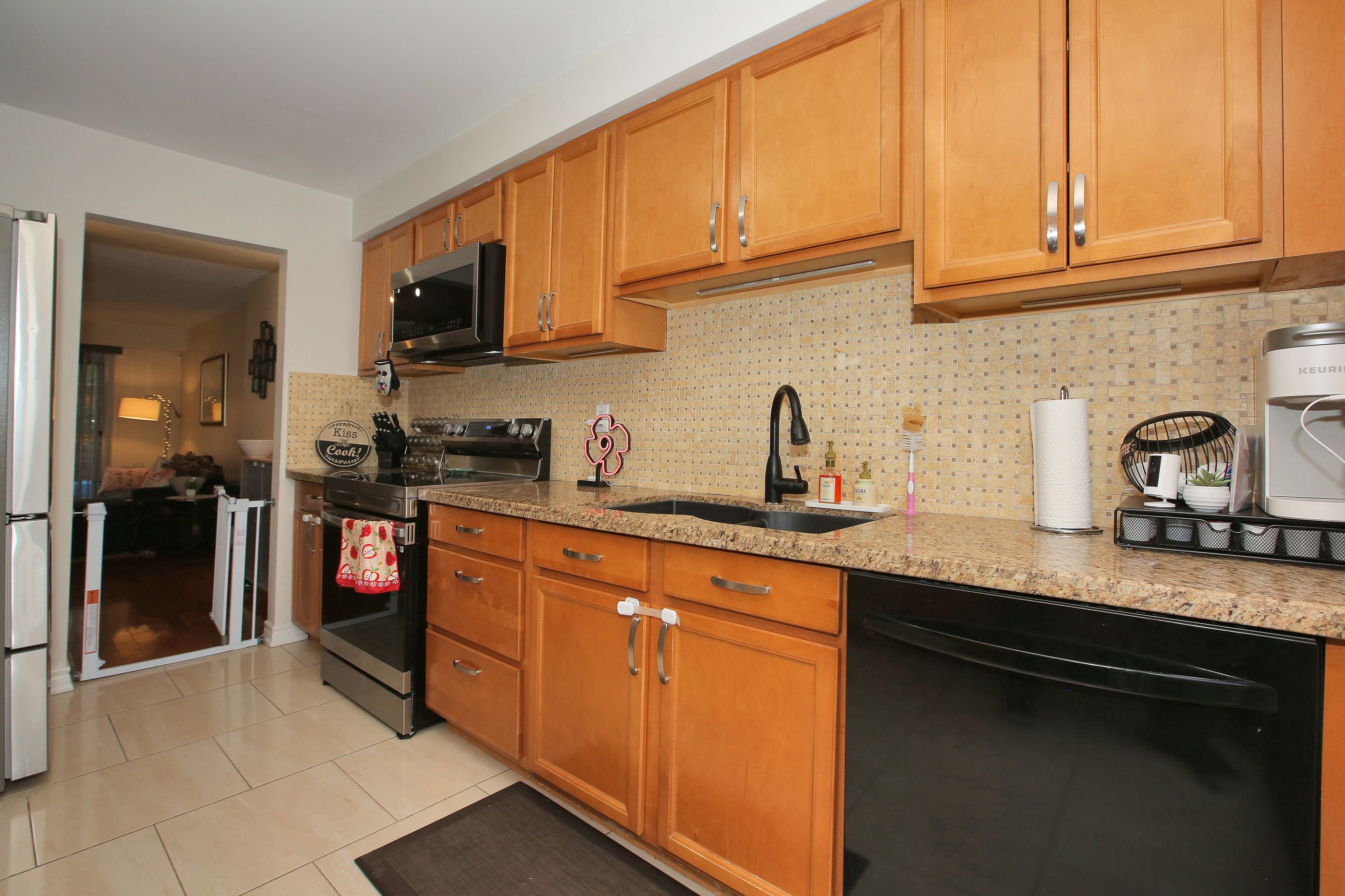 • Bright kitchen featuring stainless steel appliances and a pantry.