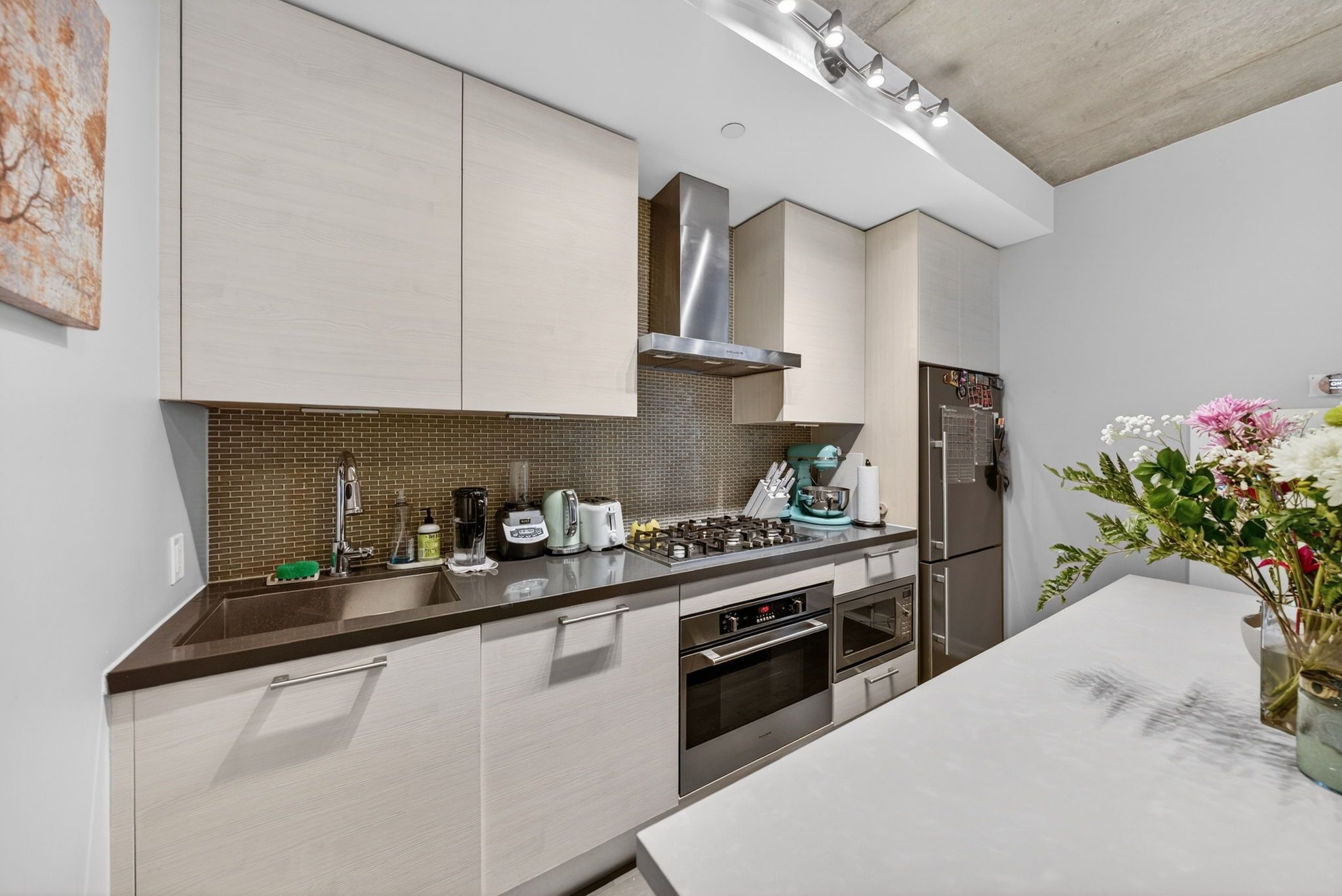 • Modern open-concept kitchen flows into the living area.
