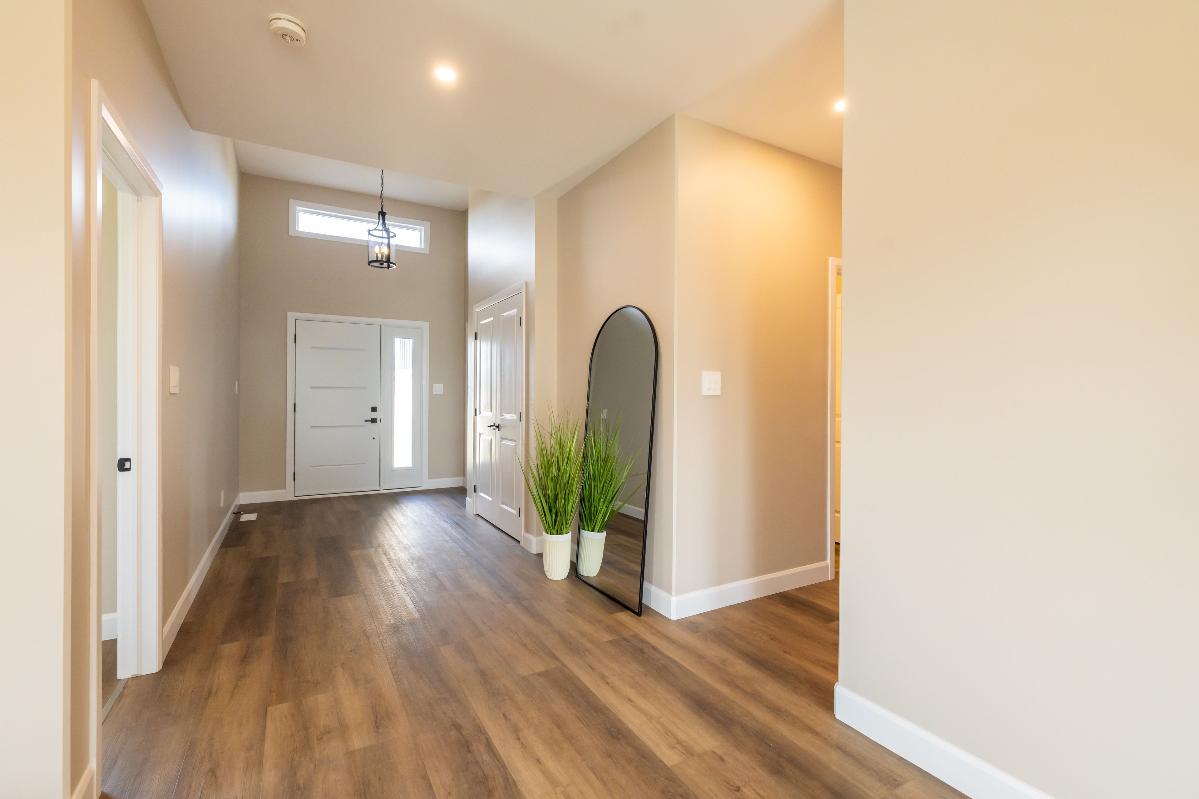 Snowmageddon offer!! Purchase this home and close by spring 2026 to have a basement bedroom, storage room, and landing finished at no cost, or upgrade to finish the whole basement for approximately half the cost or fill the home with a $10,000 appliance package of your choice! At frontier homes, we build homes we would live in. 60 hastings park drive. Nestled in the sought-after potters creek subdivision, this flagship model blends modern elegance and design, with family living in mind. From the outside, a paved double driveway leads to a true two-car garage. Interlocking stone walkway and stone-framed steps guide you to a sleek modern steel door and siding composed of steel board and batten. The foyer soars with 12-foot ceilings that flow into the heart of the home. The living room makes a statement with its stone fireplace and natural wood mantle, complete with a tv box for hidden cord setup. A coffered ceiling elevates the space, bringing definition and character. The kitchen is both stylish and functional, featuring ceiling-height cabinets with crown molding, dekton countertops by cosentino, elegant pencil shaker cabinetry, under-cabinet lighting, and textured black and gold pulls to tie it all together. A black double sink with matching faucet, an oversized island, and a dedicated bar/coffee area as well! The primary bedroom retreat features a bold feature wall, a transom window, and enough room for a king-size suite with ease. A sliding patio door connects you to the backyard, while the luxurious ensuite offers two sinks, black-trimmed mirrors, oversized tile floors, and a premium ceramic tile shower with hexagon floor detailing. A massive walk-in closet completes the space. Additional highlights include: premium luxury vinyl flooring throughout, upgraded trim and pot lights, oversized windows for more natural light, a large back deck, and an unfinished basement, ready for 2 more bedrooms.
