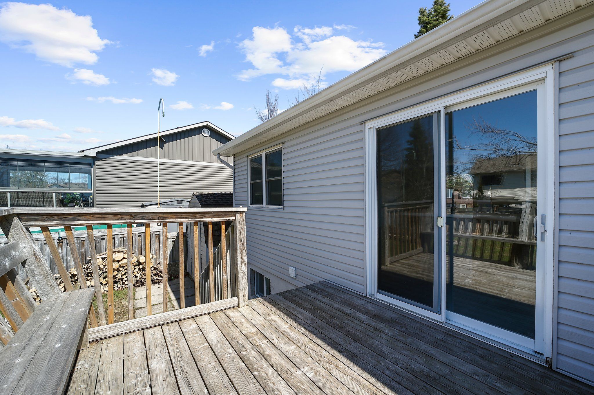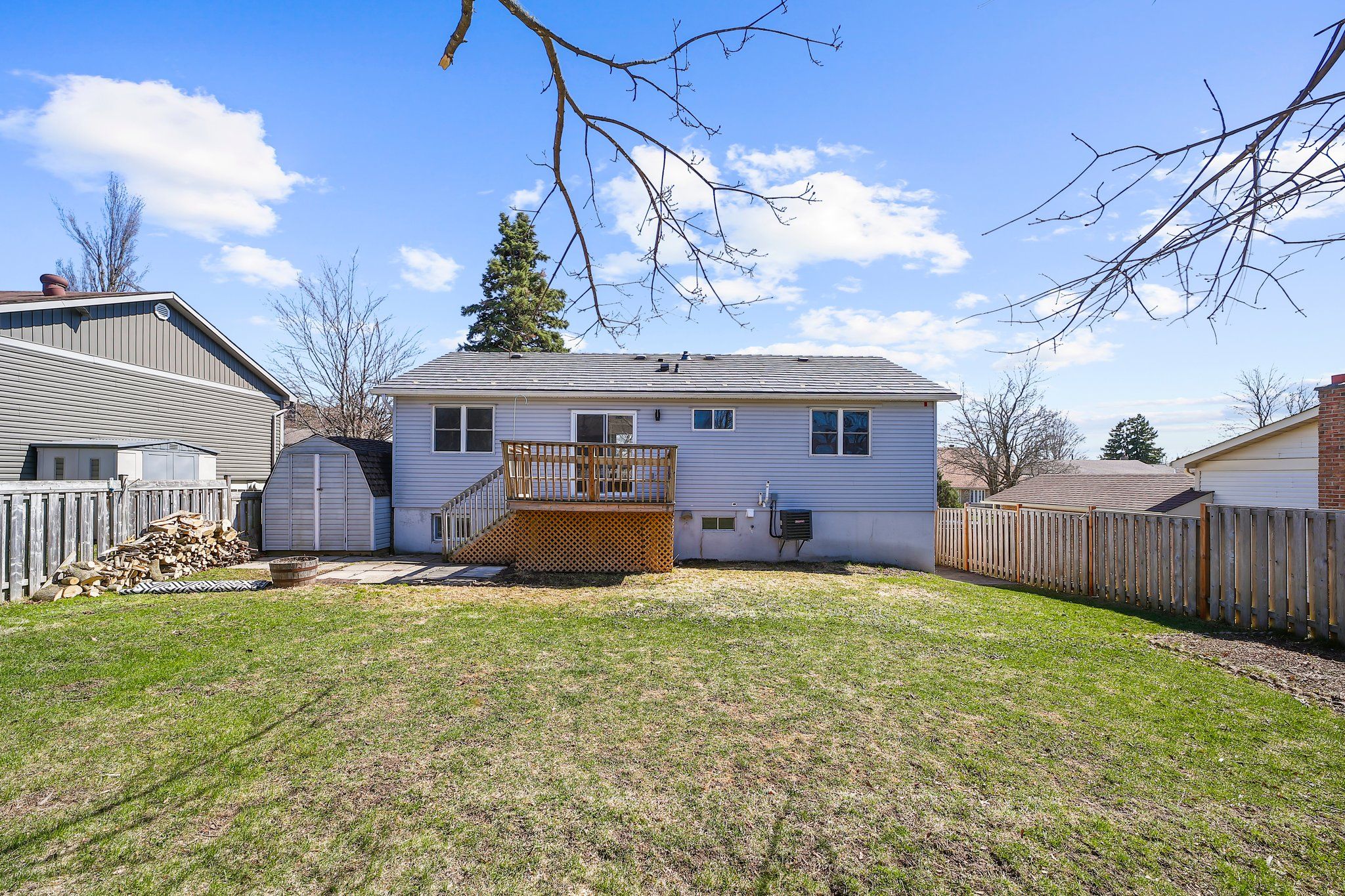 • Spacious deck overlooks a large, fully fenced backyard for outdoor fun.