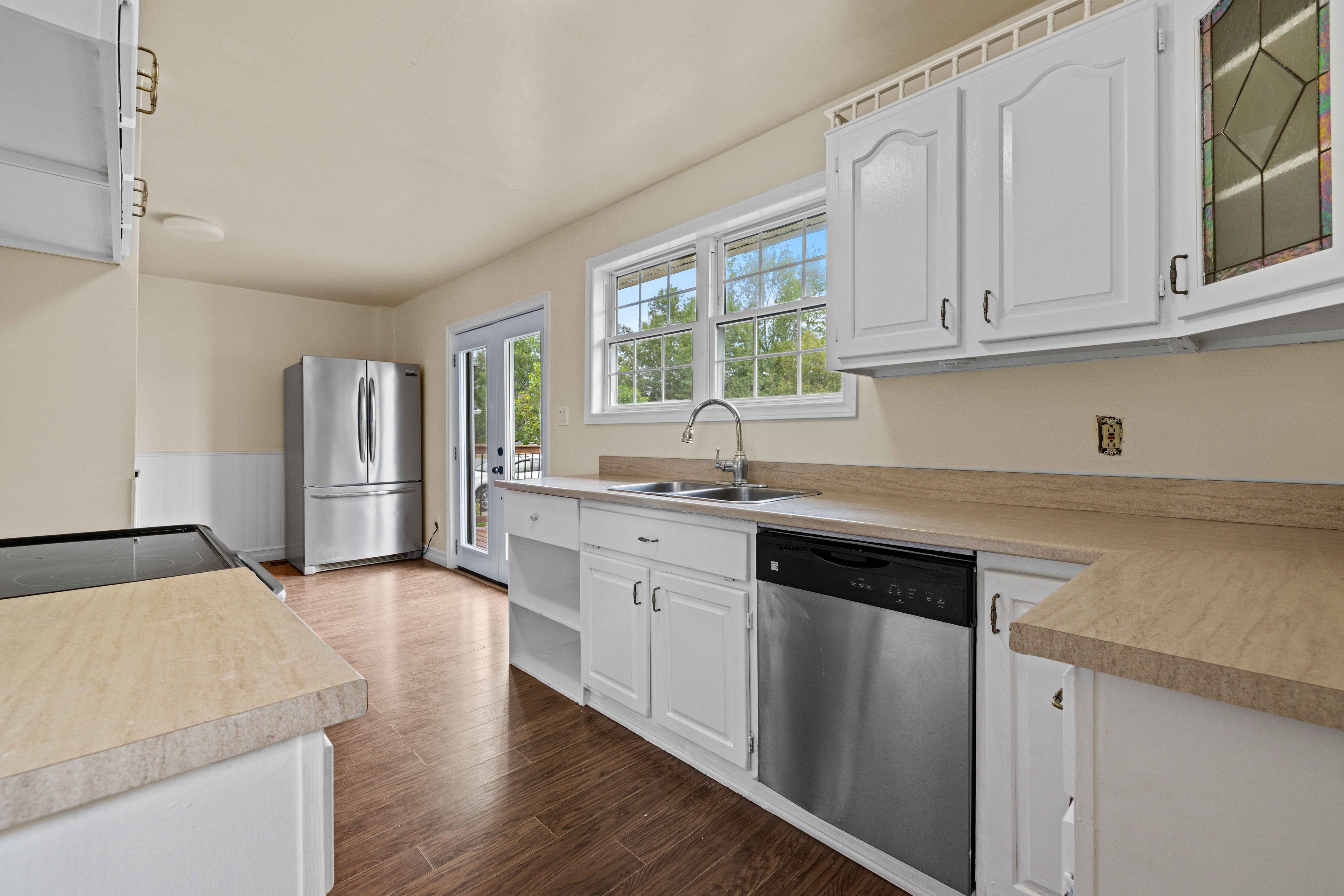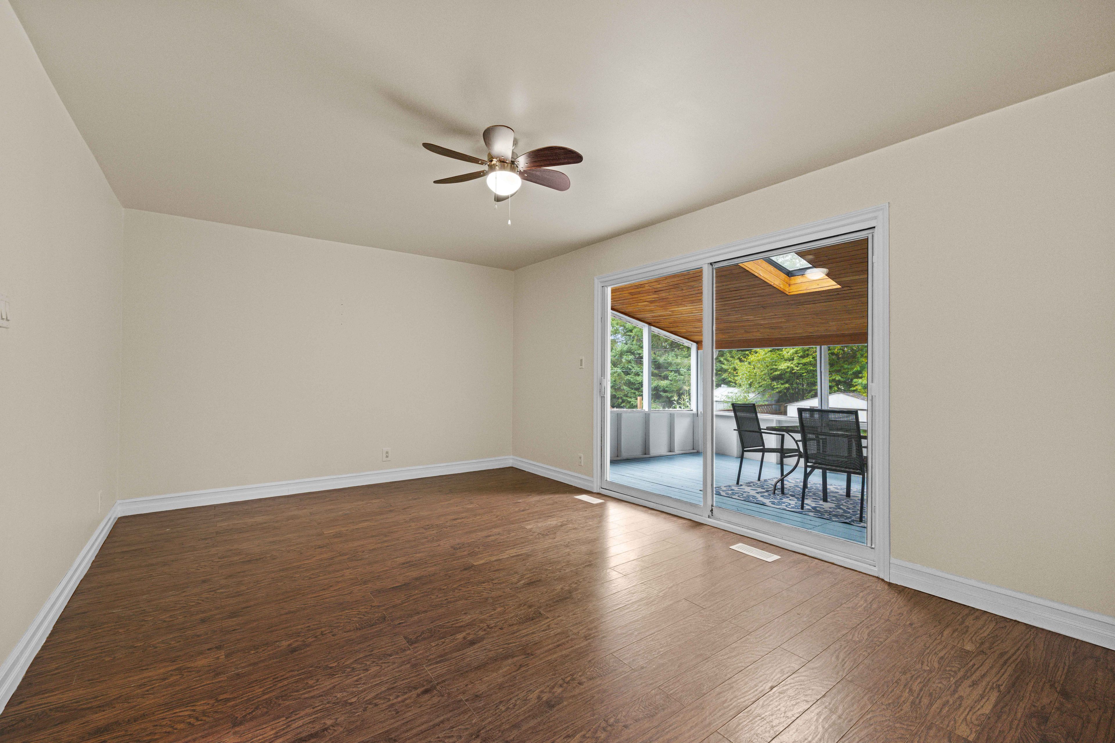 • Bright layout flows into a sunroom overlooking a fully fenced yard.