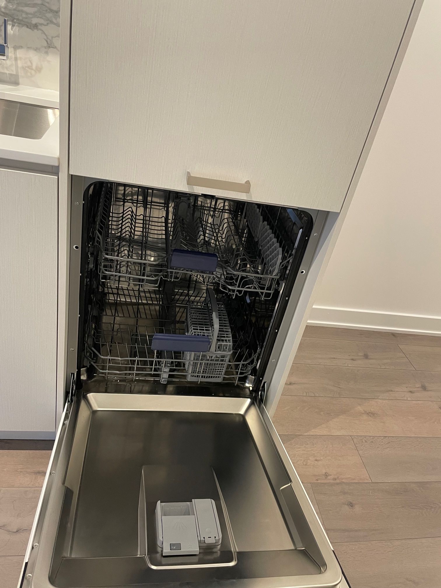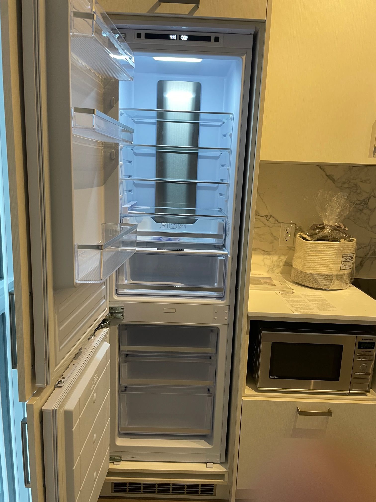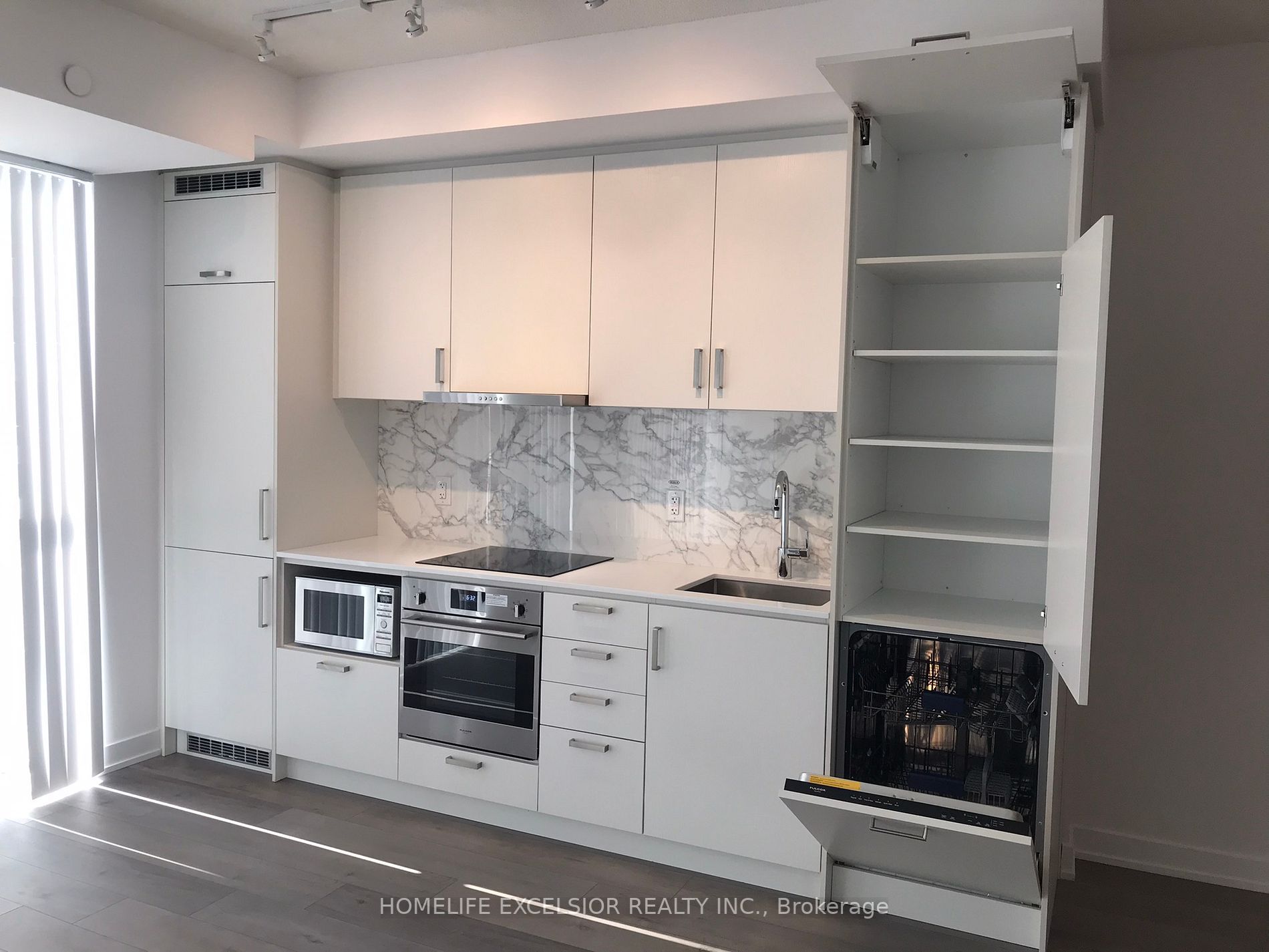 • Fully equipped kitchen with European appliances and under-mounted sink.