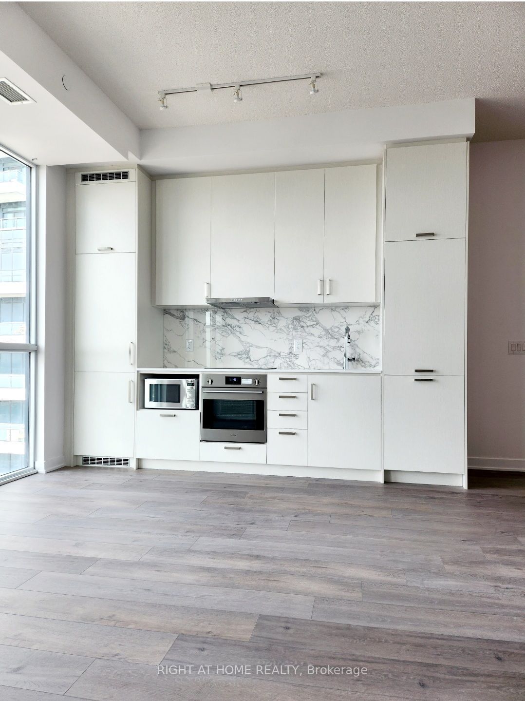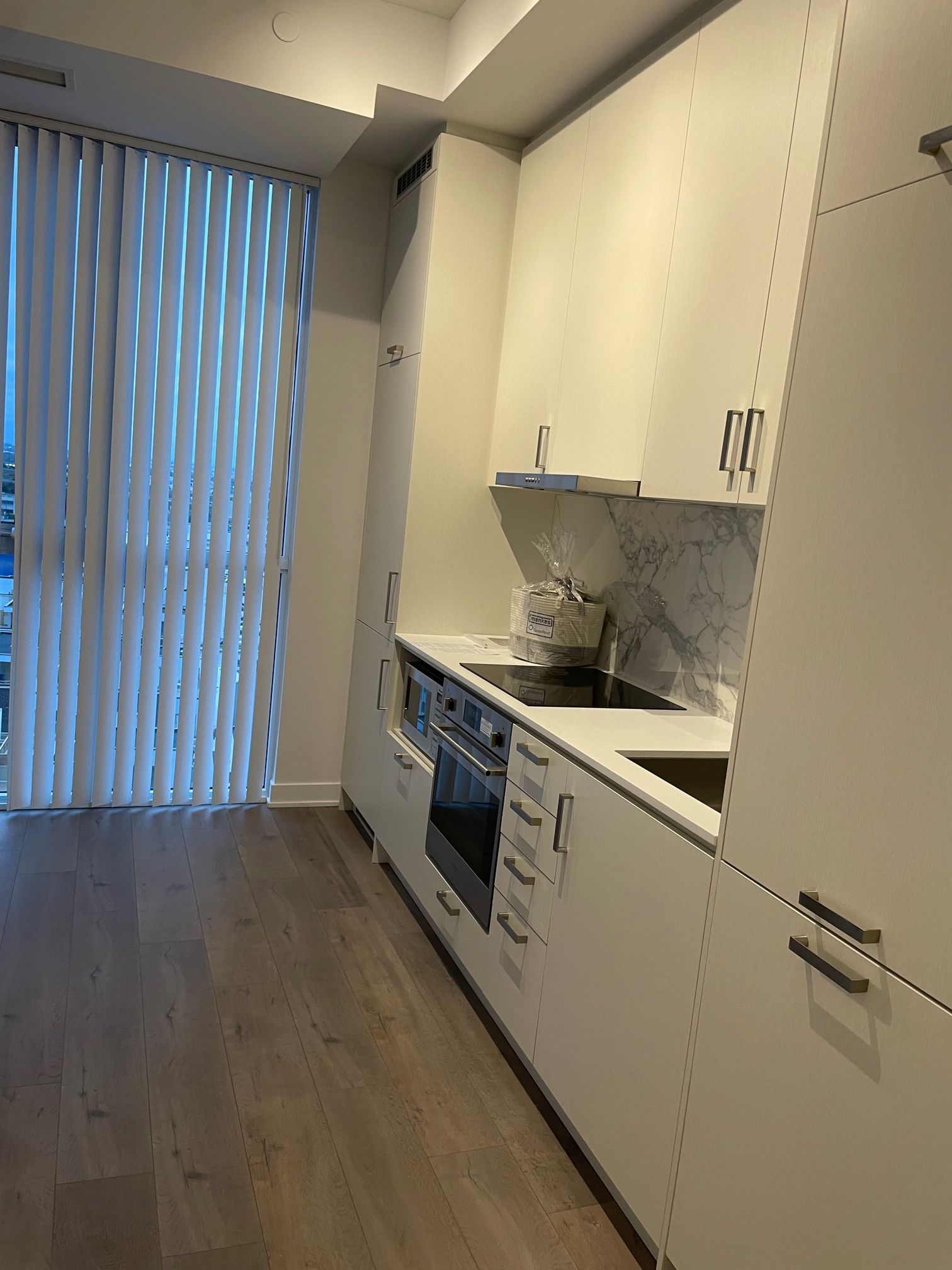 Two year new spacious studio unit (441 sft) in mobilio south tower by menkes. 10' ceiling. Thermally-insulated energy efficient windows, laminate flooring in foyer, living/dining room and kitchen. Stainless steel under-mounted sink basin in kitchen. European style appliances include refrigerator with bottom-mount freezer, cook top, oven, b/i dishwasher, microwave, frontloading washer & dryer. 24 hour concierge, welcoming grand 2-storey lobby, state-of- the-art fitness room, party room & more. Close to york university and conveniently located close to ttc,viva, vmc subway, zoom public transit, major highways 400, 401 and 407, ymca community centre, ikea.