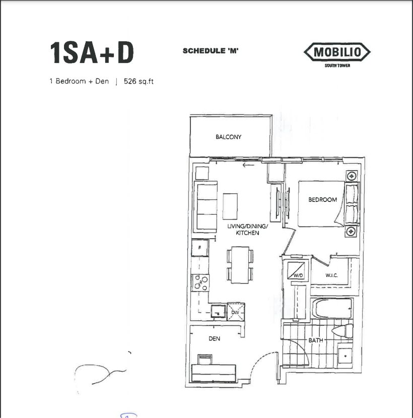 One bedroom + den unit at mobilio condo south tower developed by menkes. Functional layoutdesign w/large size bedroom, large walk-in closet & window. Open space den in a separate areacan be used as second bedroom or office. Model design kitchen w/ luxury built-in appliances. Large cabinet with lots of storages. Excellent location close to anywhere at vmc. Close to vivaand subway station, york university, seneca college, ikea, restaurants, cinema & much more. Direct subway to downtown. Mins access hwy 404/407.