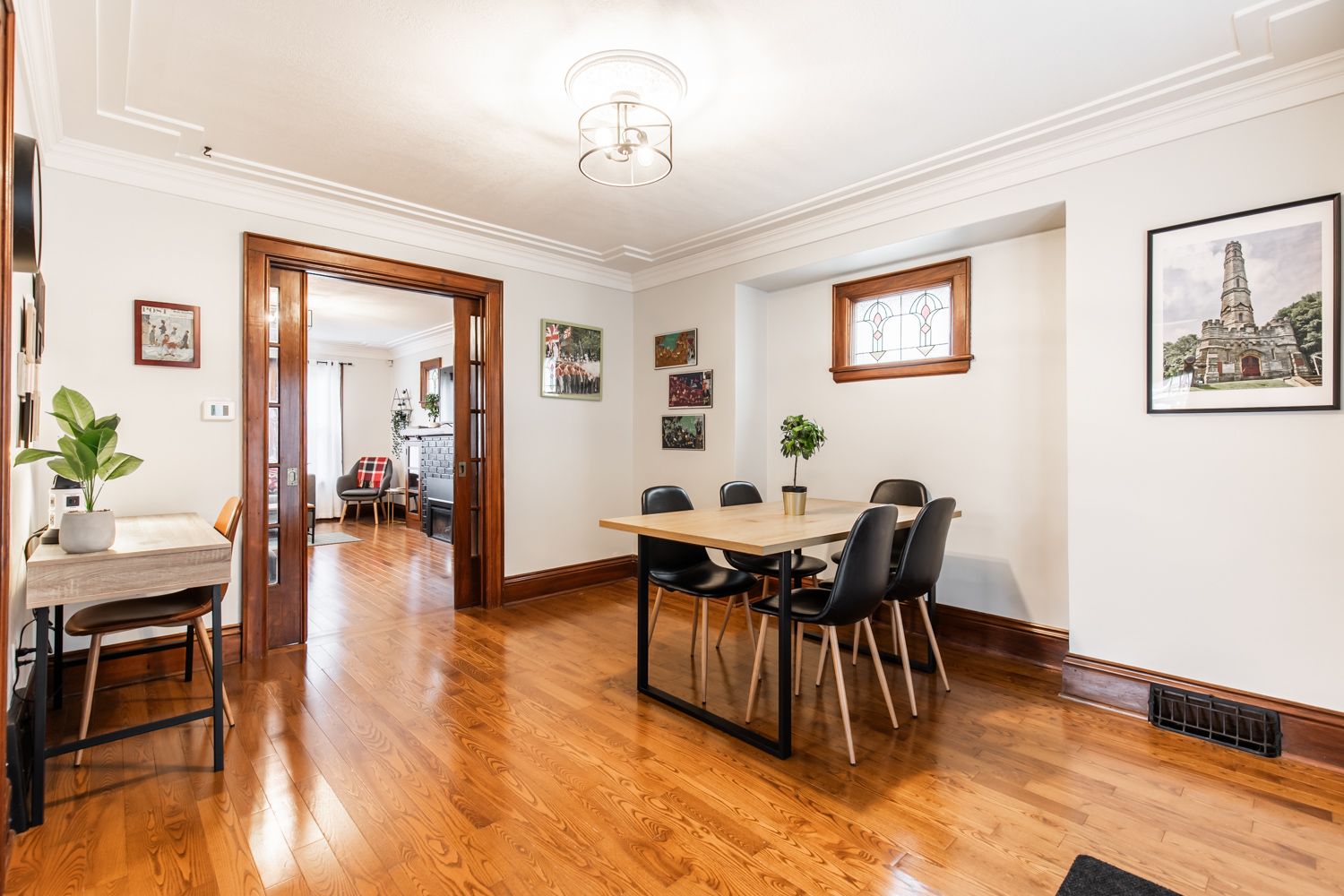 Charming 3-bed, 2-bath stoney creek home with in-law suite! This bright and open main floor boasts a cozy living room with a fireplace, a kitchen featuring stainless steel appliances, and a spacious dining room with double doors leading to the back deck. Upstairs offers three generously sized bedrooms, a large 4-piece bathroom with laundry, and access to a quaint private balcony. A separate walk-out basement entrance leads to the in-law suite, complete with its own living area, bedroom, kitchen, and washer/dryer. Situated on a large 45 x 239. 50 ft lot with a private deck, shed, and a detached garage! This home is close to battlefield park, downtown stoney creek, parks, shops, great schools, and offers easy highway access.