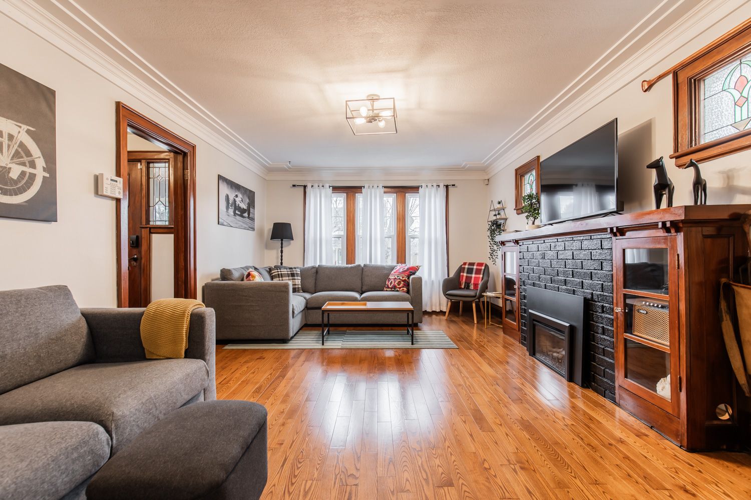 • Bright main floor with cozy living room and fireplace for relaxation.