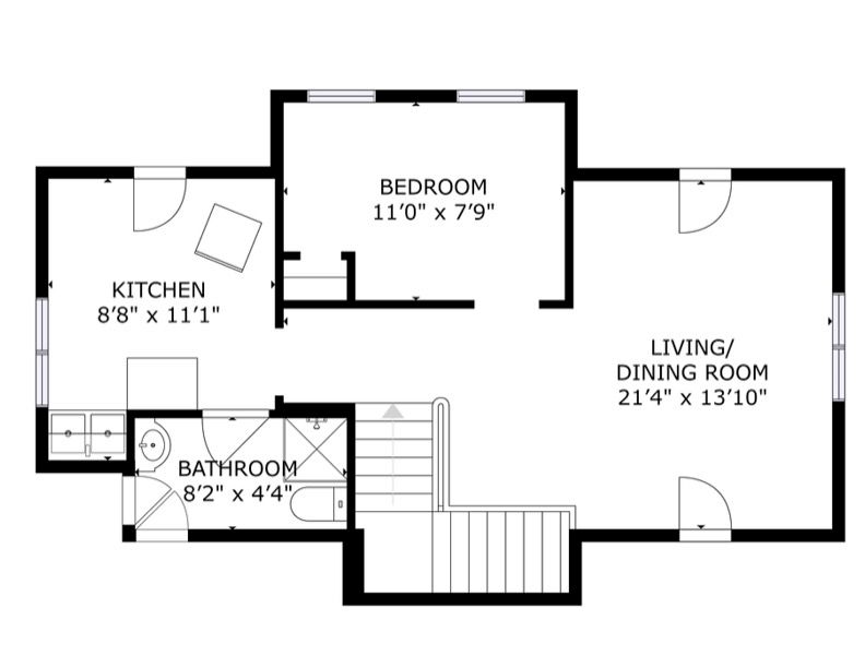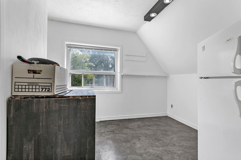 • Vacant one-bedroom apartment with its own entrance on the second floor.