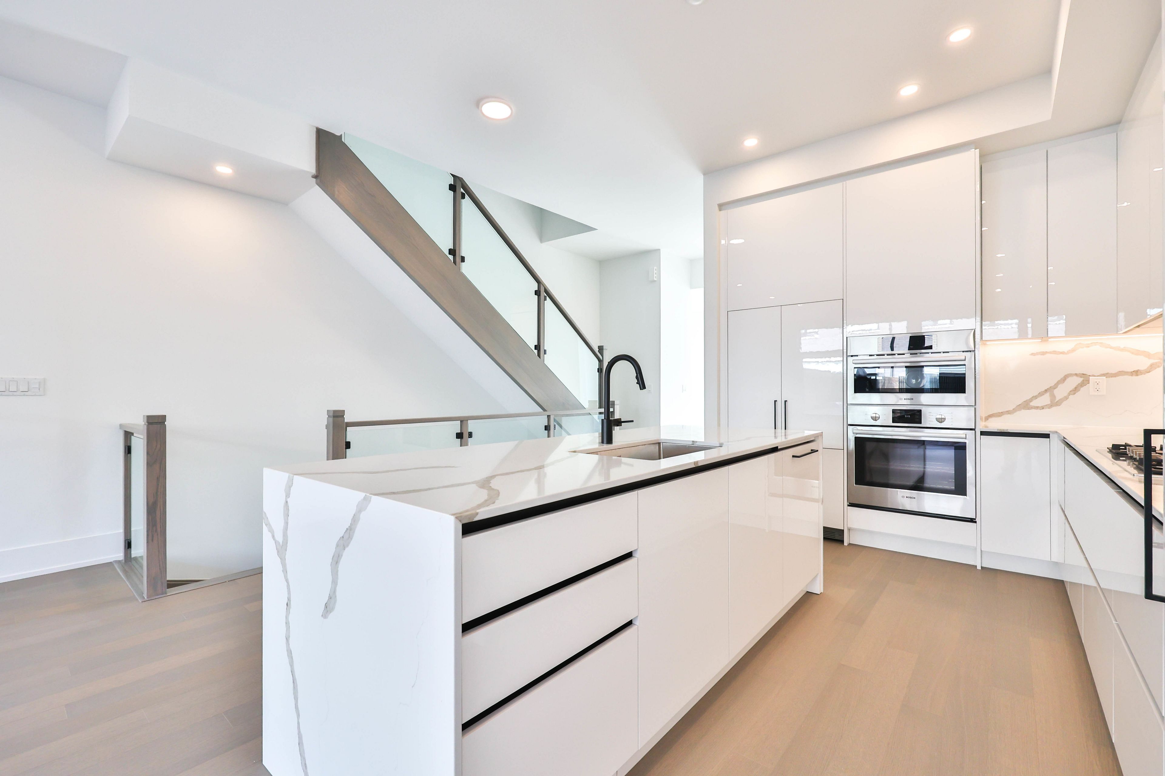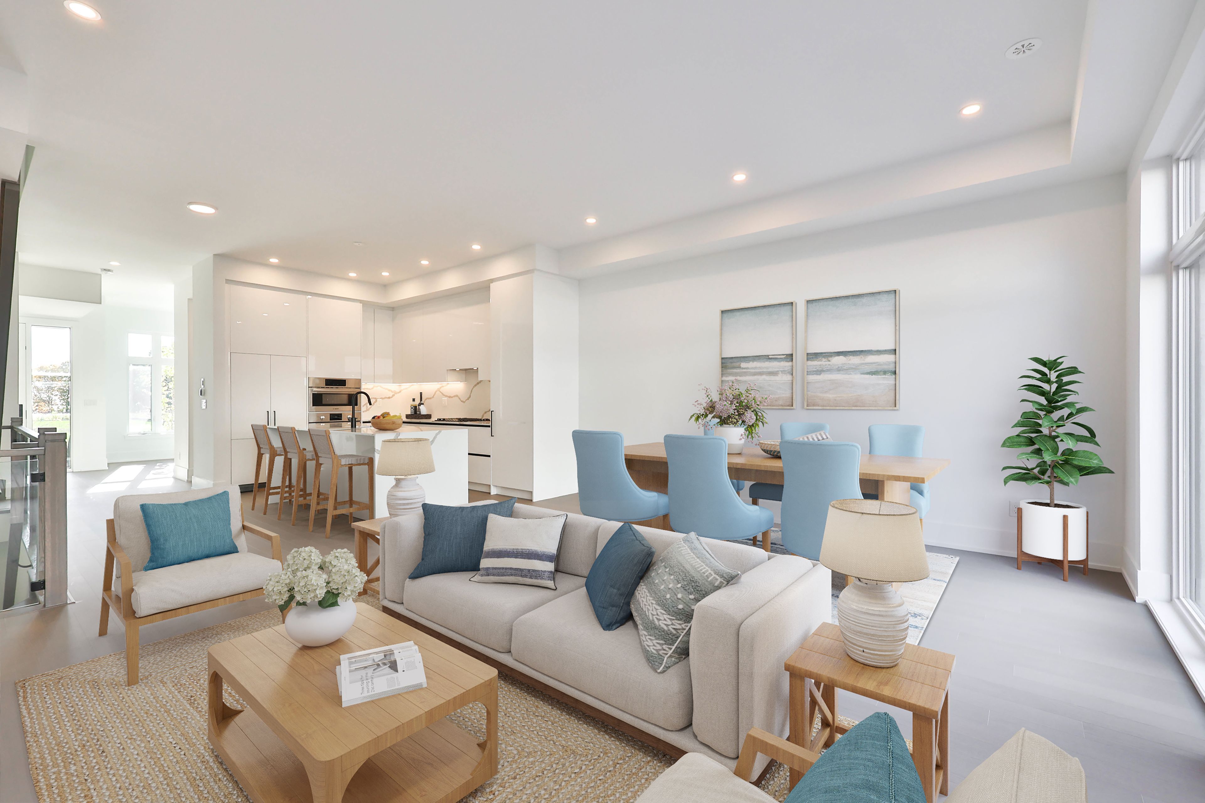 • Open-concept main level with floor-to-ceiling windows and a chef-inspired kitchen.