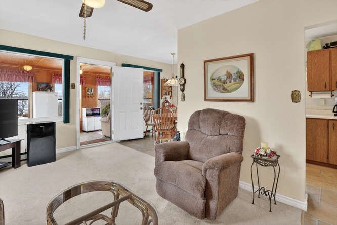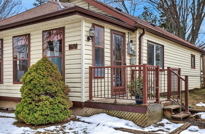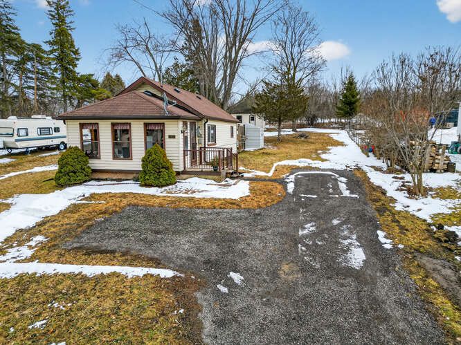 Cute and cozy home situated on a generous lot, offering charm and endless potential. Natural sunlight fills the living room and kitchen, creating a warm and inviting atmosphere. The second bedroom is currently set up as a home office, perfect for remote work or flexible living. Enjoy a private patio in the backyard, ideal for relaxing or entertaining. The bright, enclosed front porch provides stunning views of the lake across the street, with easy access to enjoy the waterfront. Backing onto wolfe run golf course, this property offers added privacy with no neighbours behind. This well-maintained home is a fantastic opportunity for first-time buyers, those looking to downsize, investors, or anyone seeking an all-season getaway-or the perfect lot to build your dream home. This home and property is a must see!