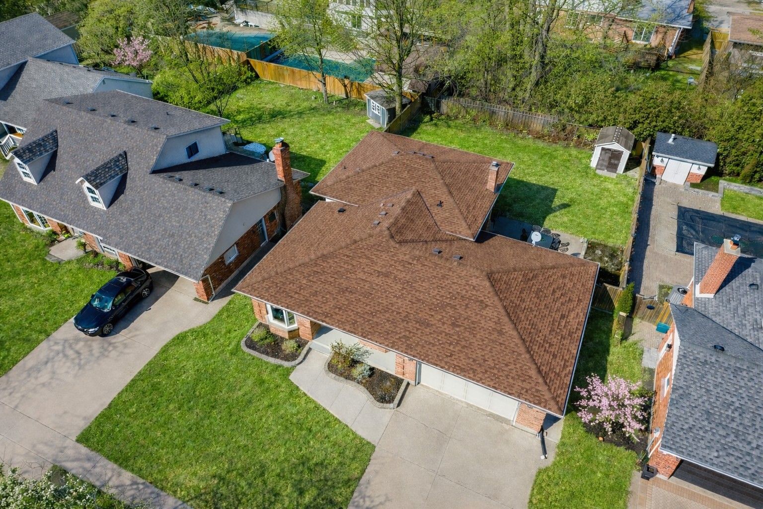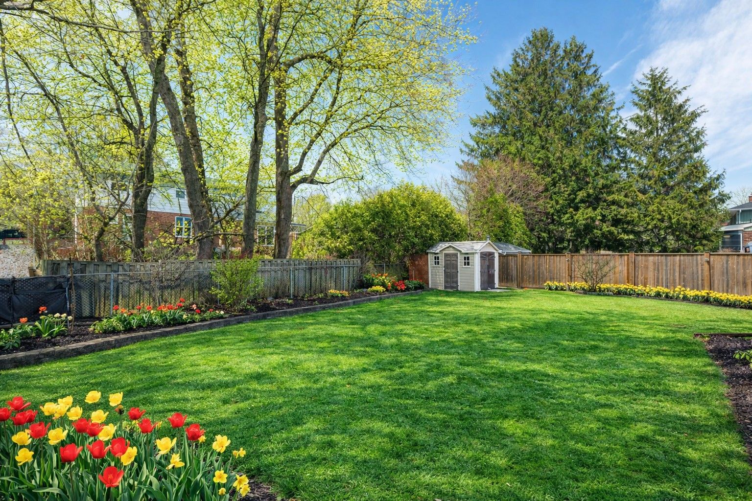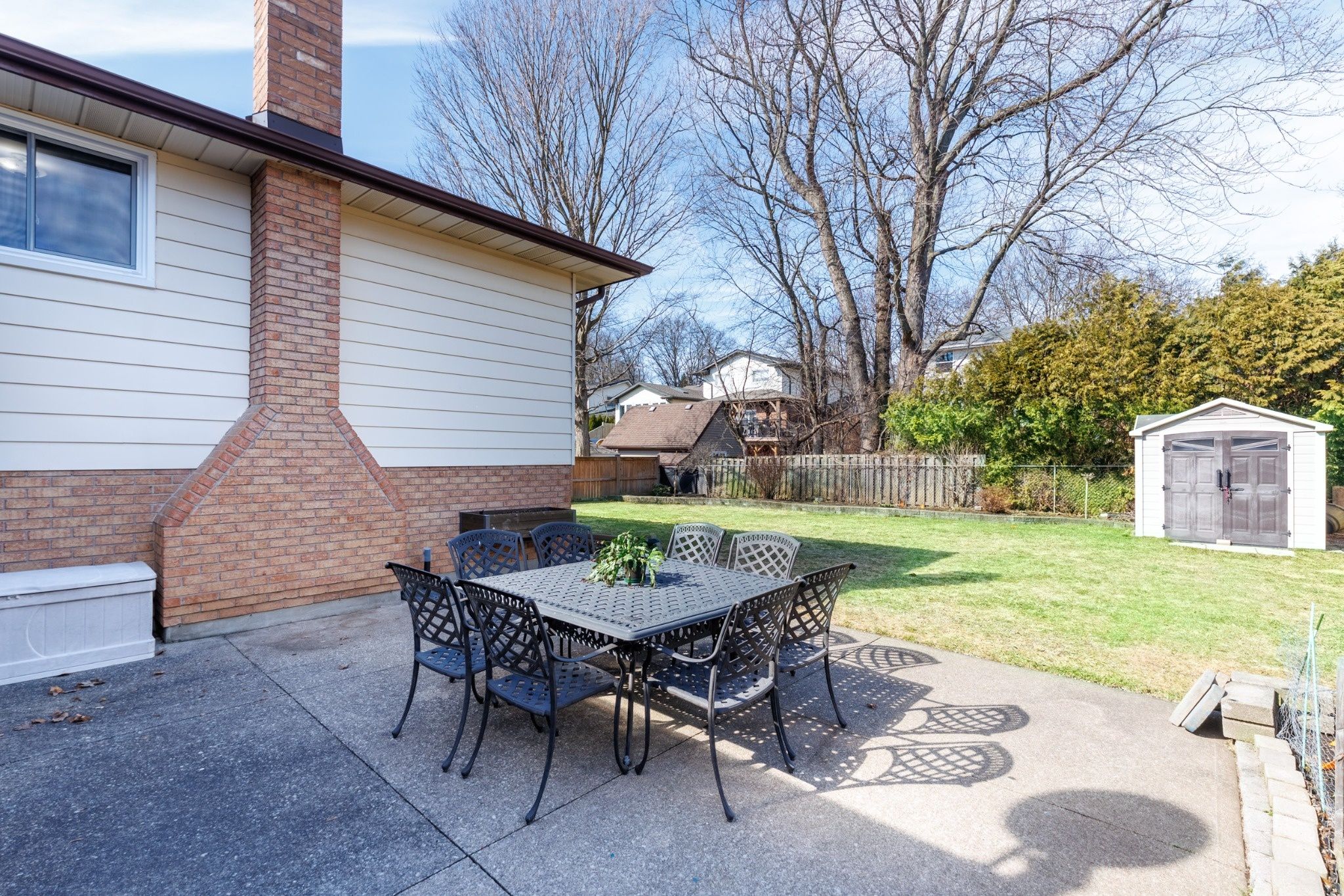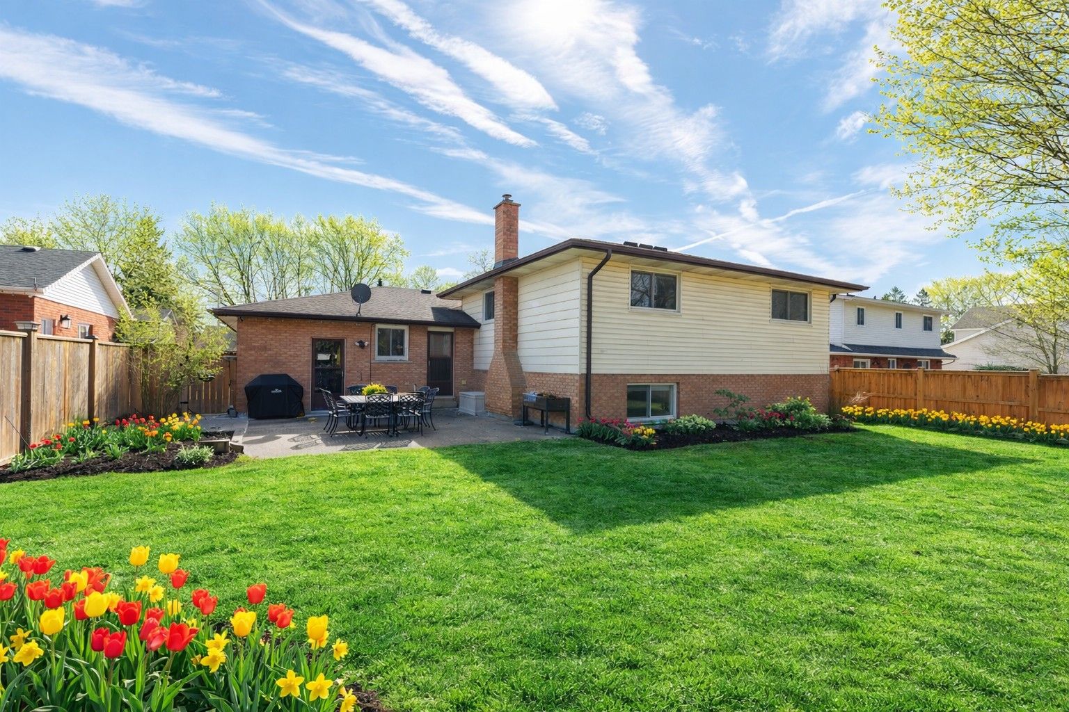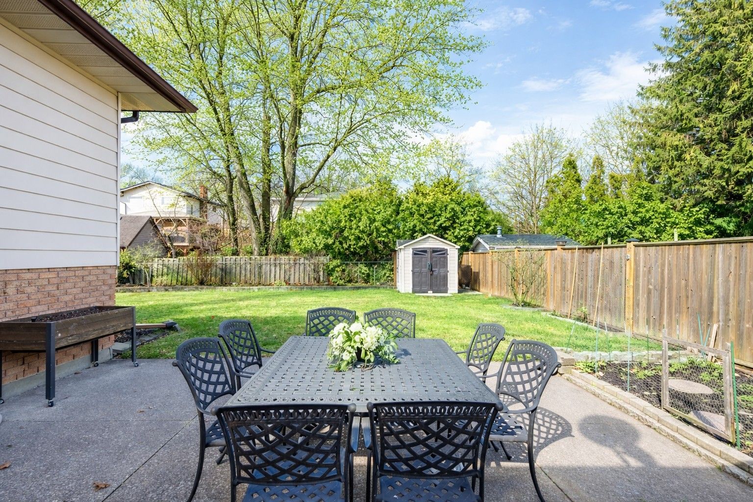 • Fully fenced backyard with concrete driveway and garage access.