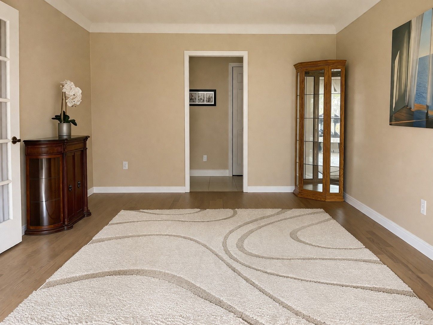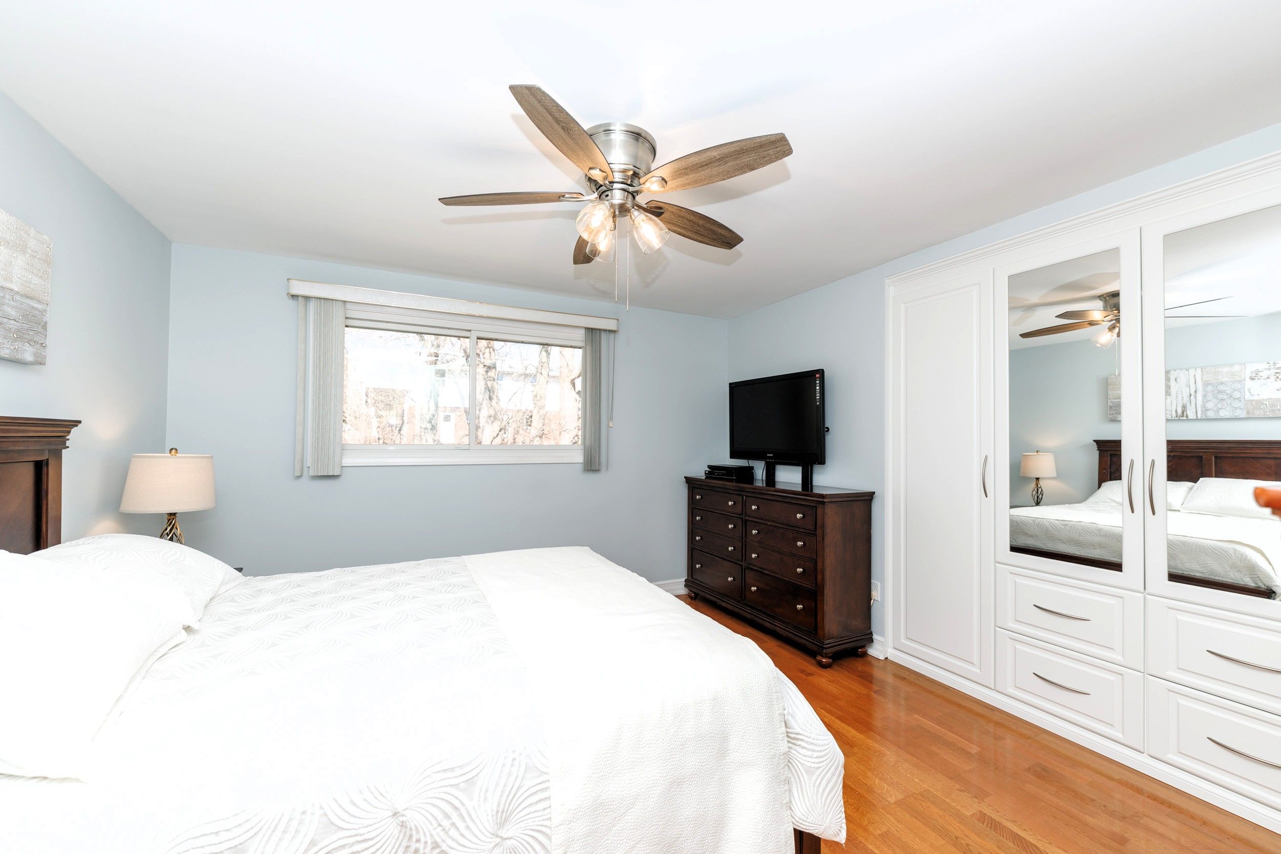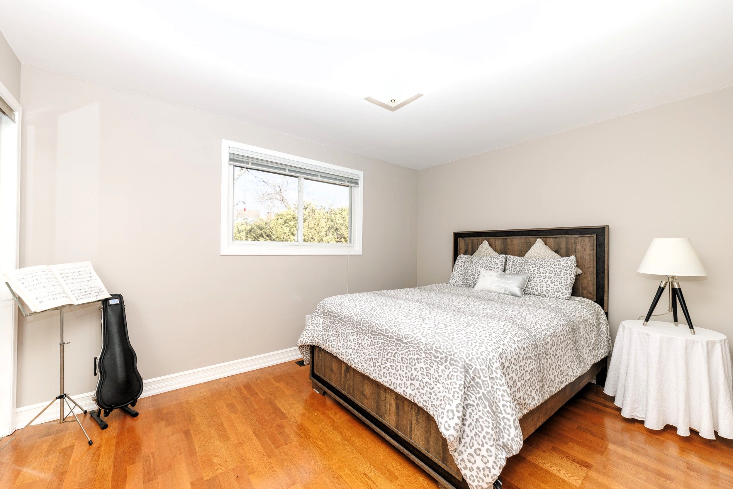 • Bright living room filled with natural light and hardwood floors.