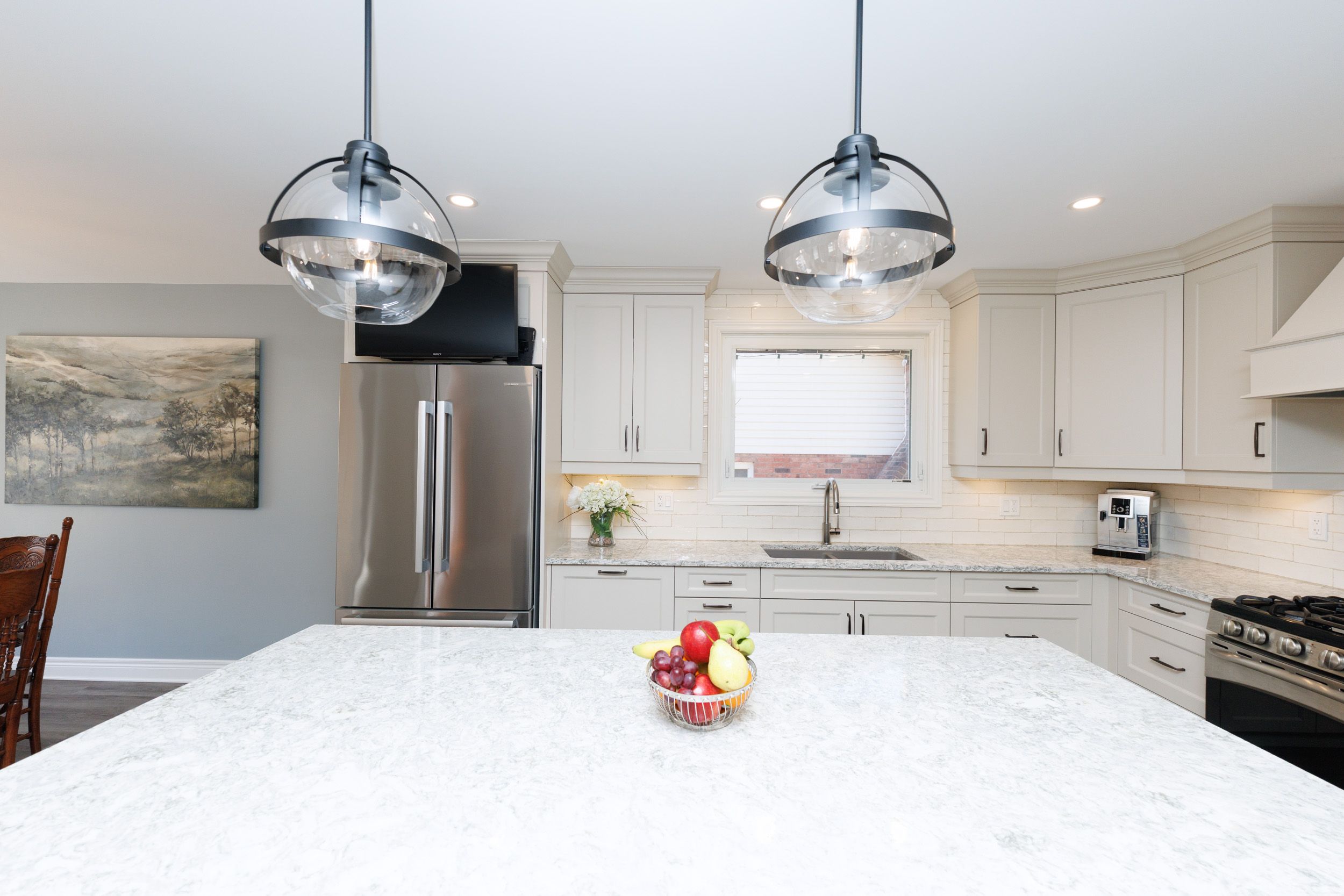 Private, peaceful & perfect! Welcome to one of fonthill's most sought-after locations. This exceptional 4-level backsplit offers outstanding living space, beautiful updates, and a setting where homes rarely become available. Prepare to be dazzled by the stunning custom kitchen by distinctive designs in may of 2022 showcasing soft oyster-toned cabinetry anchored by a striking cambria quartz centre island - perfect for gatherings. The kitchen features a built-in convection/microwave oven, gas range, pull-out spice rack, bosch refrigerator, café double-drawer beverage fridge for refreshments, white backsplash and abundant pot lighting. The dining area flows seamlessly from the kitchen enhanced by hunter douglas top-down/bottom-up blinds, for hosting. Just off the kitchen, the bright living room features hardwood floors and a large picture window that fills the space with natural light. Upstairs offers three bedrooms. The primary bedroom includes an updated 2-piece ensuite with an upper updated 4-piece bathroom. The main level mudroom/laundry provides convenient access to the garage and backyard along with a functional laundry area. The lower-level hosts another bedroom plus a versatile bonus room connected, ideal for a nursery, den, craft room or additional bedroom. The family room enjoys a warm brick gas fireplace, large windows and handy bar sink, perfect for relaxing evenings or entertaining. Continue down to the newly renovated basement where you'll discover a luxurious spa-inspired 3-piece bathroom with a glass steam shower and heated tile floors. The l-shaped layout offers space for a gym, recreation area and storage, finished with luxury vinyl flooring. Outside enjoy a fully fenced backyard, double concrete driveway and attached garage. All perfectly located in the heart of fonthill-just minutes to the region's celebrated wineries, renowned golf courses, scenic trails, charming village shops and restaurants that make this community one of niagara's true gems.