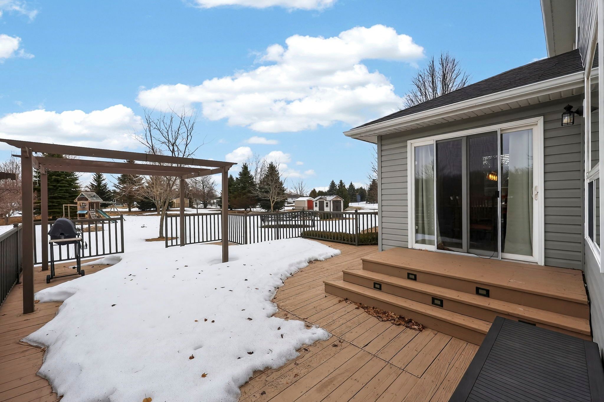 • Large yard with a custom deck and plenty of room for outdoor activities.