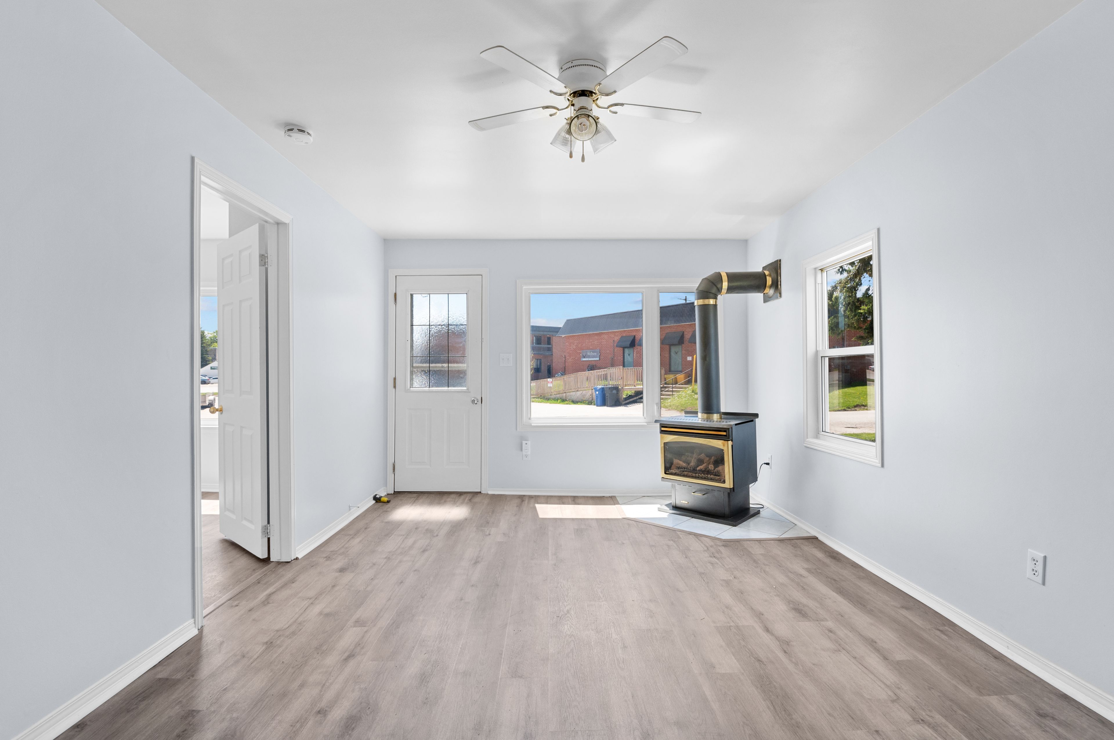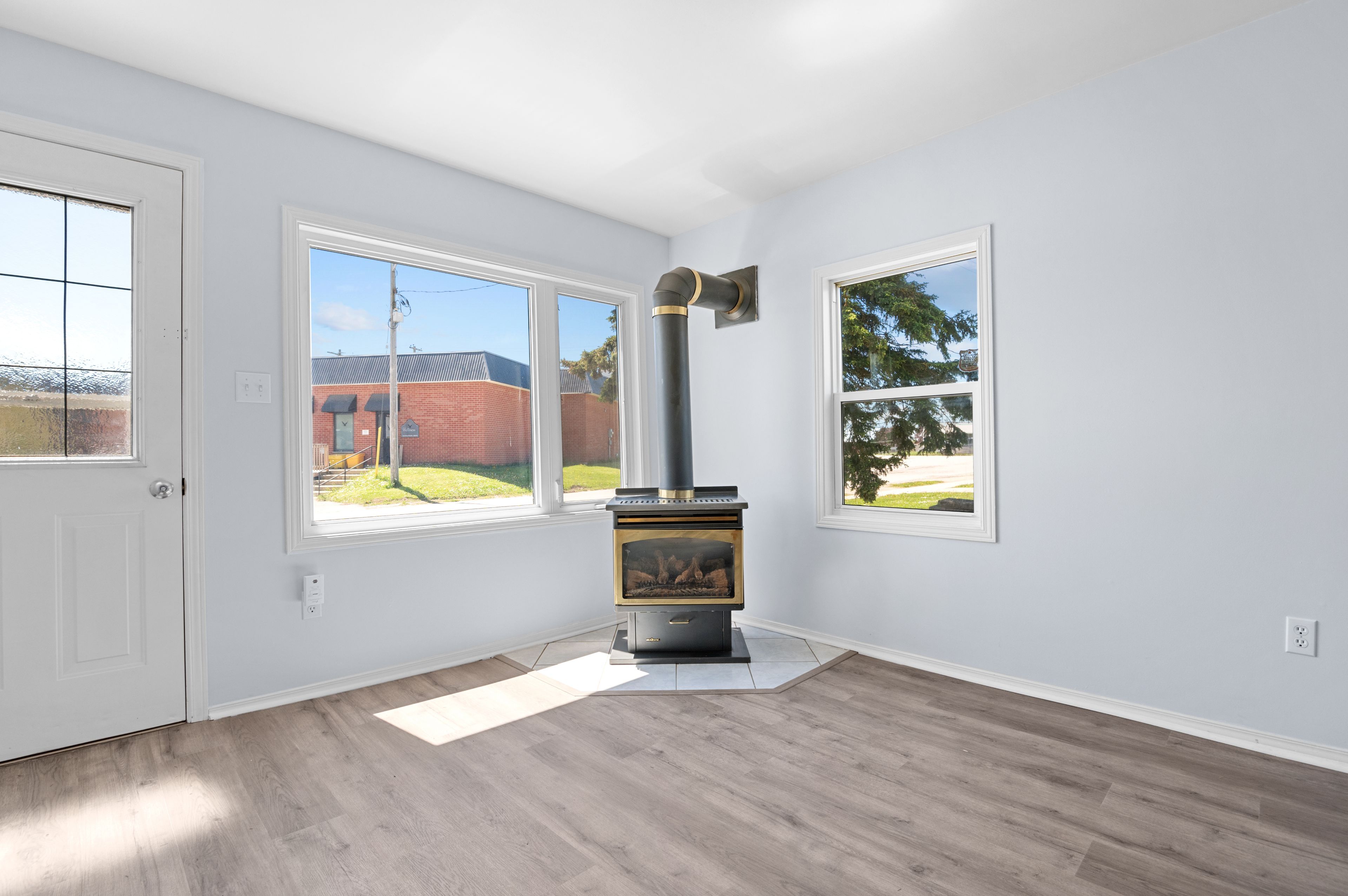 Looking to downsize, still want to be outside? This house is for you in beautiful dundalk, compact living on a large lot in cozy 2 bedroom bungalow, main floor living. Convenient to down town. Walking distance to shopping, parks, library and schools. New roof may 2025, new flooring and freshly painted, ready to move in. Eat in kitchen with side door to back yard. 4 pc bath , hot water tank is owned, new in 2024. . Garden shed with new roof, mature trees plenty of room for outside play/living. Potential to expand the house, natural gas fireplace heating, electric heater on wall in kitchen, crawl space under kitchen area, window air conditioner, tile hearth around fireplace. Rent no more, this is perfect for single, couple first time home buyers, get in the market with this affordable, great 2 bedroom home.