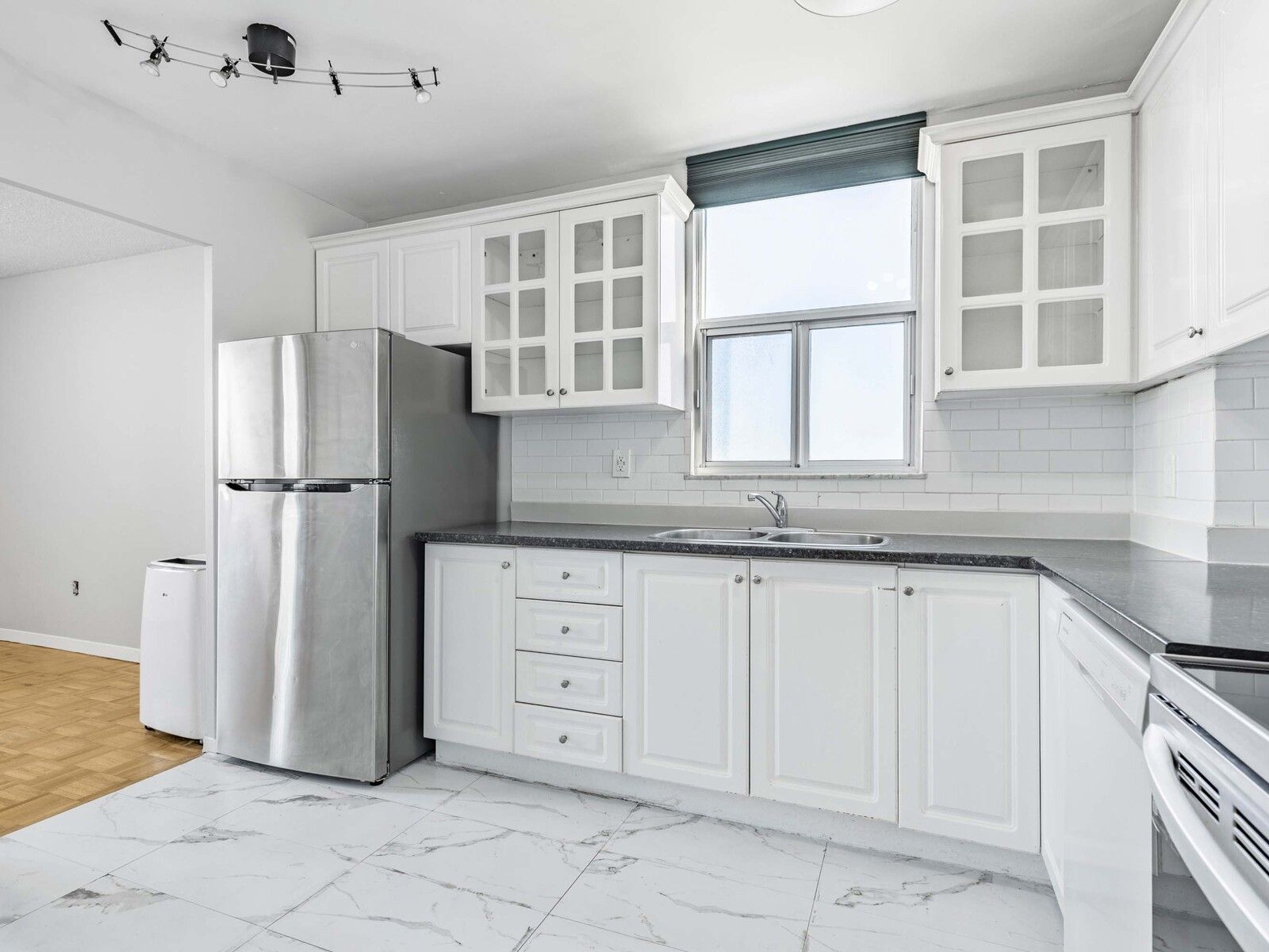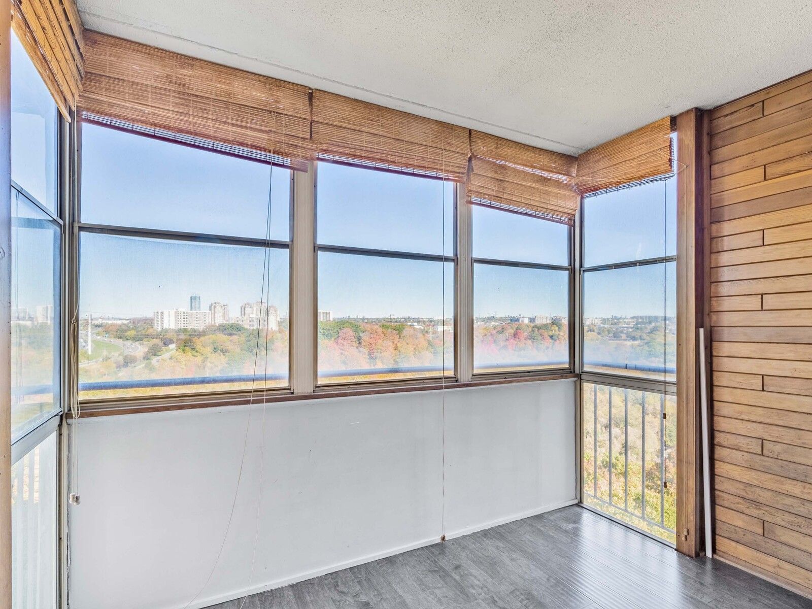 Bright & spacious 3br unit nestled in flemingdon park w/ 1,200+ sq ft of living space! Convenient location close to transit, shops, schools, parks & trails. Access to hwy dvp/401. Large closet space in all bedrooms, ample kitchen storage, sizeable living & dining room & sunroom w/ new laminate, wood paneling & bamboo blinds, perfect to enjoy the stunning views all season!