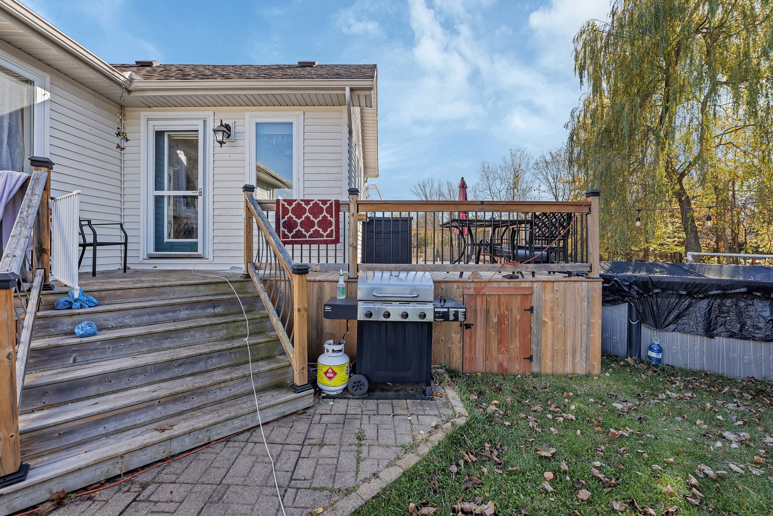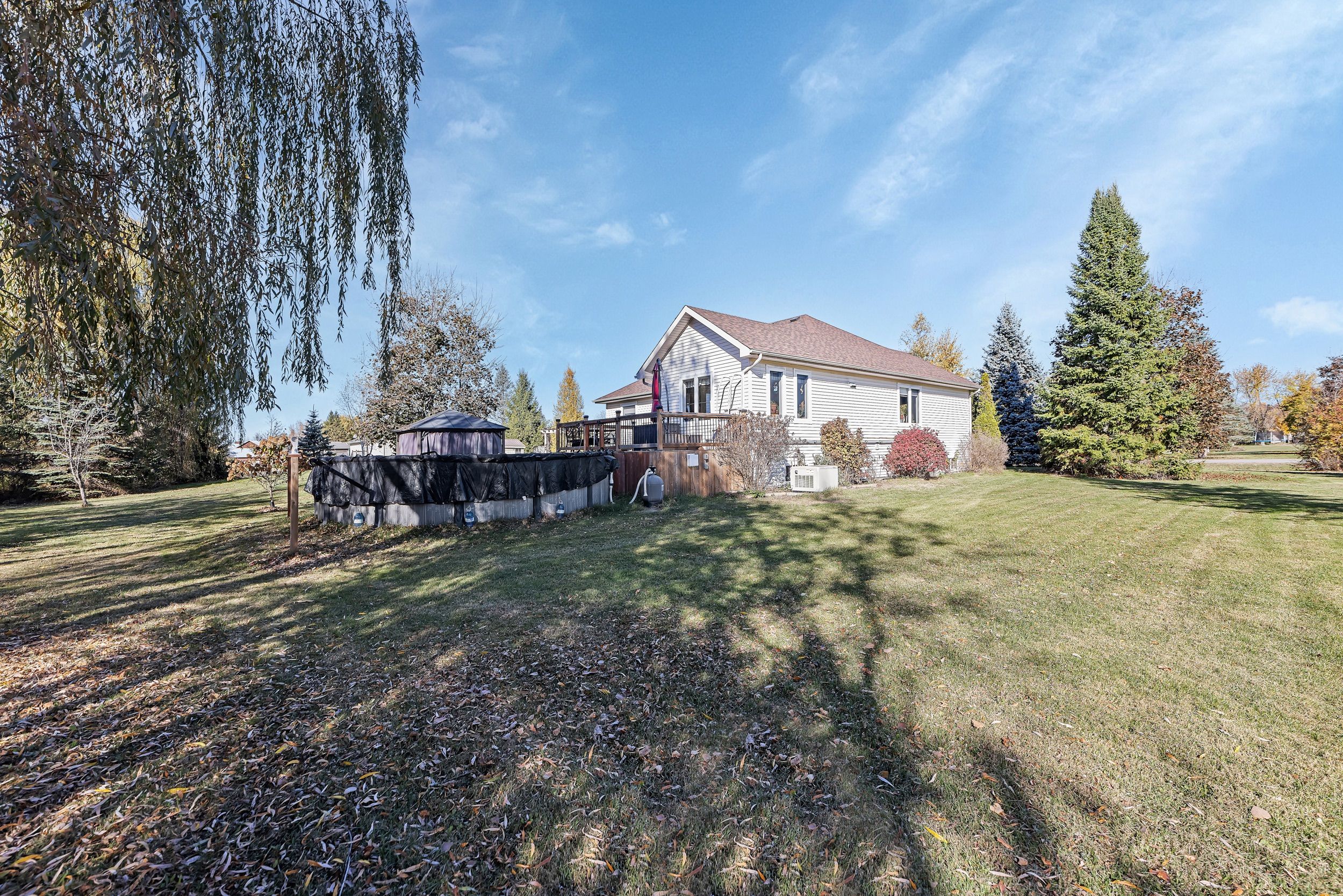 This move-in-ready bungalow sits on a generous lot just under 1 acre, offering exceptional outdoor potential and a warm, inviting interior. The beautifully designed kitchen features a spacious granite island, updated stainless steel appliances (2018), and a functional layout ideal for hosting. A bright eating area with ceramic tile flows seamlessly outside to the backyard with a spacious deck going into your above-ground pool. The main living space has gleaming hardwood floors and abundant natural light, creating an airy, welcoming atmosphere. The primary bedroom includes a walk-in closet, accompanied by a well-sized second bedroom. The updated full bath offers a relaxing retreat with a soaker tub and separate stand-up shower. The fully finished lower level expands your living space with a cozy rec room featuring a gas fireplace, a third bedroom, and a custom bathroom. Newer carpeting was installed in the lower level in 2020 for added comfort. Major system updates provide peace of mind, including: new furnace and ac (2023), hot water tank (2020), water system pressure tank (2023), dual sump pumps (2020), generac whole-home generator (2019), 50-amp rv plug, and a new roof (2022). Located just minutes from kemptville's amenities, this impeccably maintained home is truly turnkey-don't miss your chance to make it yours!