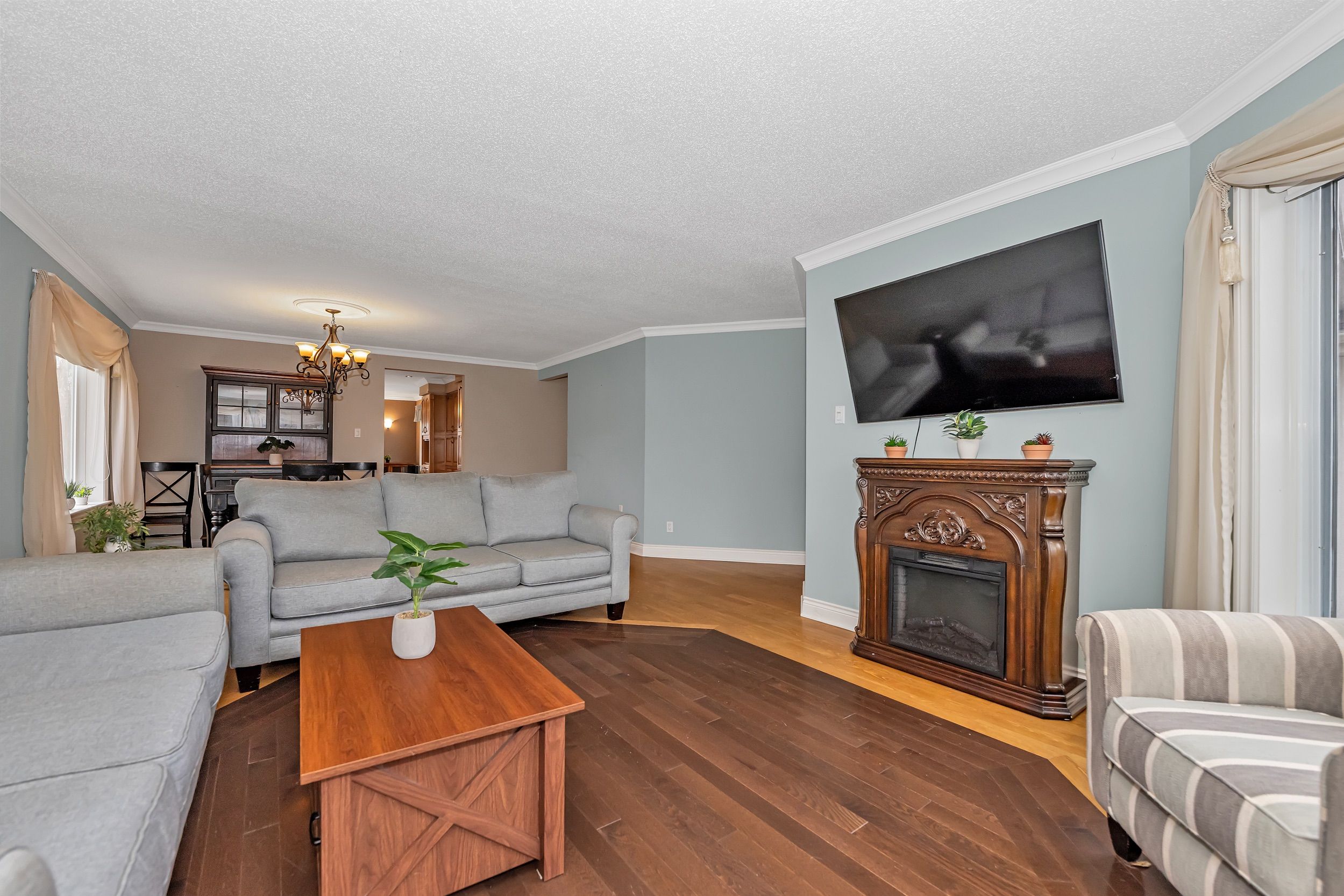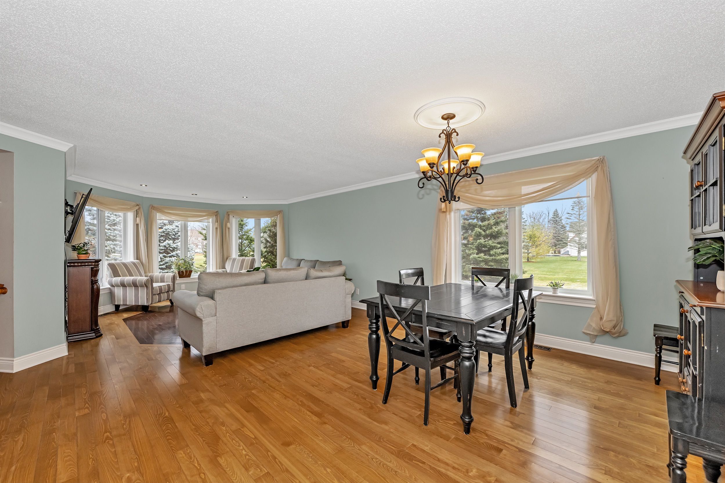 • Airy living space with hardwood floors and ample natural light.