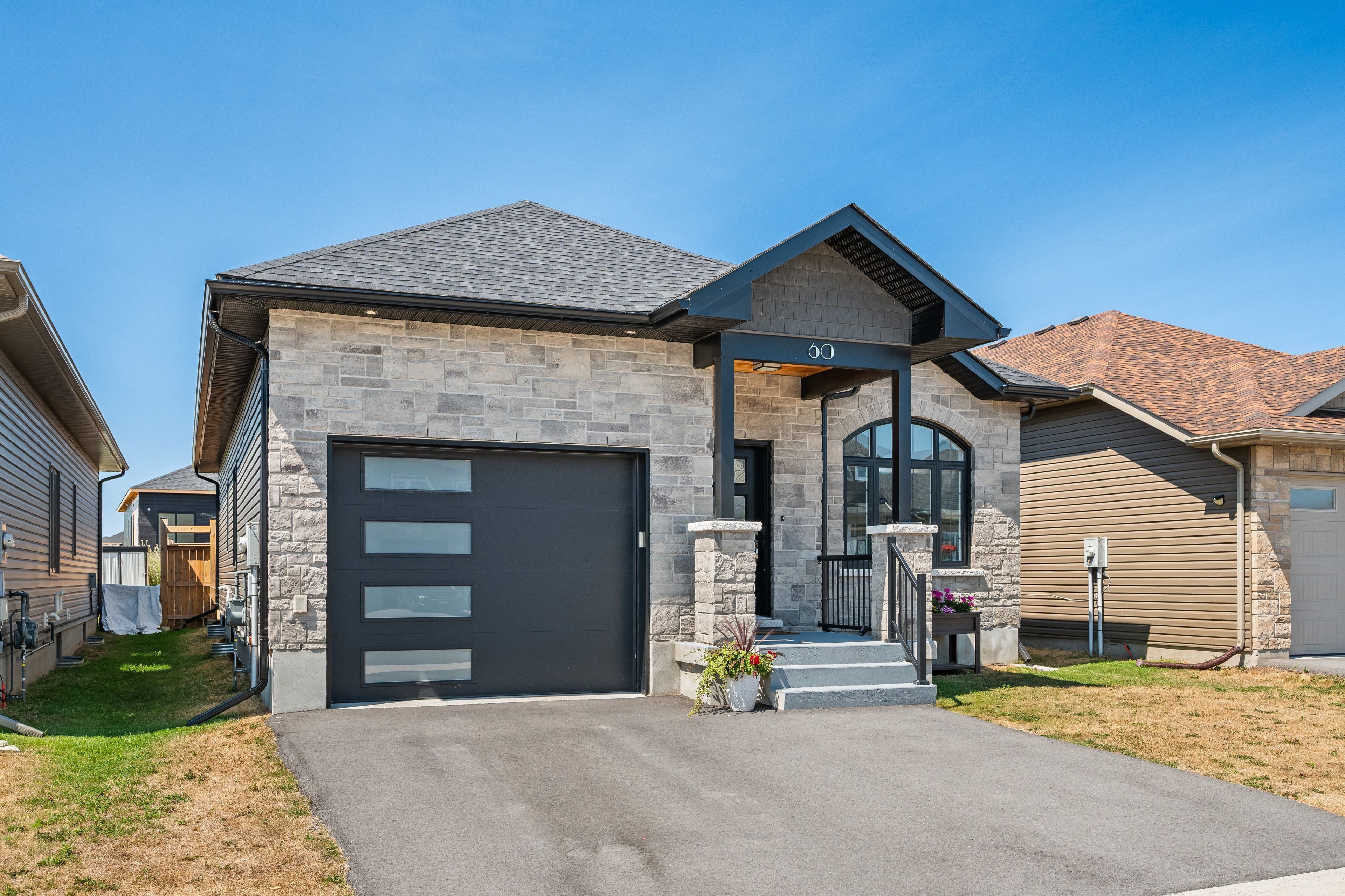 Modern luxury meets thoughtful design. Welcome to the neighborhood of babcock mills in odessa! Step into this impeccably designed modern home, where elevated finishes and attention to detail are evident at every turn. Outfitted with engineered hardwood flooring throughout, this residence features a stunning custom kitchen with quartz countertops, a dine-up island, and a pantry perfect for both everyday living and entertaining. The open-concept layout is both stylish and functional, offering three spacious bedrooms, two full bathrooms with porcelain tile and quartz vanities and a main floor laundry room. Outside, the fully upgraded exterior package delivers striking curb appeal with all-black windows and doors, a stone-accented façade, custom pillars, and a craftsman-style ceiling at the front entrance. Enjoy added privacy and outdoor living in the fully fenced backyard ready for family fun or peaceful retreat. Odessa is a 10 minute drive from kingston on the 401. Babcock mills is surrounded by three golf courses and within walking distance to odessa public and ernestown high schools. Odessa is a great place to live - only minutes away from any major shopping yet you have the small village atmosphere. This home is a rare blend of style, function, and comfort. A must-see for discerning buyers!