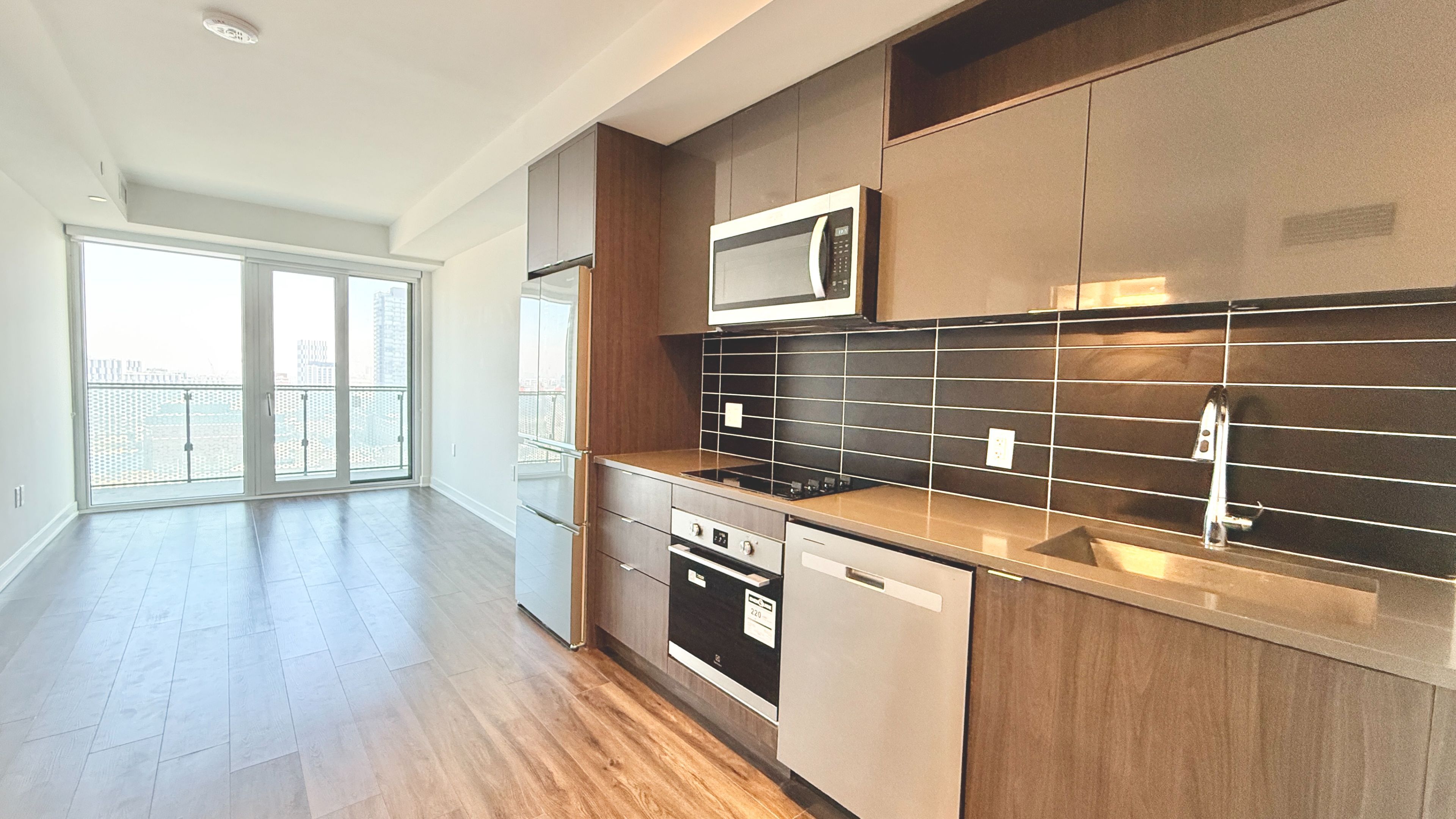 Welcome to time & space by pemberton! Spacious 2 bedrooms + den, 2 bathrooms, den can be the third bedroom. With 2 balconies and unobstructed east exposure. One parking included. Top-tier finishes, including a high-end kitchen. High-speed internet building. Excess of amenities including infinity-edge pool, rooftop cabanas, outdoor bbq area, games room, gym, yoga studio, party room and more! Prime location steps to distillery district, ttc, st lawrence mkt & waterfront!
