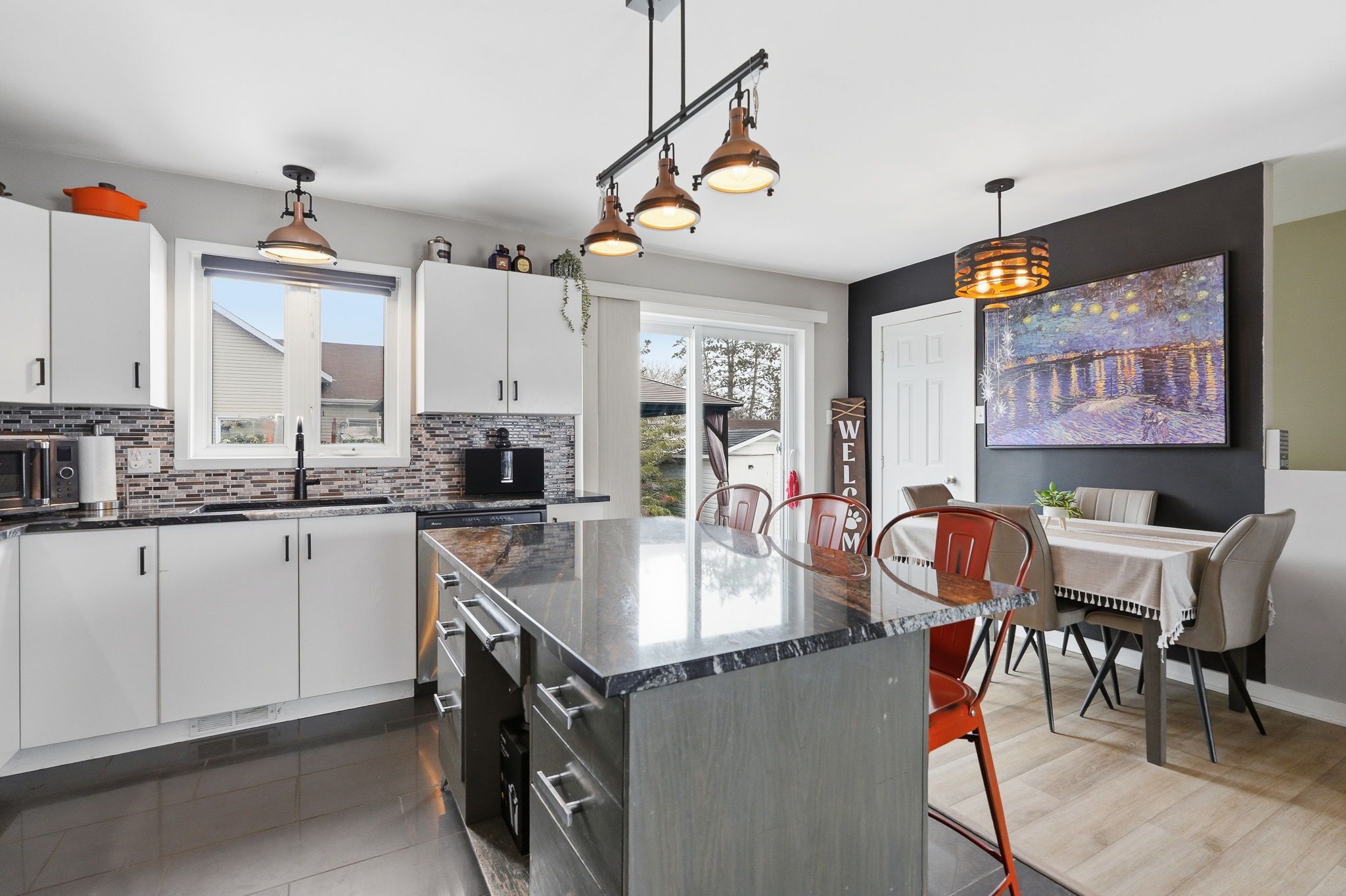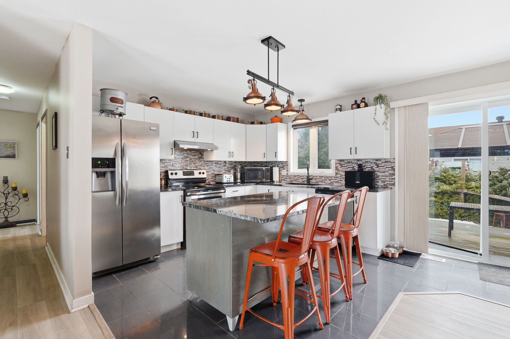 • Granite countertops and ample cabinets in the kitchen for everyday cooking.
