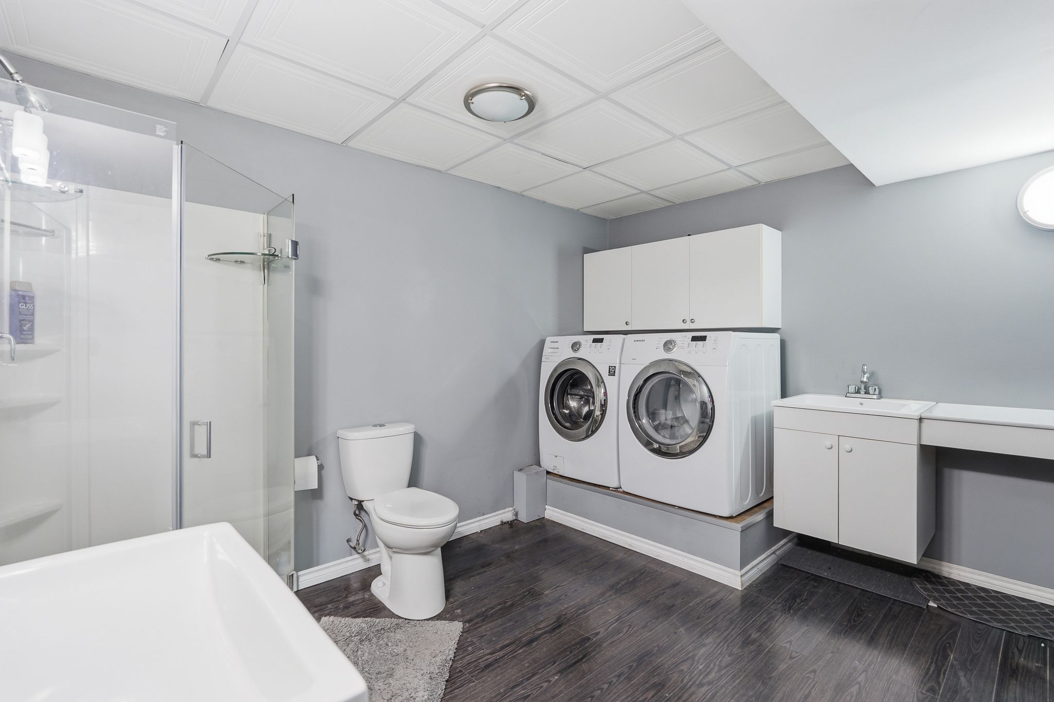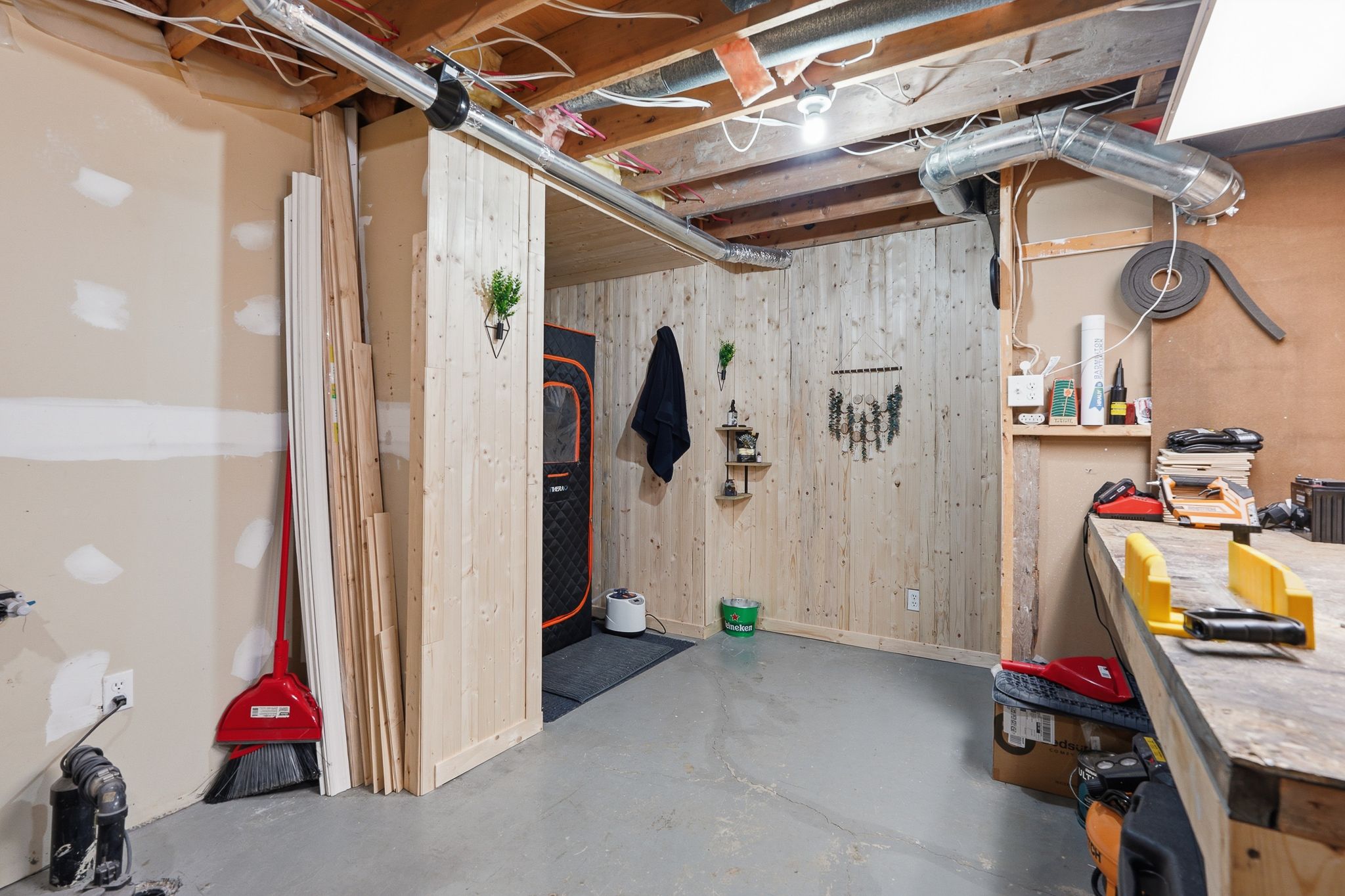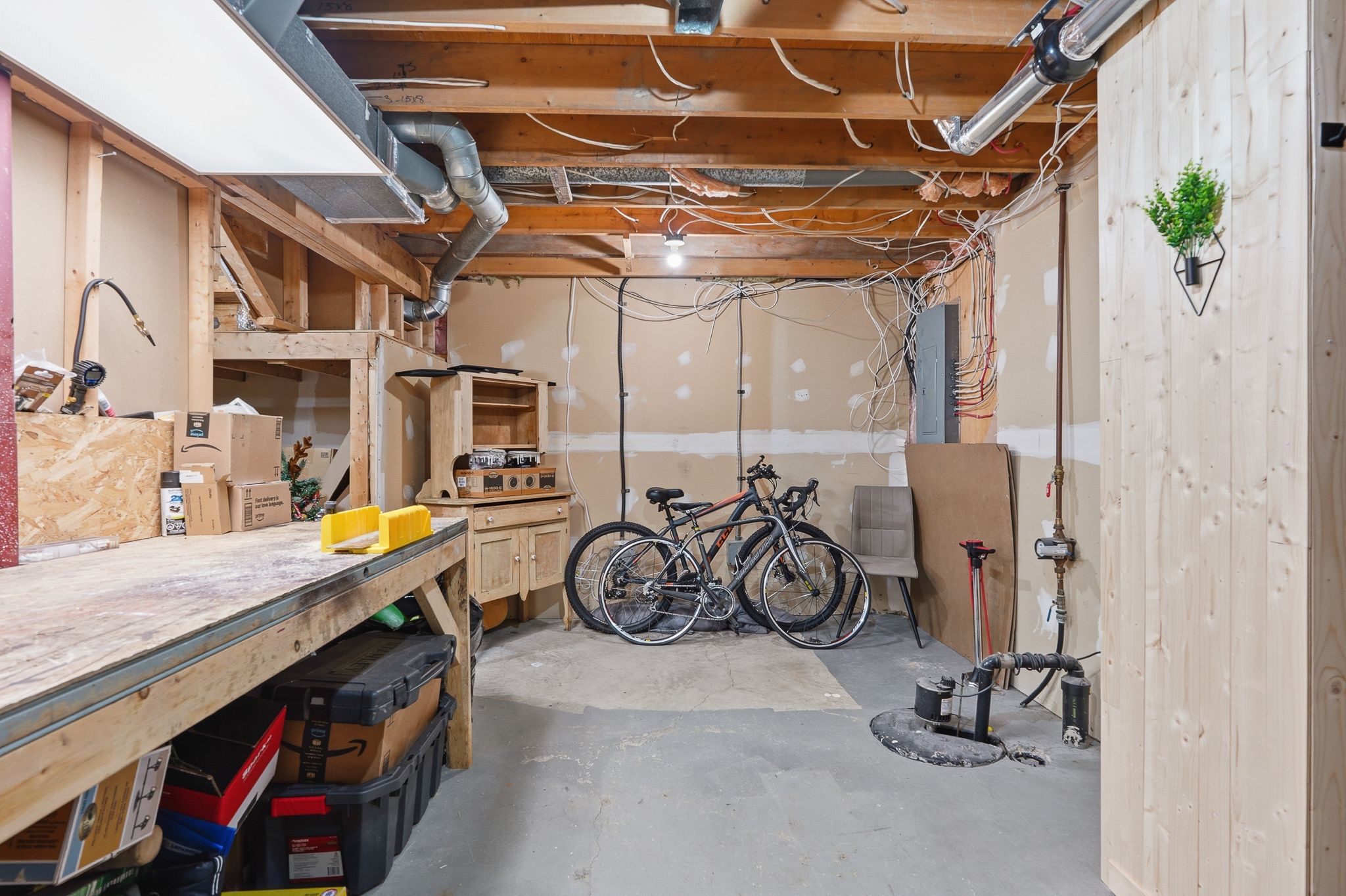 • Partially finished basement with family room and workshop space.