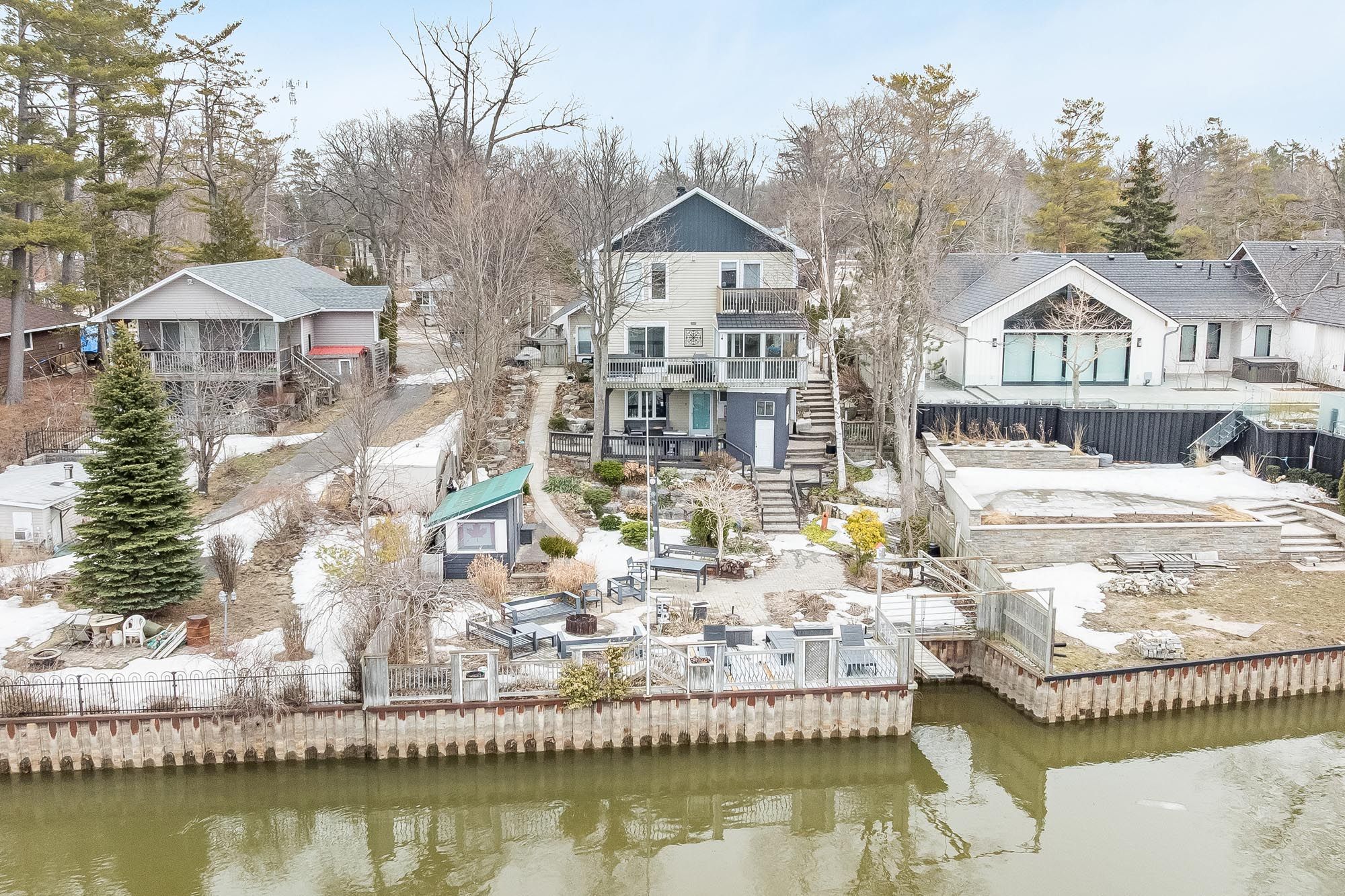 Top 5 reasons you will love this home: 1) exceptional riverfront property featuring four self-contained units, ideally located just minutes from the main beaches in the thriving community of wasaga beach 2) recently renovated primary residence showcasing a spacious primary suite with a private balcony, perfectly suited for executive-style living 3) true turn-key opportunity offering excellent potential for multi-unit rentals, investors, or seamless multi-generational living 4) beautifully landscaped outdoor retreat designed for entertaining, relaxation, and enjoying the natural surroundings 5) backing directly onto the picturesque nottawasaga river, this property boasts approximately 60' of coveted waterfrontage, offering tranquil views and direct access to nature year-round. 3,216 above grade sq. Ft. Plus a finished basement.