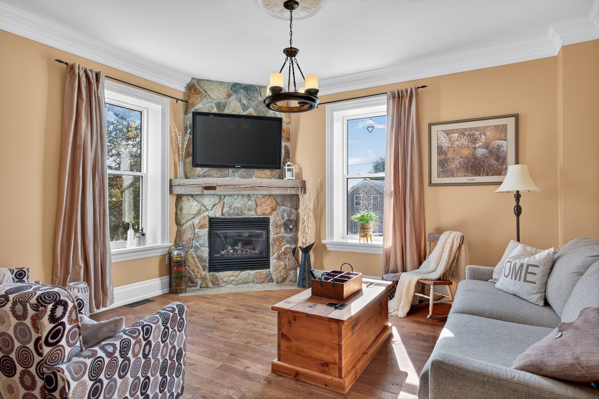 Step back in time with every modern luxury. Welcome to this stunning victorian masterpiece, built in 1885 and lovingly restored to blend timeless charm with todays modern conveniences. Situated in the heart of sunderland, this remarkable 2,600 +sq. Ft. Home offers character, craftsmanship, and comfort all in one. Inside, you'll find high ceilings, rich architectural details, and custom finishes throughout. The gourmet chefs country kitchen is a true show piece complete with top-end appliances, sleek countertops, and thoughtful design perfect for entertaining or everyday family life. The main floor bedroom offers privacy and flexibility, featuring its own separate entrance from outside ideal for guests, a home office, or an in-law setup. Upstairs, discover three spacious bedrooms, including a luxurious primary suite with a walk-in closet and an oversized spa-inspired ensuite that invites you to unwind in style. Step outside to a large entertaining deck overlooking the above-ground pool, pool house, and sauna the perfect combination for summer gatherings or quiet relaxation. The deep lot offers both privacy and play space, surrounded by mature trees and manicured landscaping. Located just a short walk to main street, you'll enjoy the convenience of local shops, restaurants, and the grocery store all while soaking in the charm of small-town living.