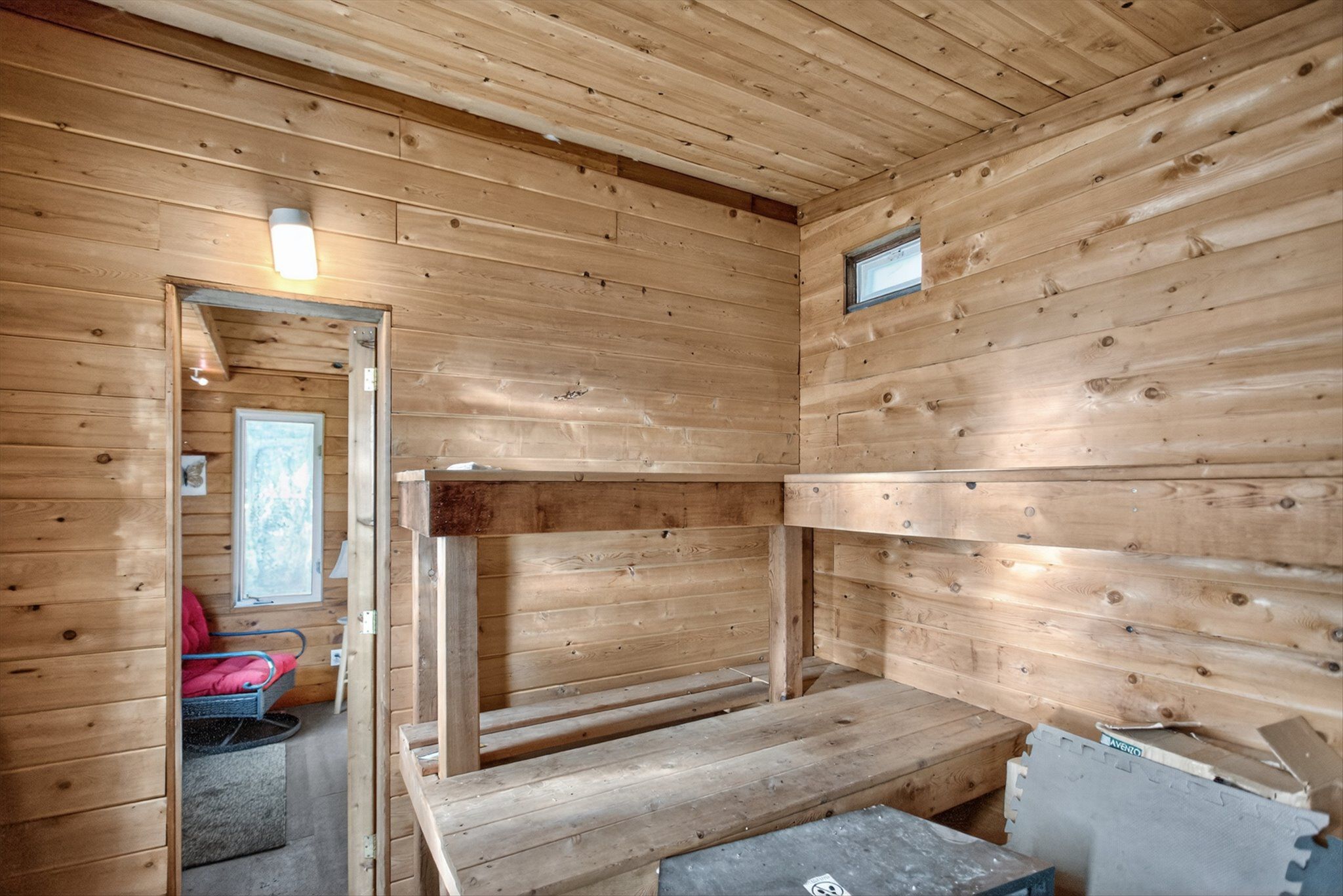 • Large deck with pool, pool house, and sauna for outdoor relaxation.
