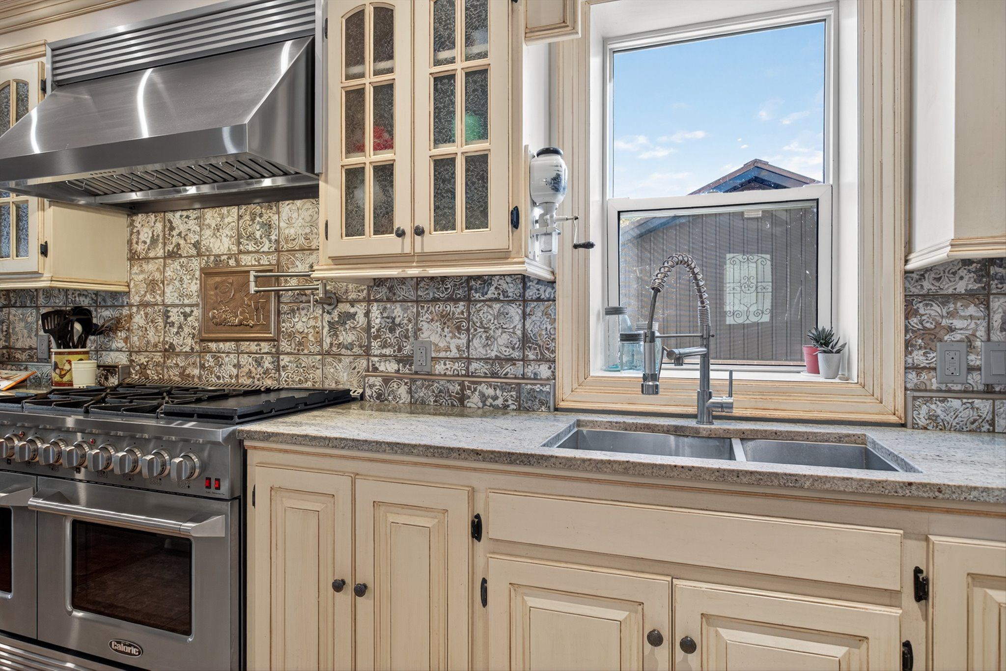 • Gourmet kitchen equipped with top-end appliances for entertaining.